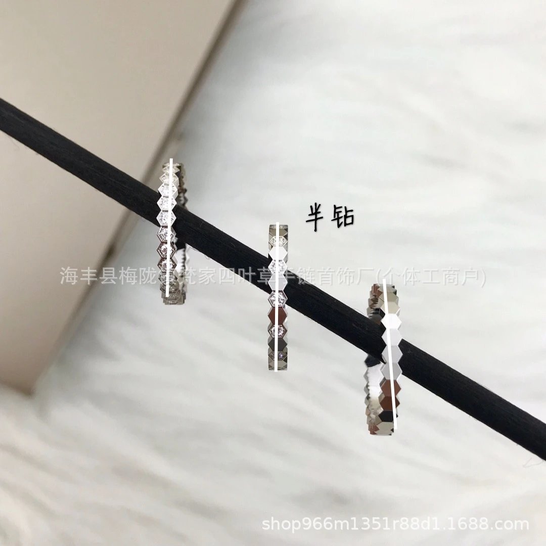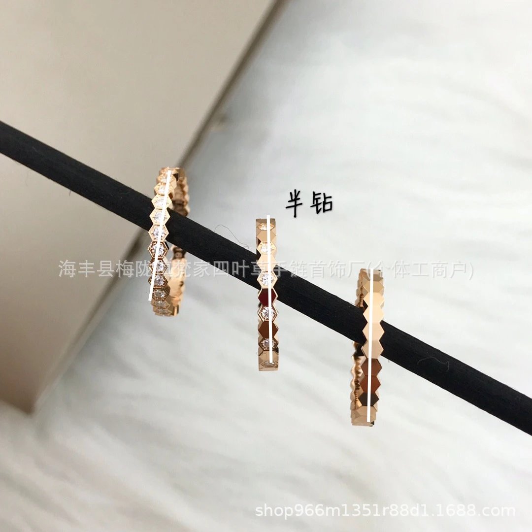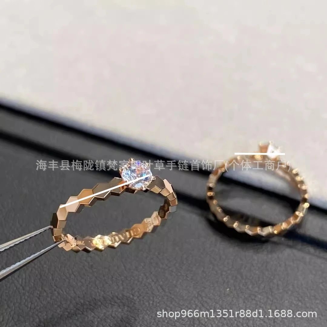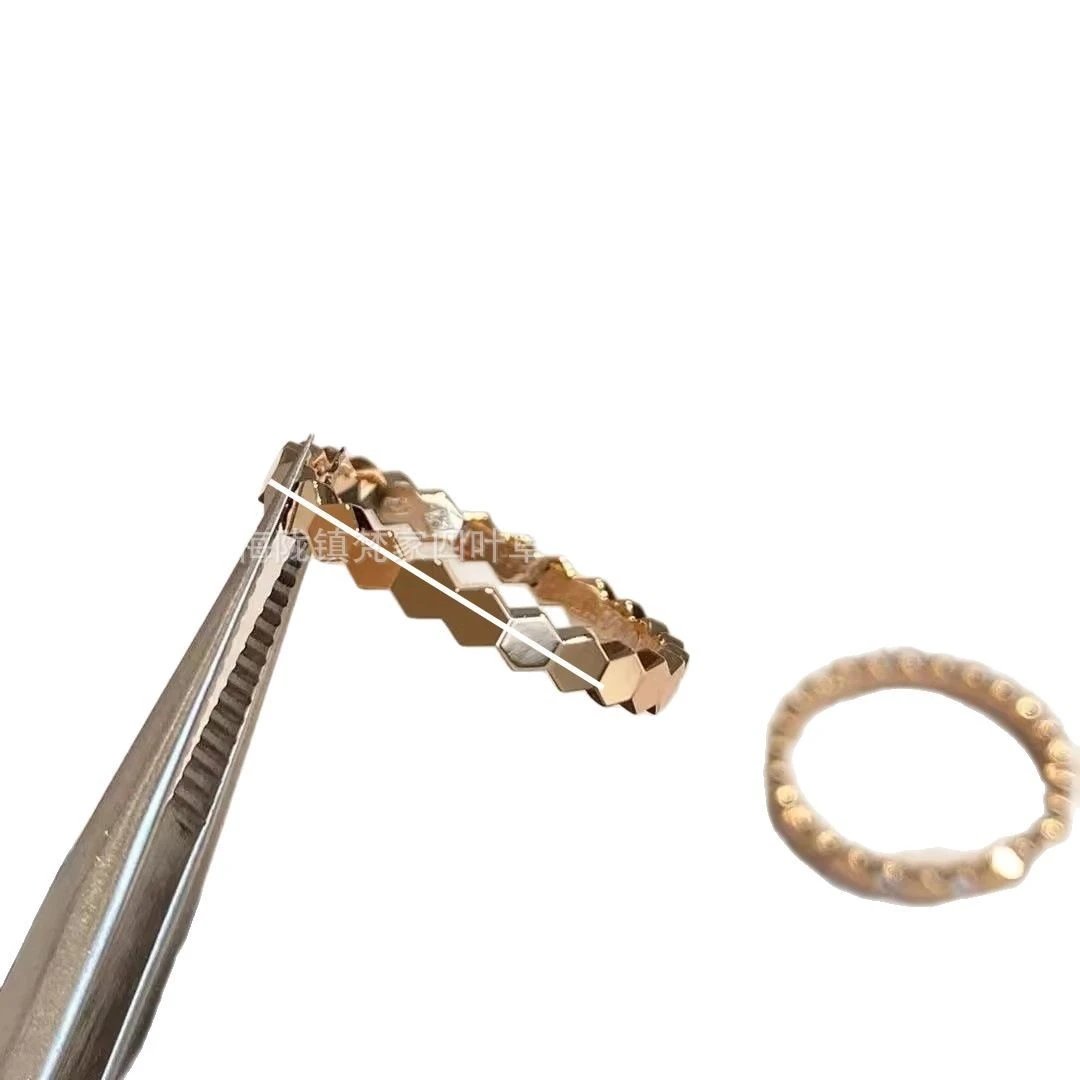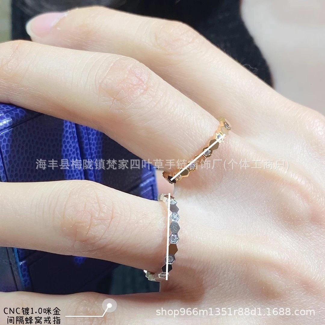尚美轻奢蜂巢戒指满钻镀18k金玫瑰金蜂窝叠戴半排钻高级感指环ins