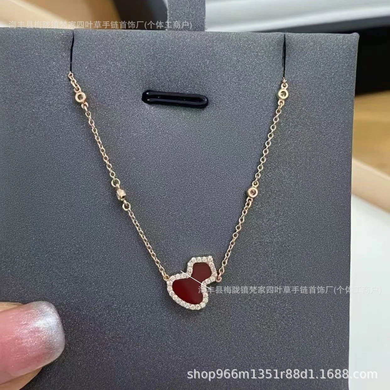 大花双面四叶草项链女V金天然白贝母红玉髓精工精工毛衣链