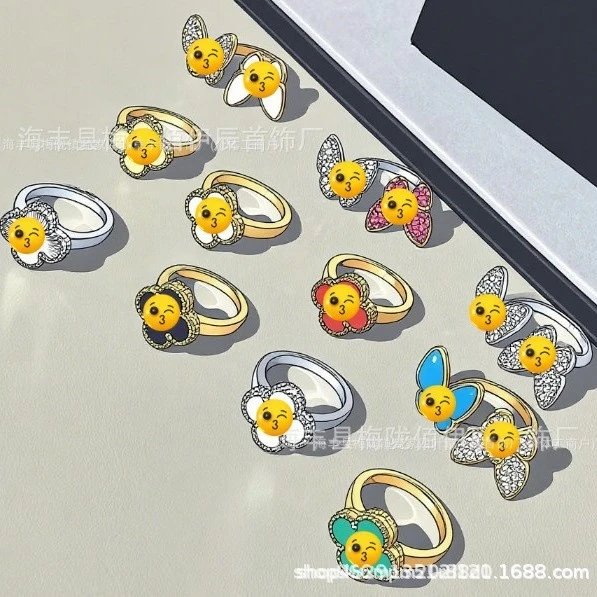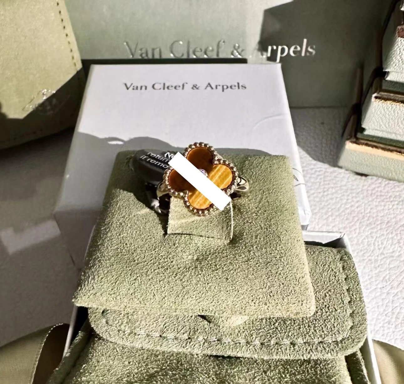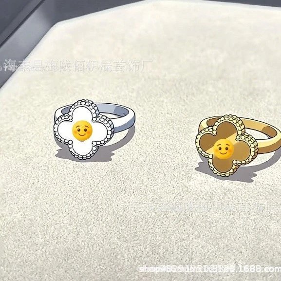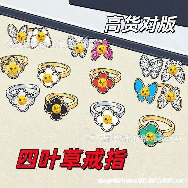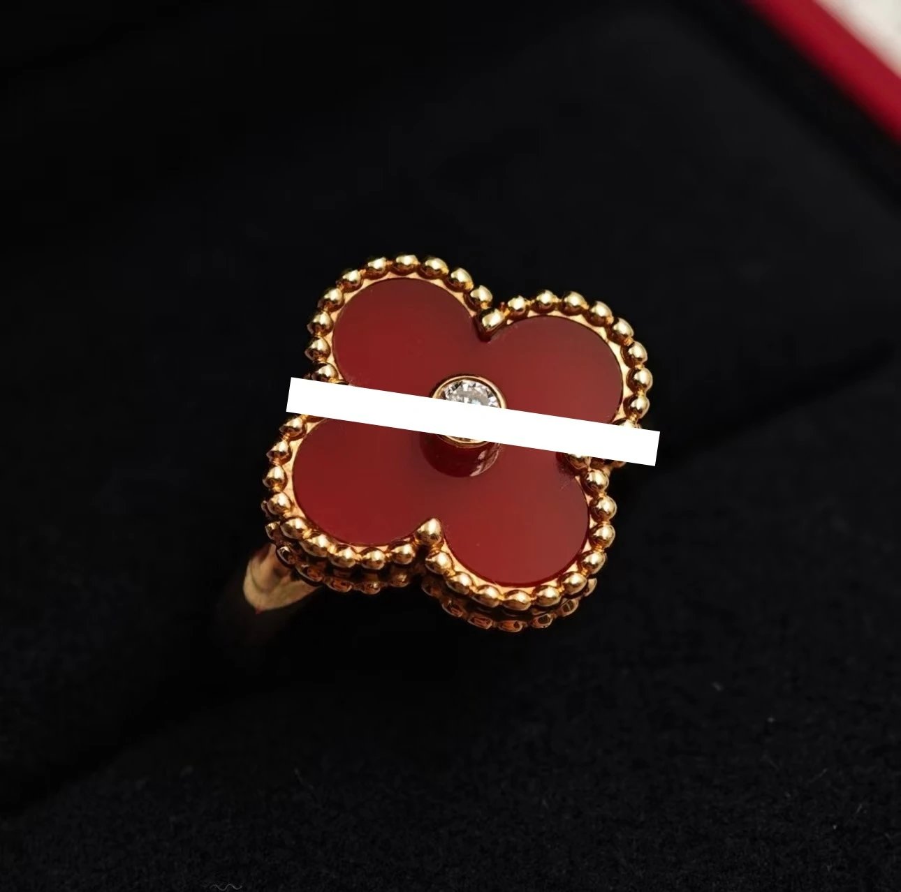 梵家高级感轻奢四叶草单花戒指镶钻18k金戒指ins风礼物送女友