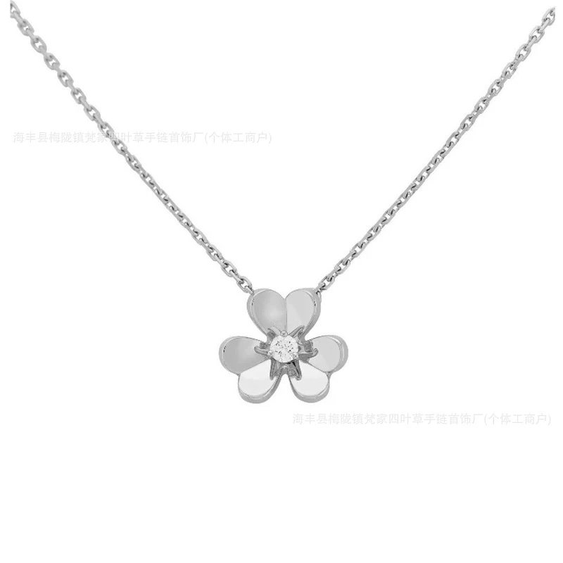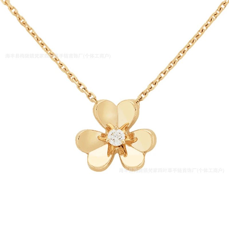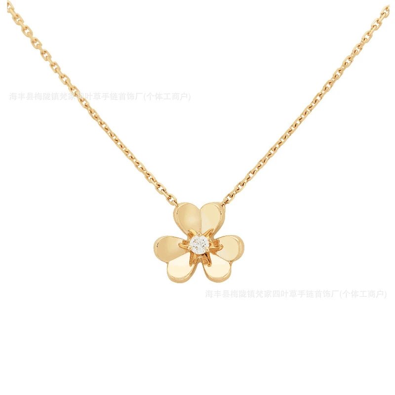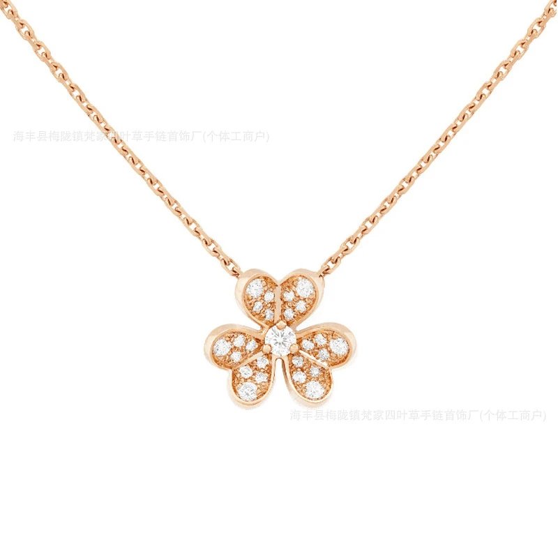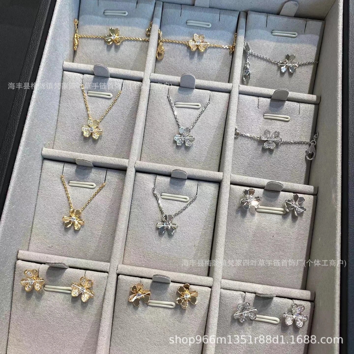 梵家镀18k玫瑰金花瓣满钻三叶草项链单钻幸运草耳钉镀骨链吊坠ins