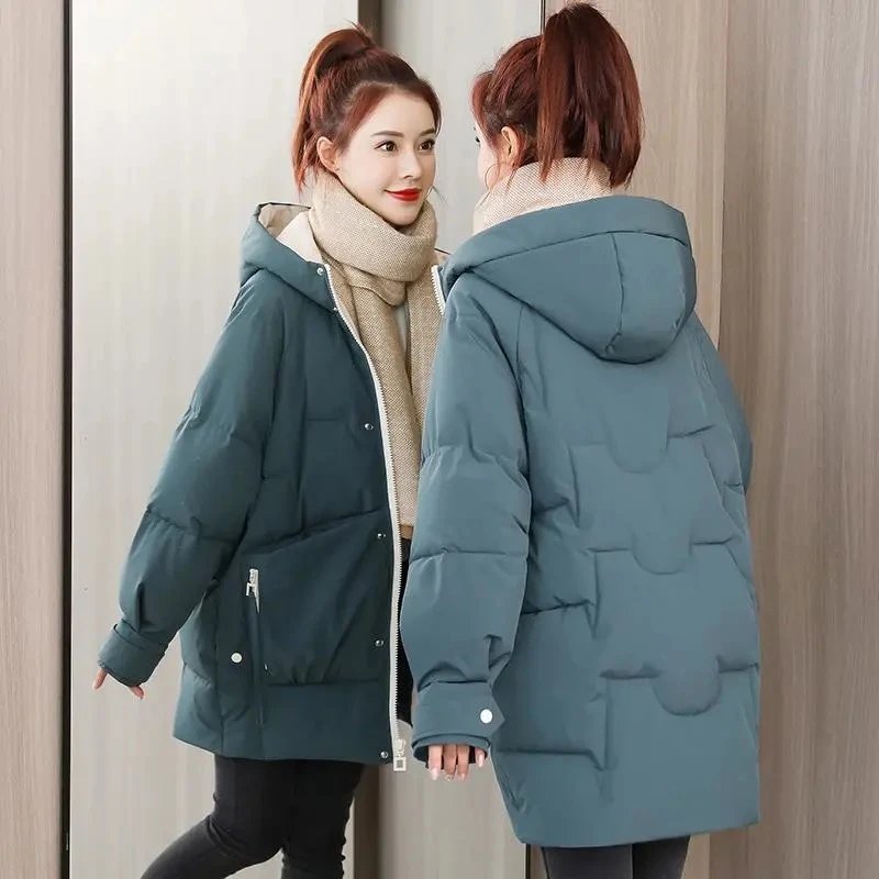 羽绒棉服中长款女2022冬季新款宽松休闲加厚保暖女式棉袄外套