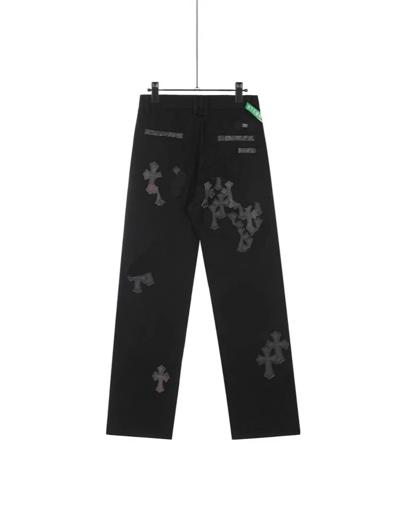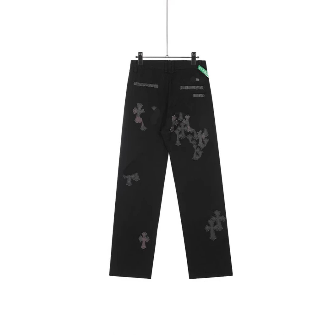 美式2024新款CH多处迷彩十字架贴皮直筒情侣水洗牛仔裤直筒裤
