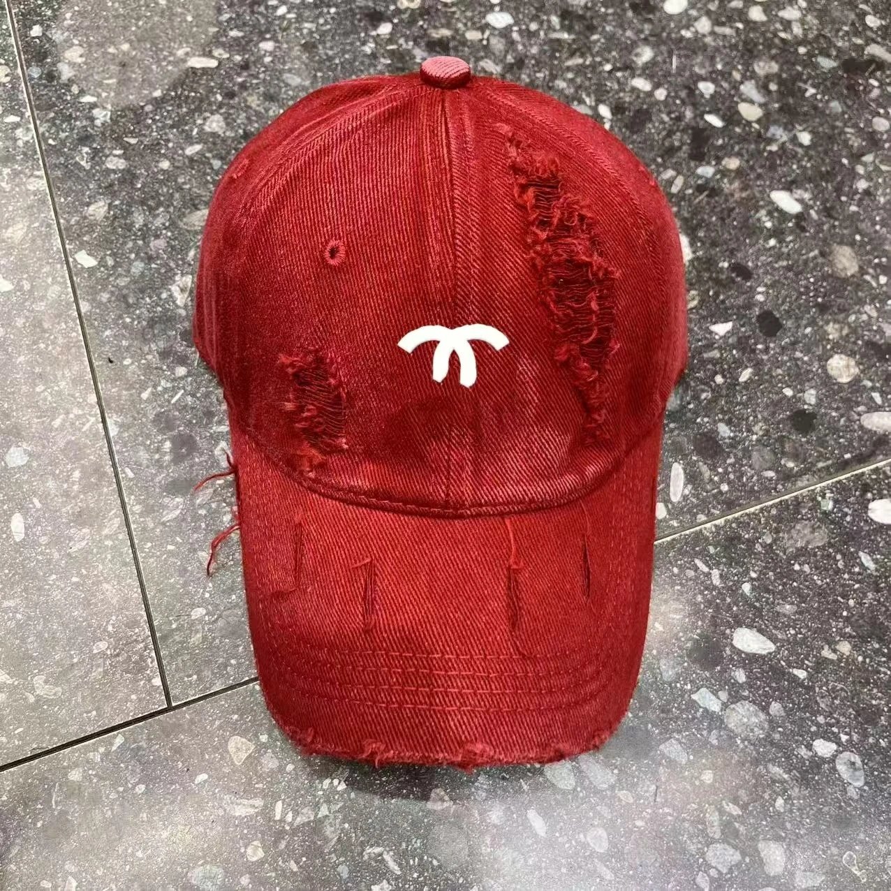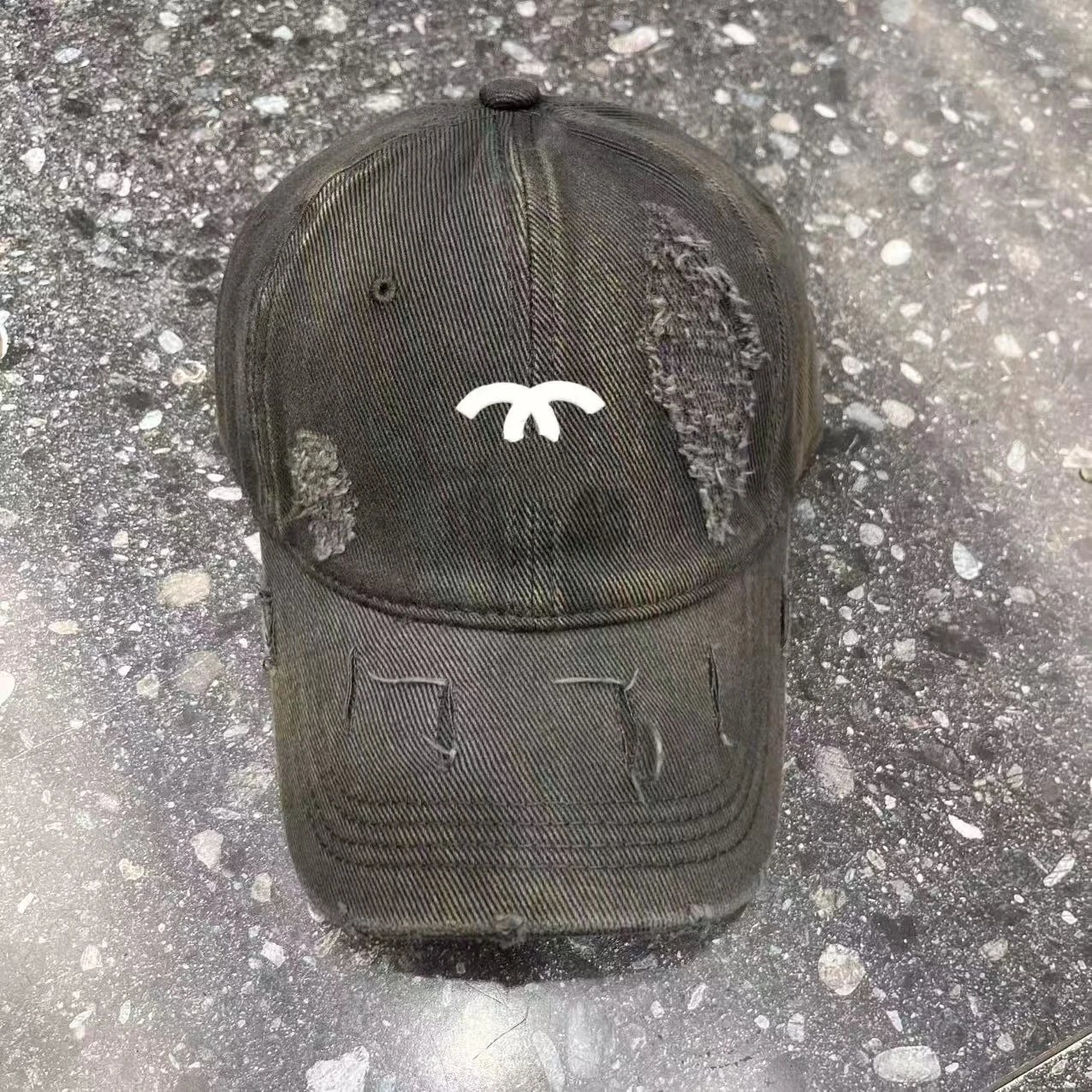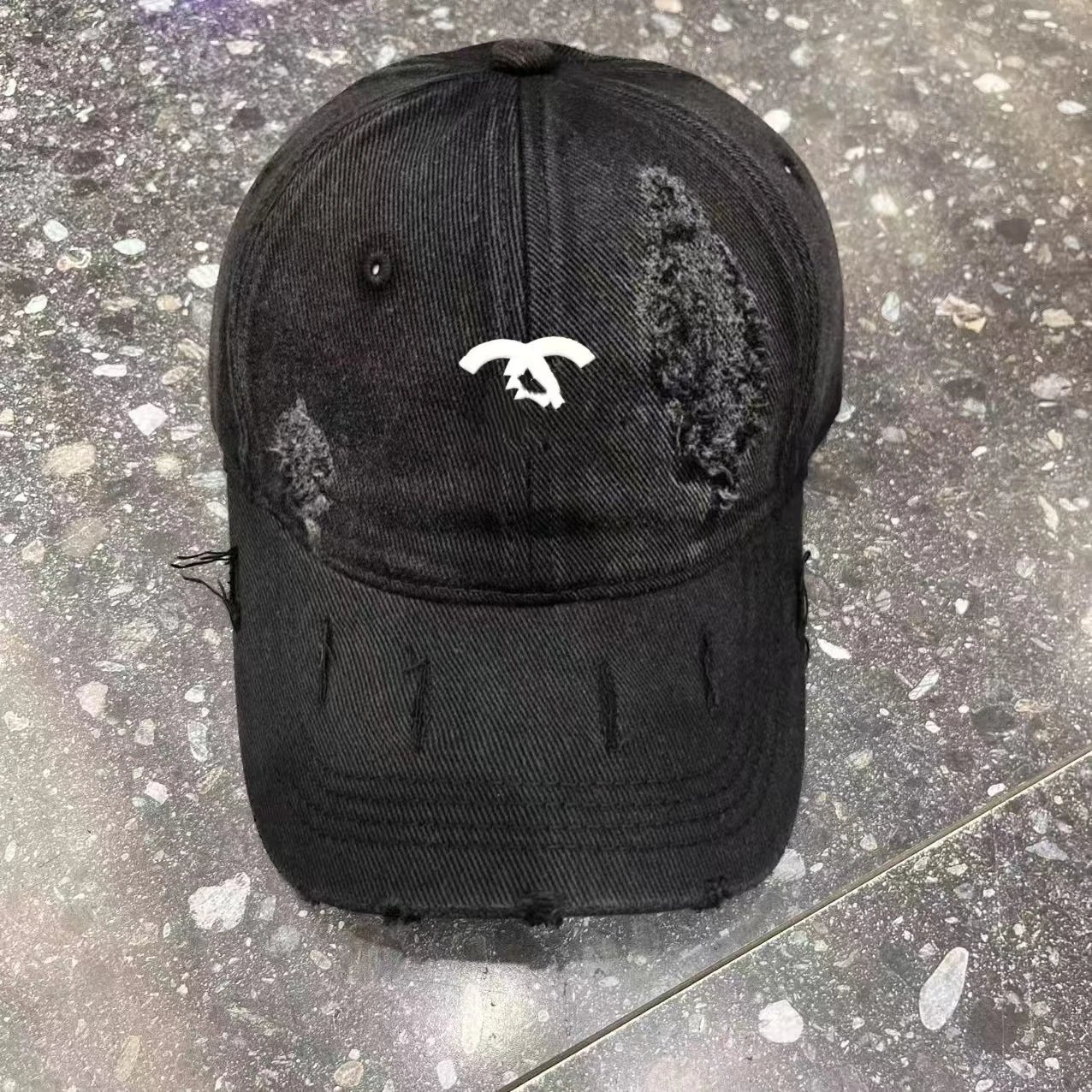 2025 新款 双C纯色破洞鸭舌帽男女遮阳休闲百搭街头做旧复古帽子