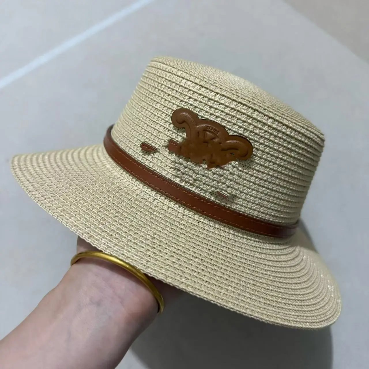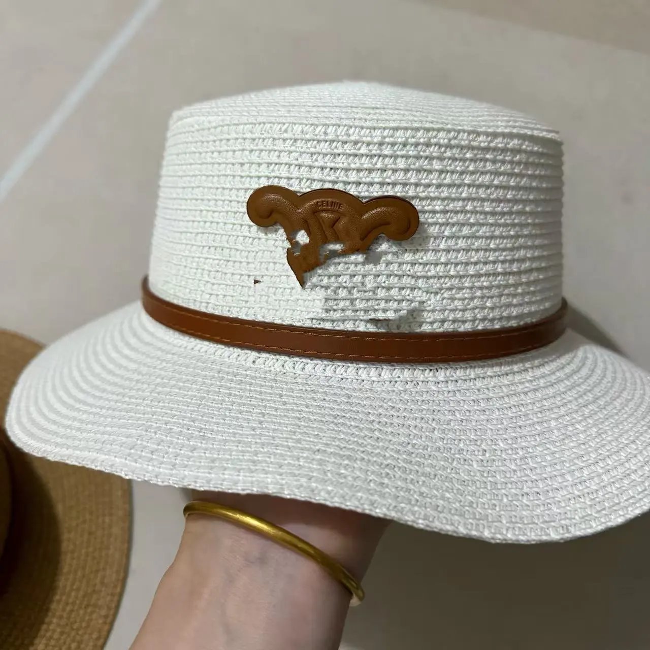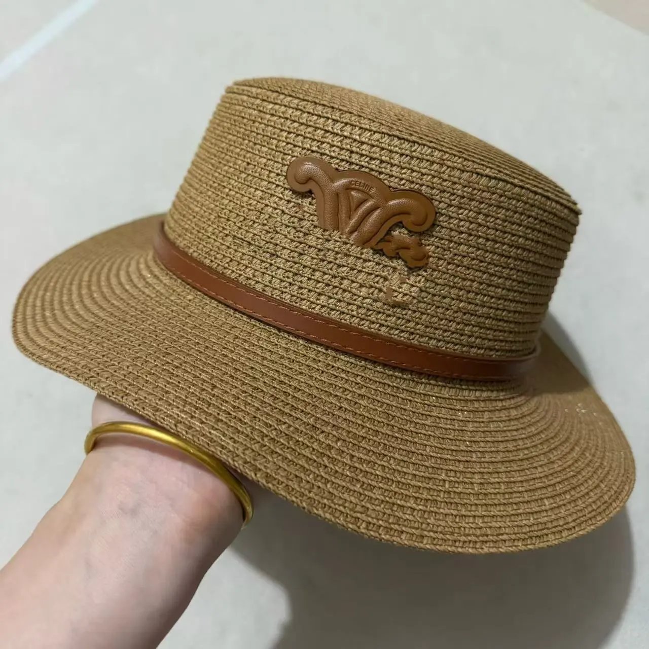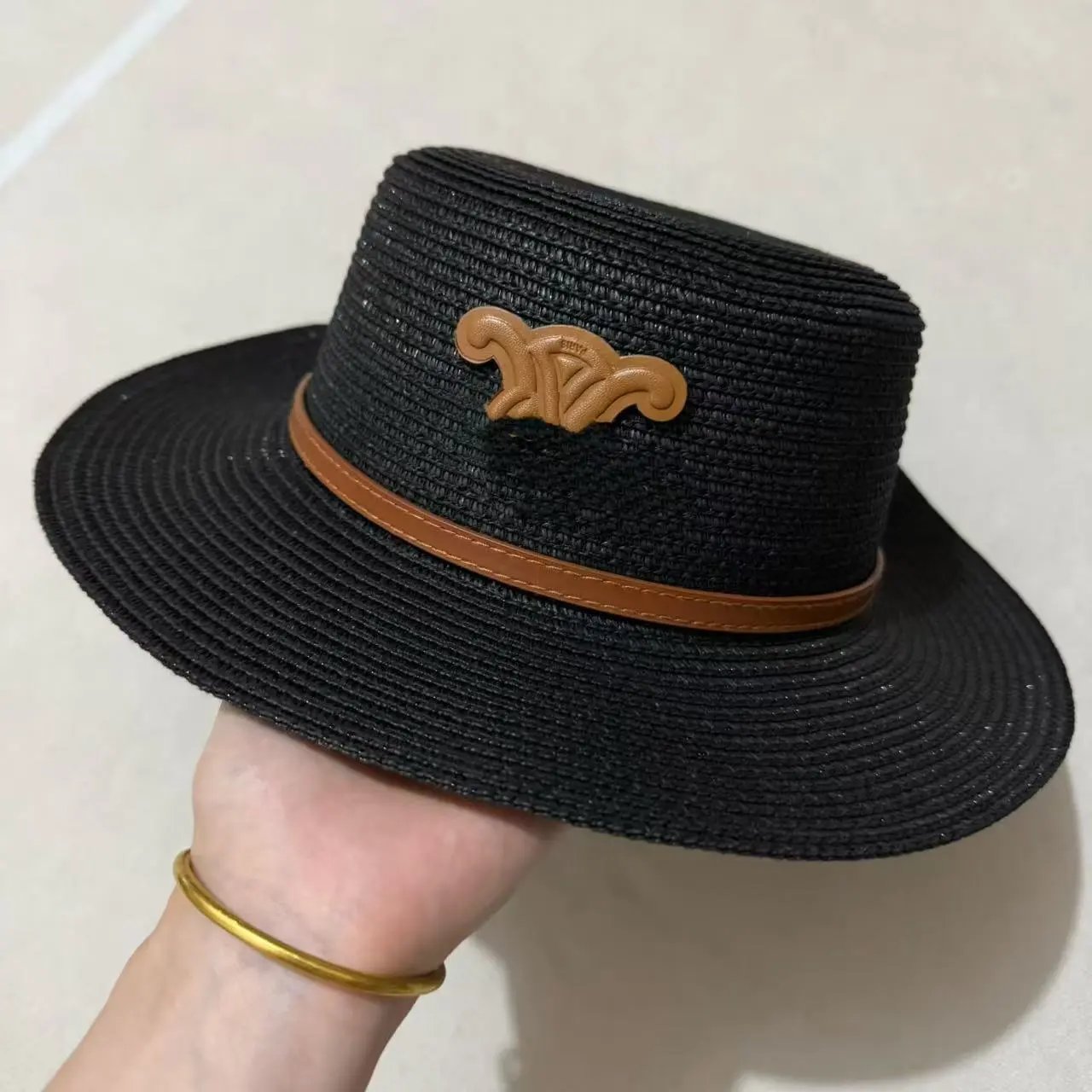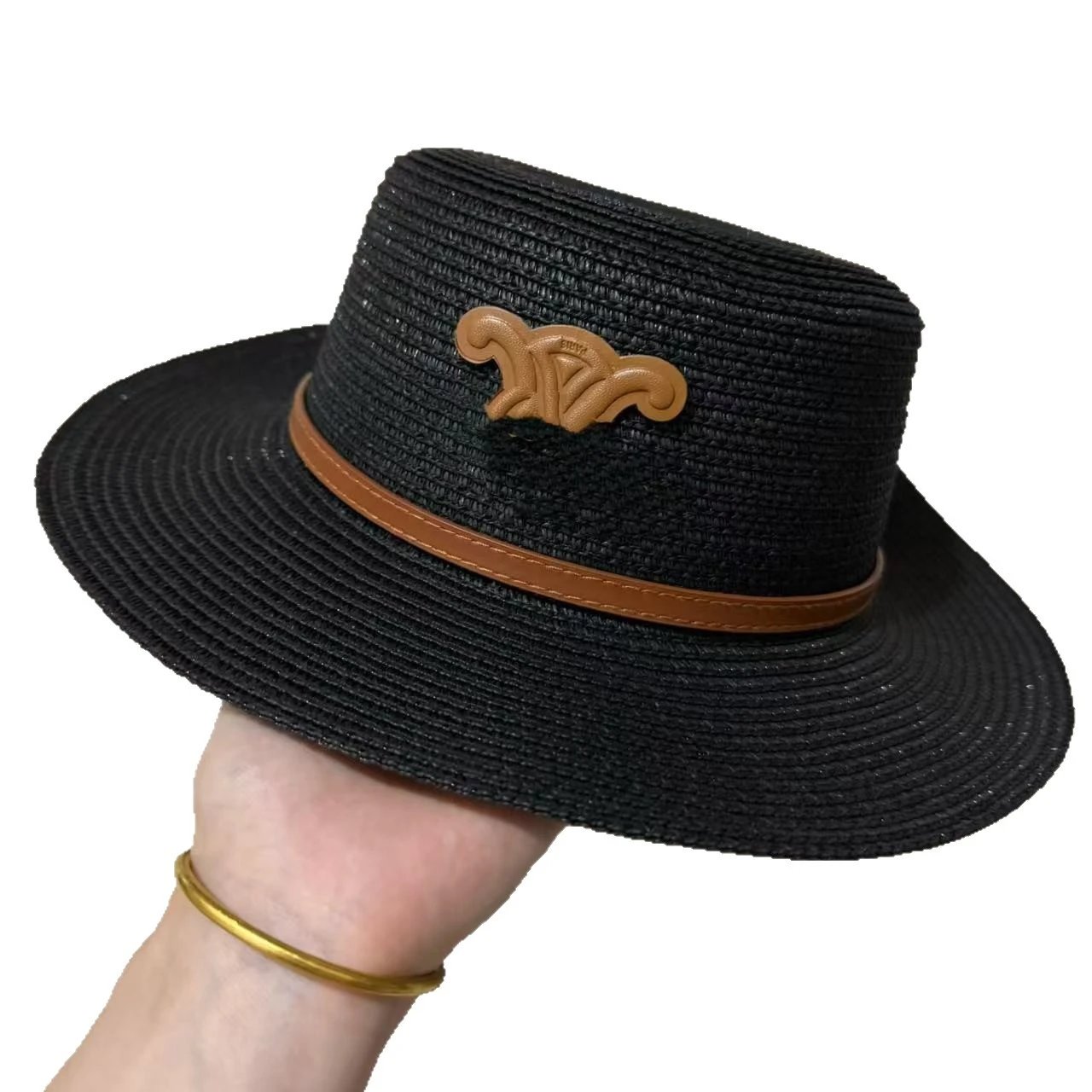 2025 新款凯旋门平顶草帽女ins夏季简约时尚百搭出游度假防晒帽子