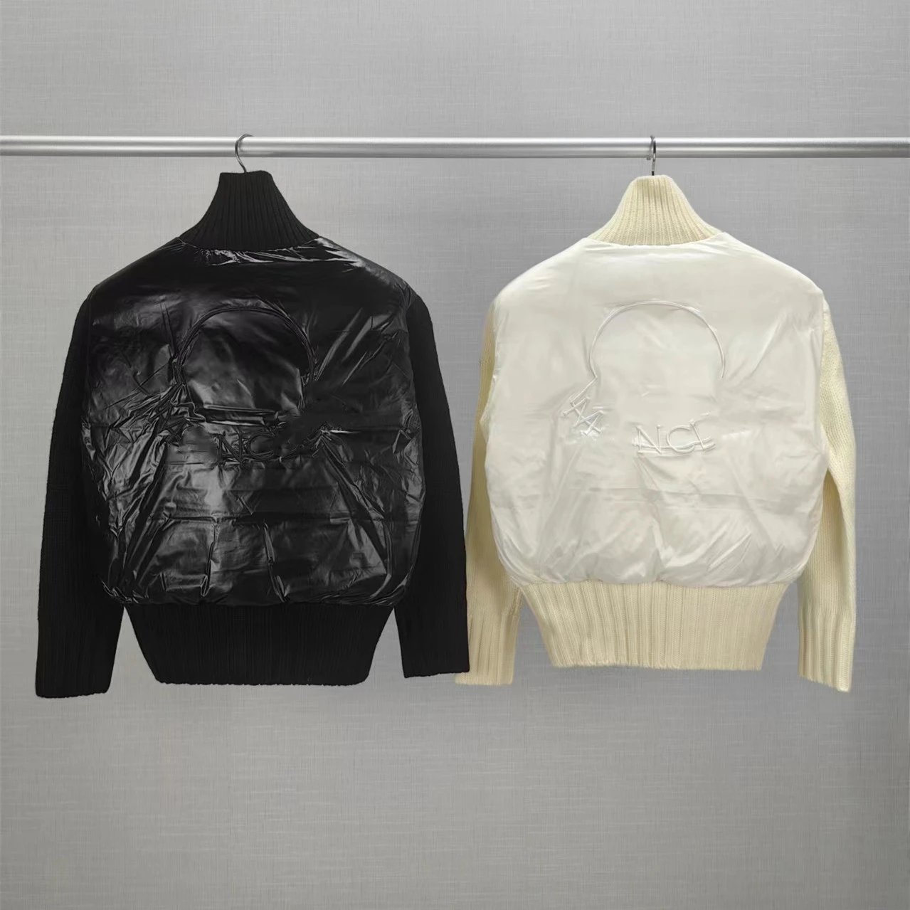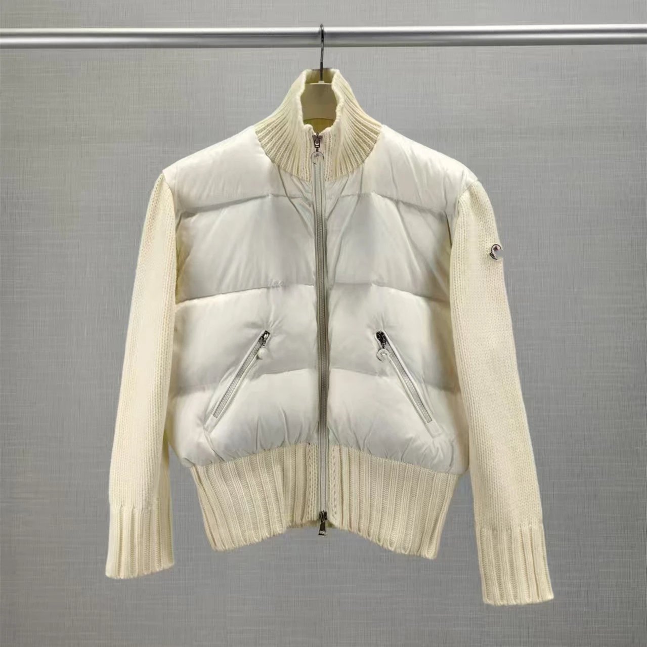25秋冬新款M家针织拼接轻薄白色羽绒服立领短款时尚夹克开衫外套