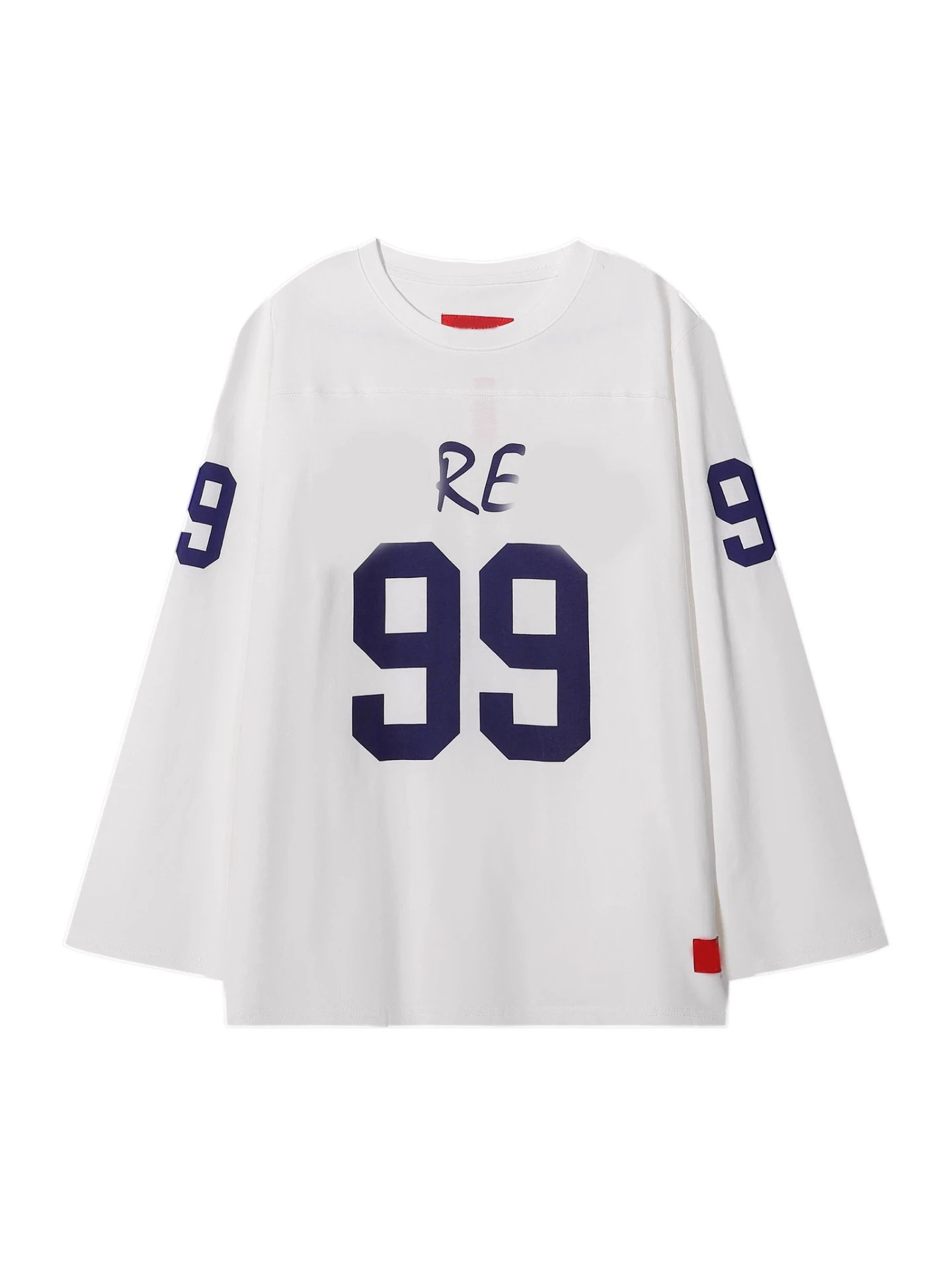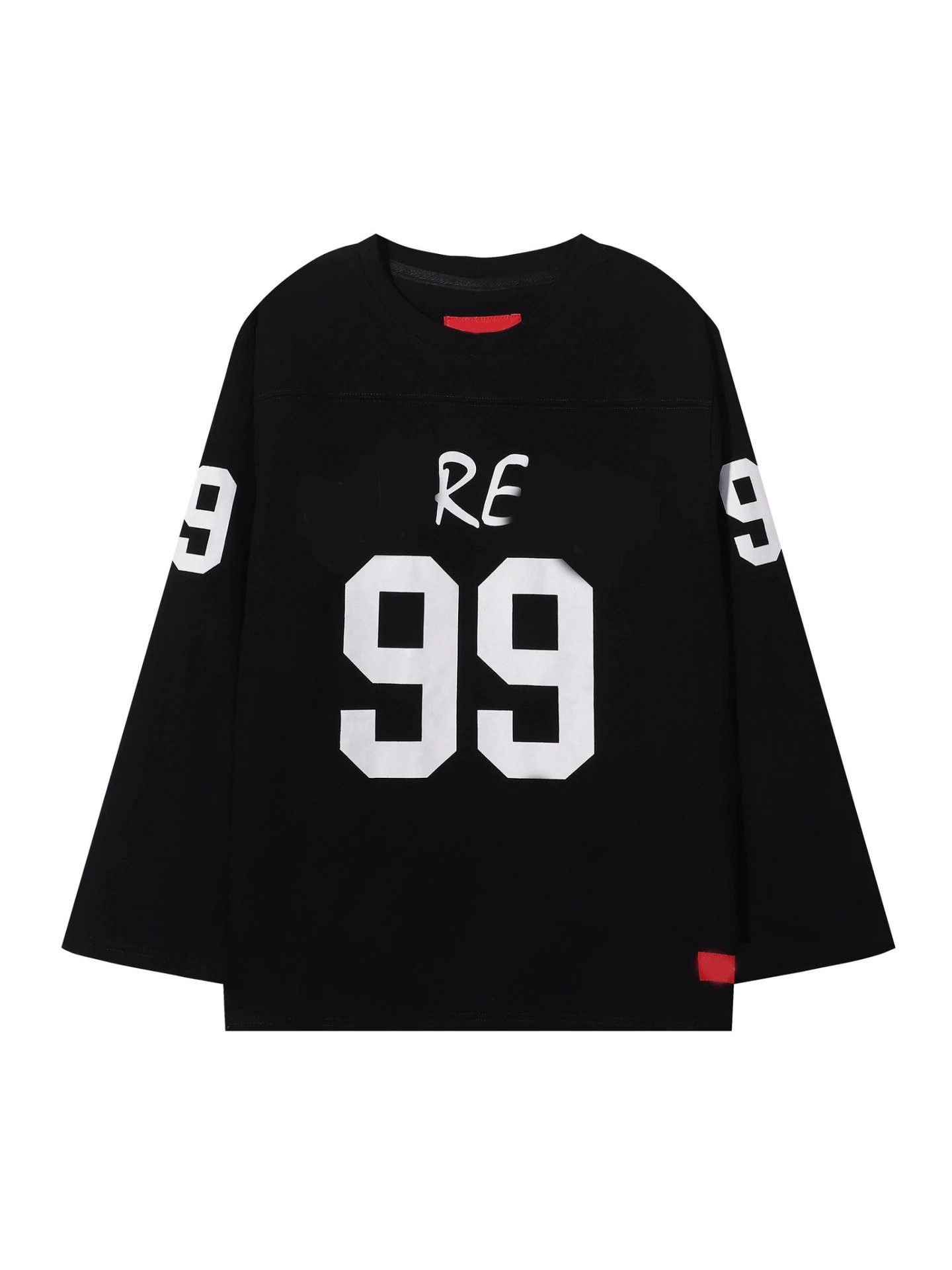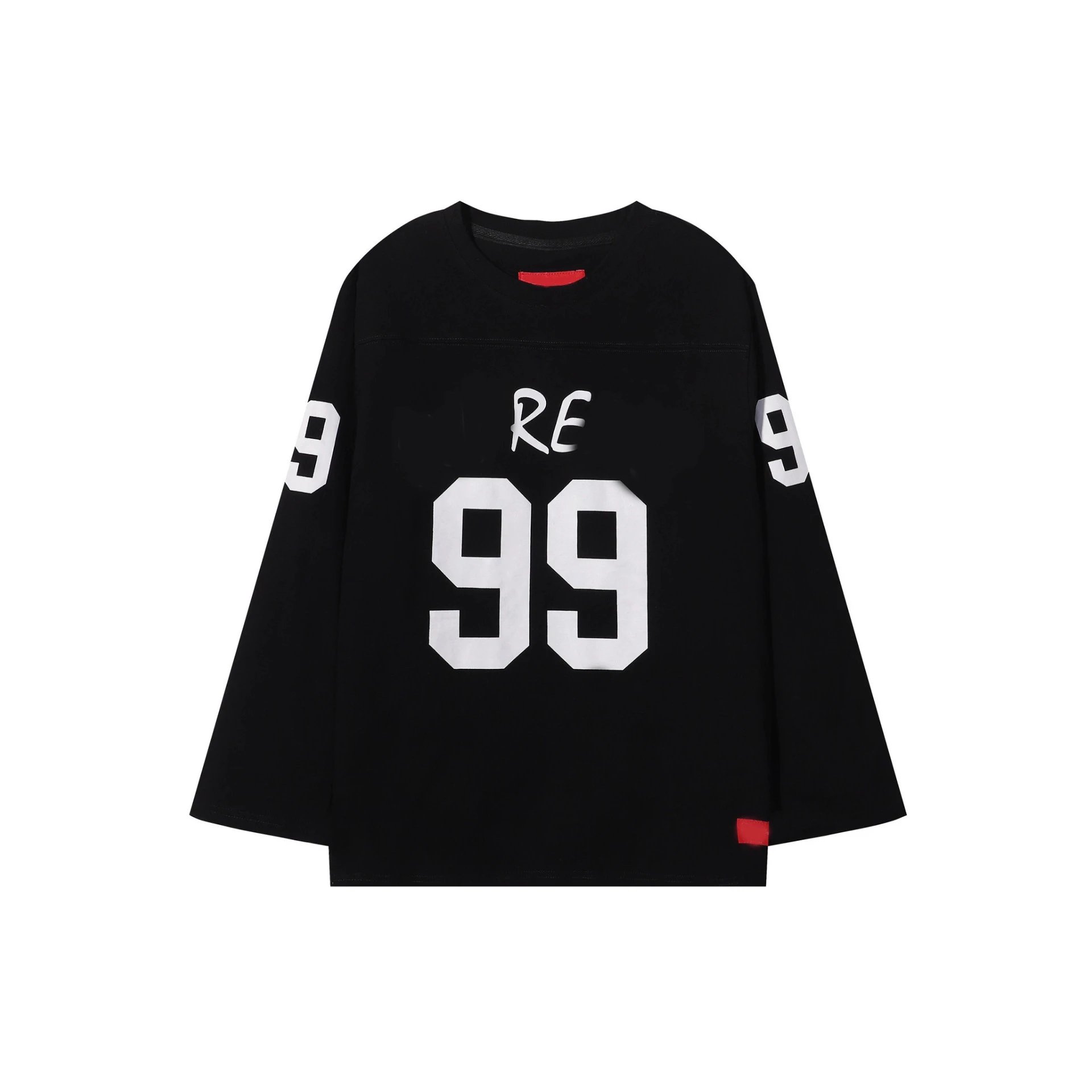 2025春秋99号印花长袖T恤图案男女款宽松休闲潮打底衫t百搭