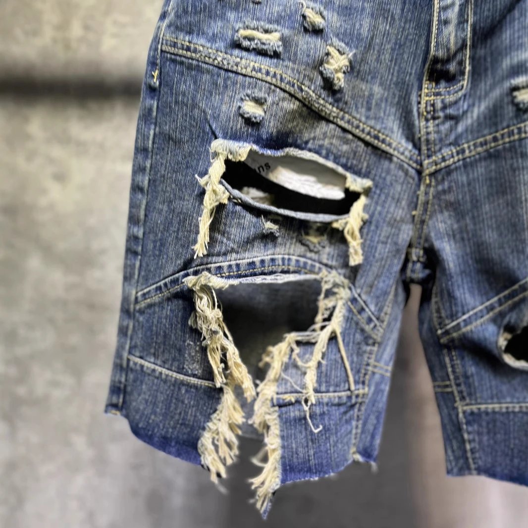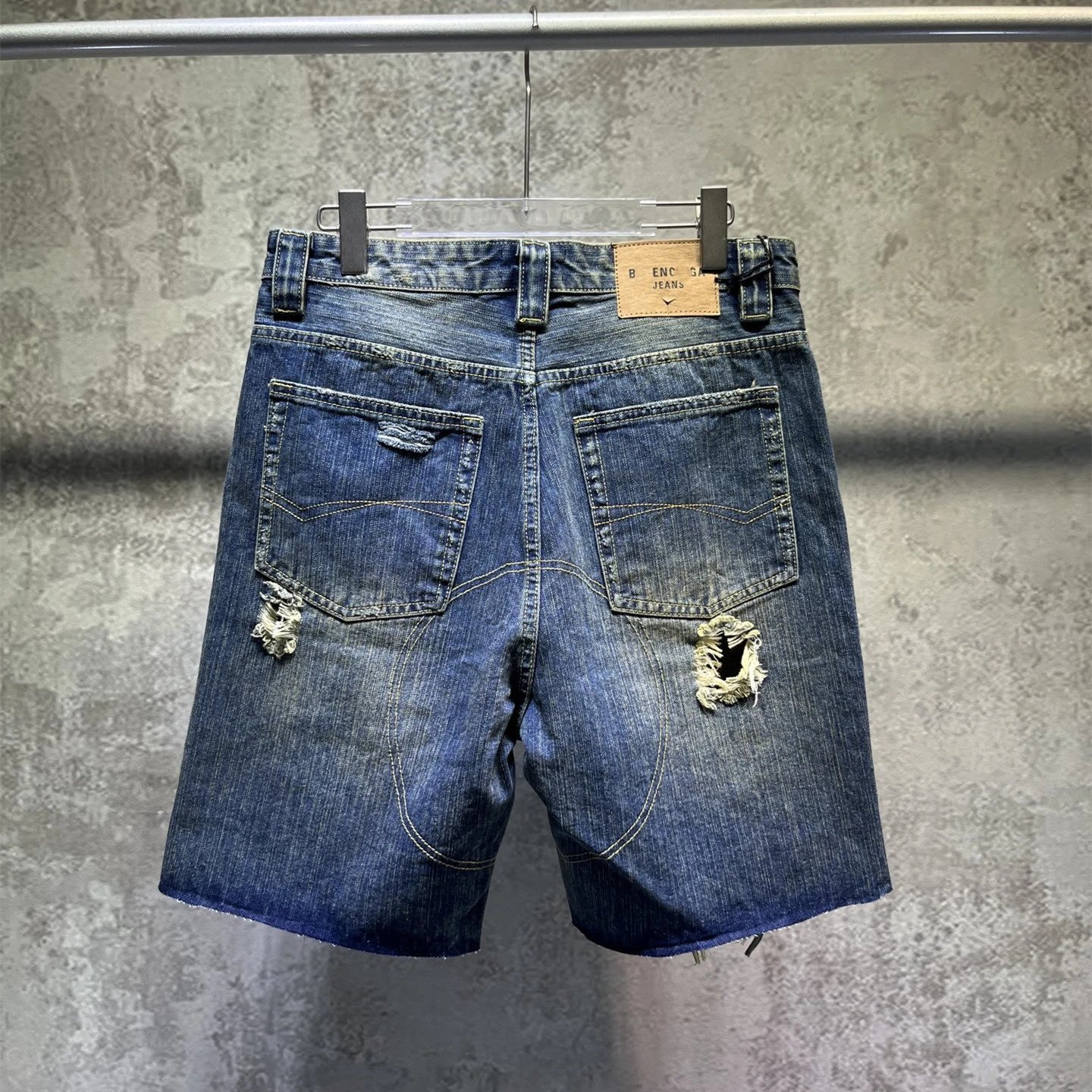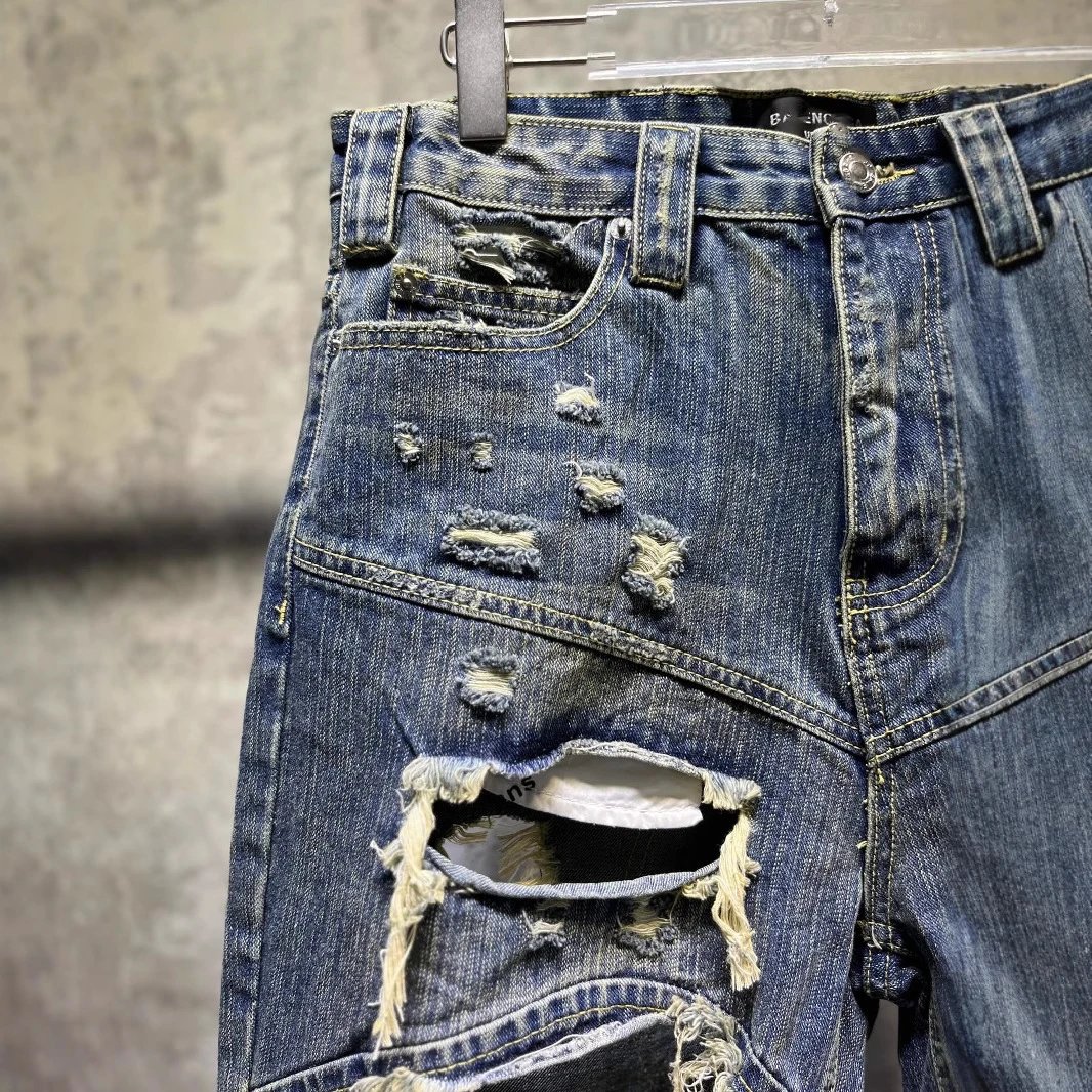 2025夏季新款巴黎B家走秀款磨损破洞宽松版型 牛仔裤短裤男女