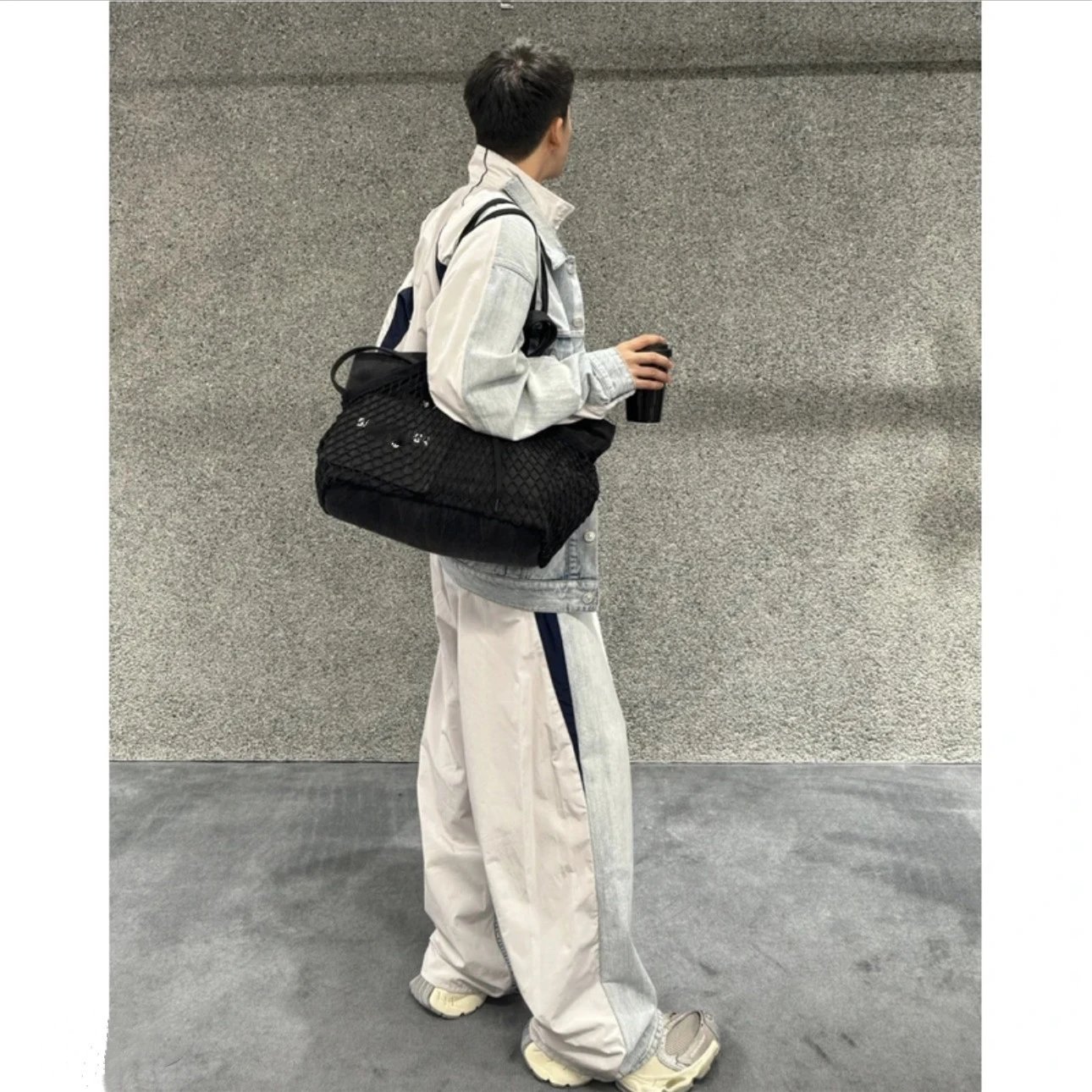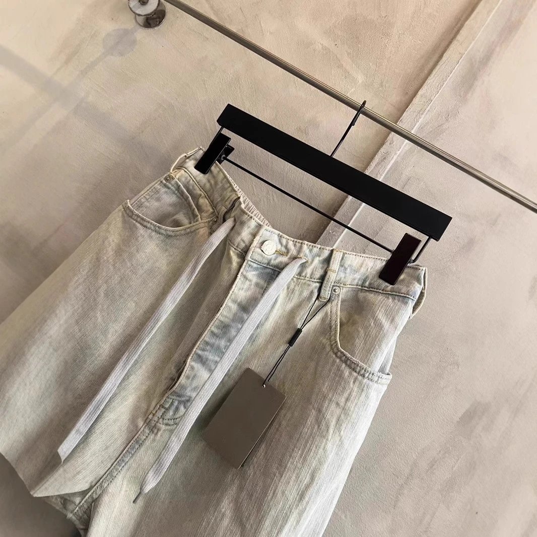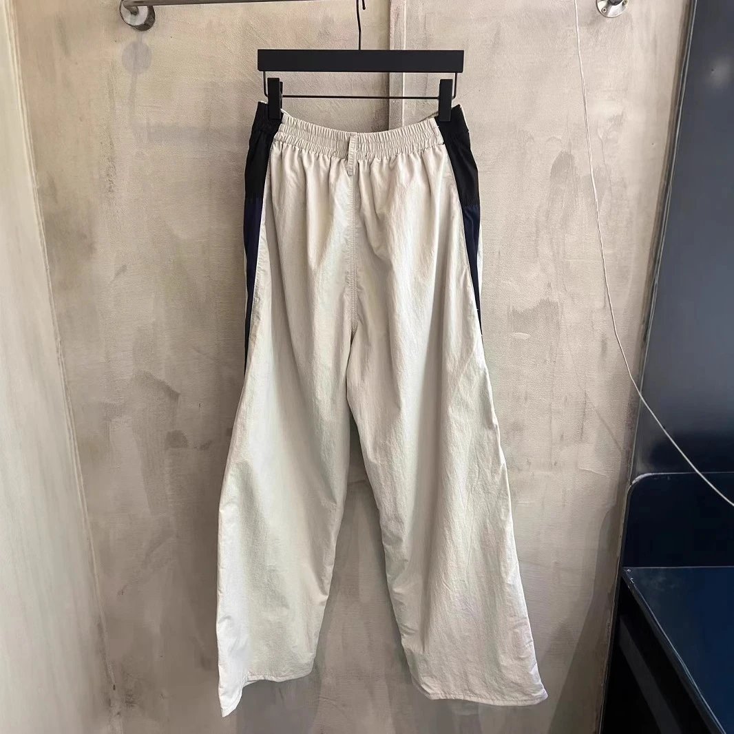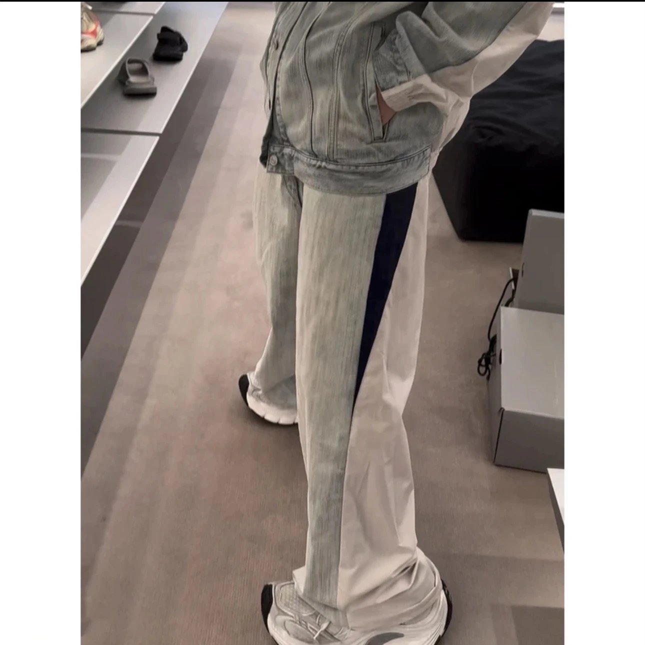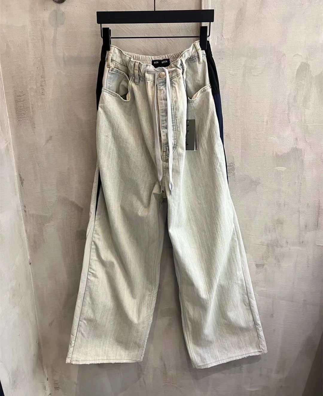 2025早春新款巴黎B家水洗抽绳牛仔拼接梭织运动宽松长裤牛仔裤