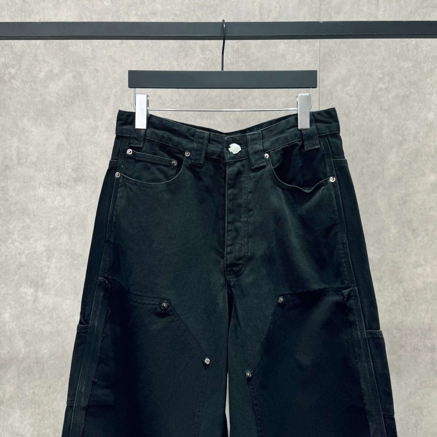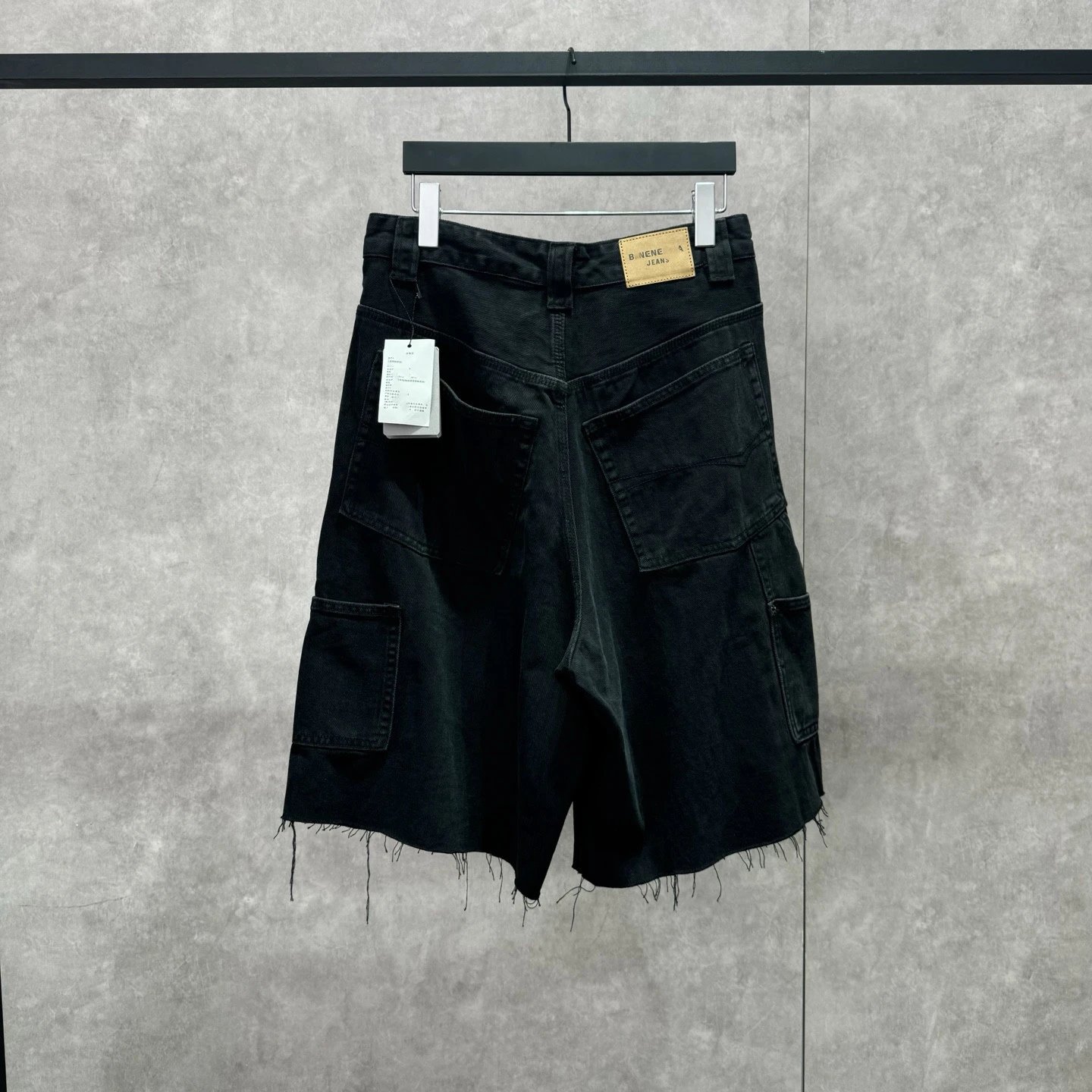 2025夏季新款巴黎B家网红同款贴布伐木牛仔裤水洗短裤男女