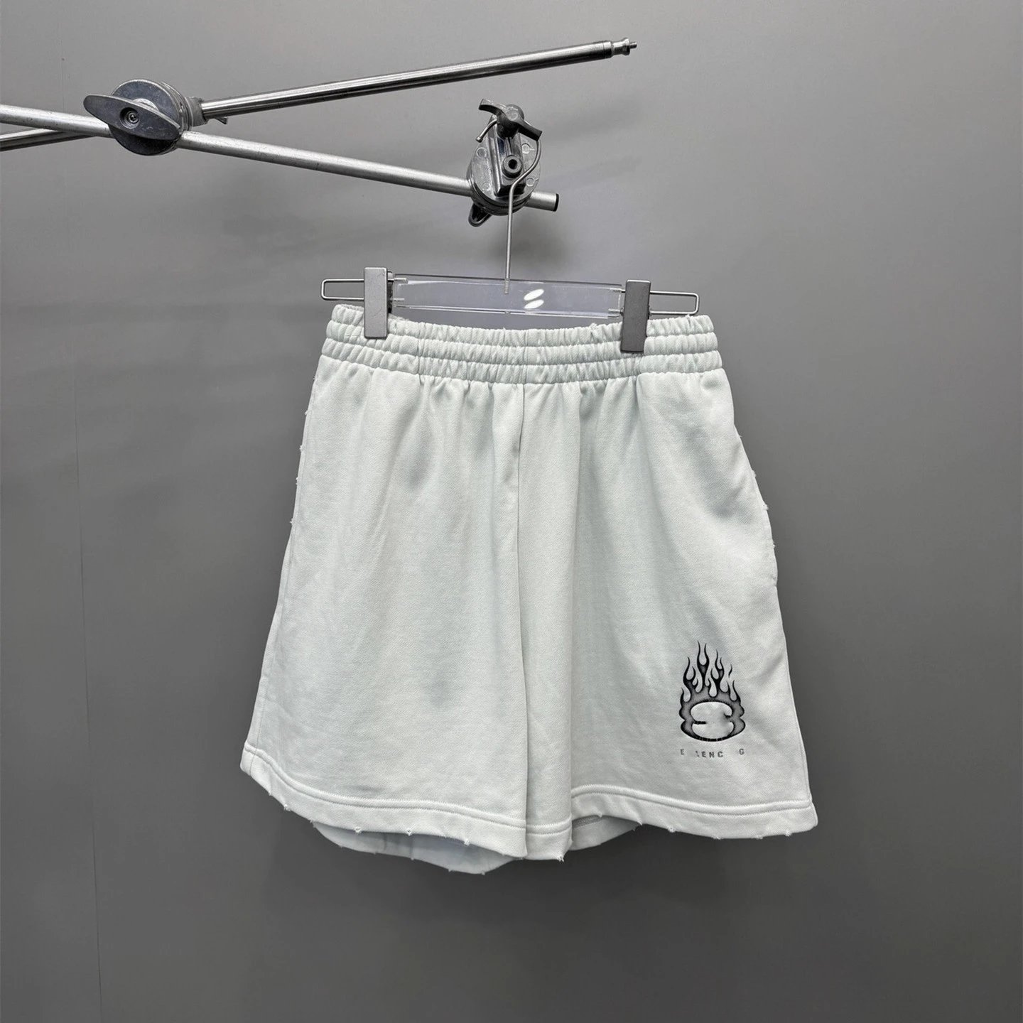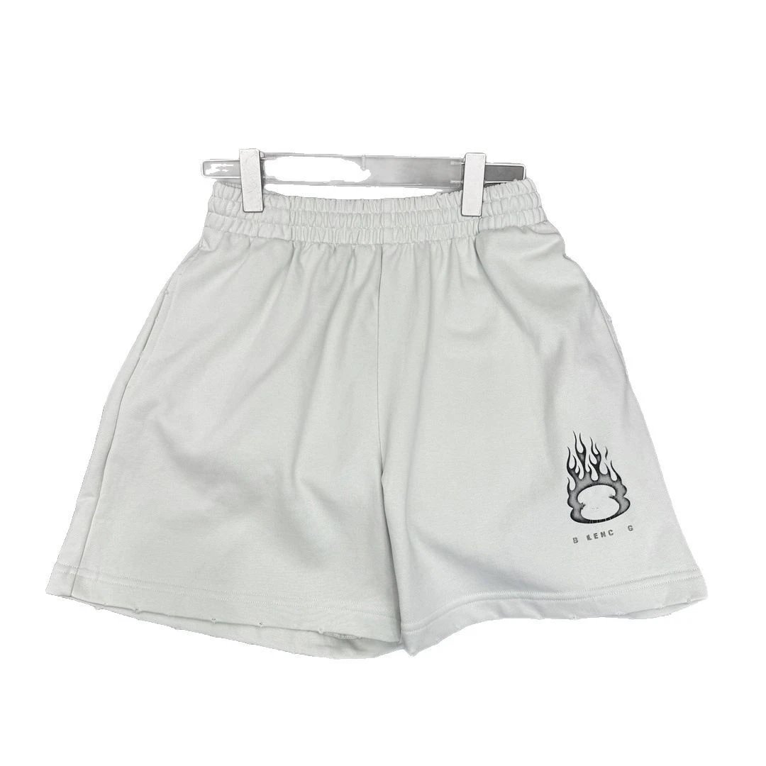 2025春夏新款巴黎B家火焰双环裂纹印花运动短裤五分裤