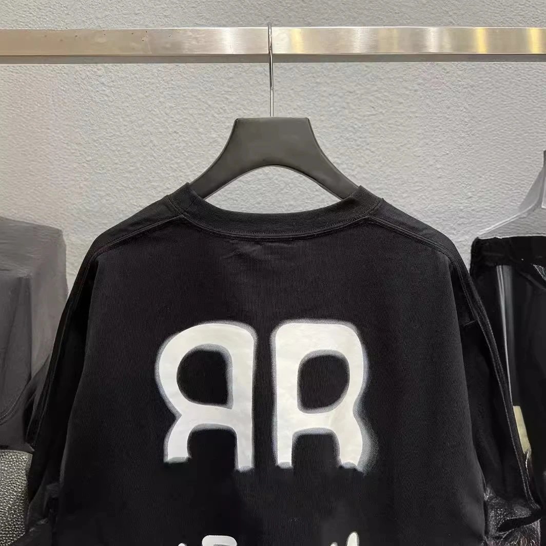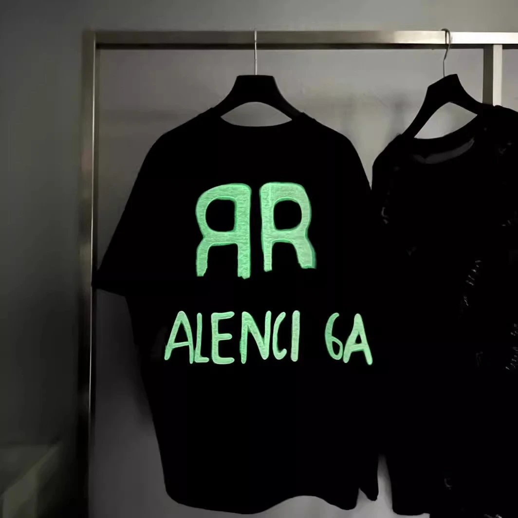 2025夏季新款巴黎B家背后BB夜光涂鸦字母男女短袖T恤
