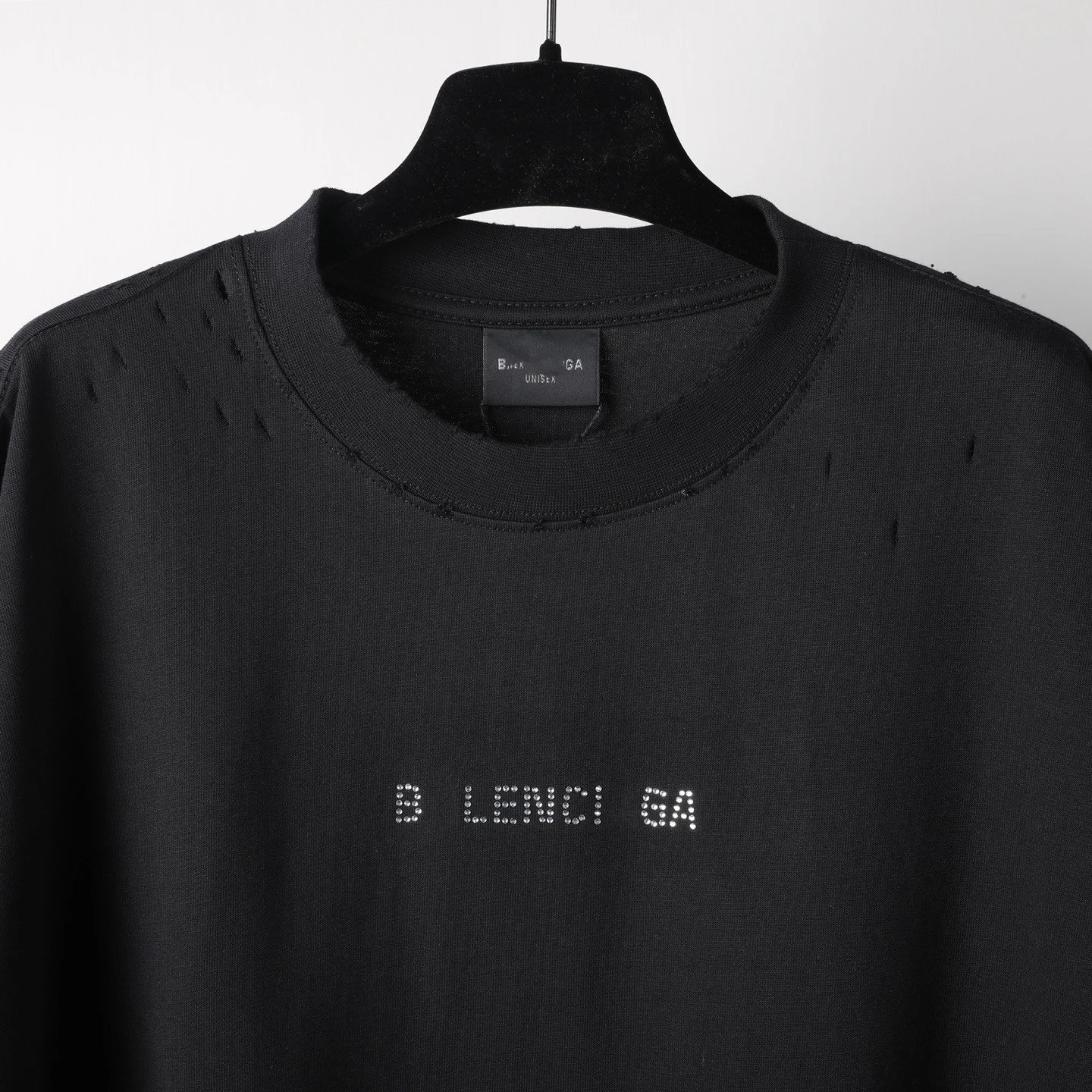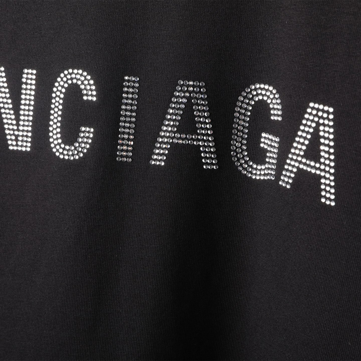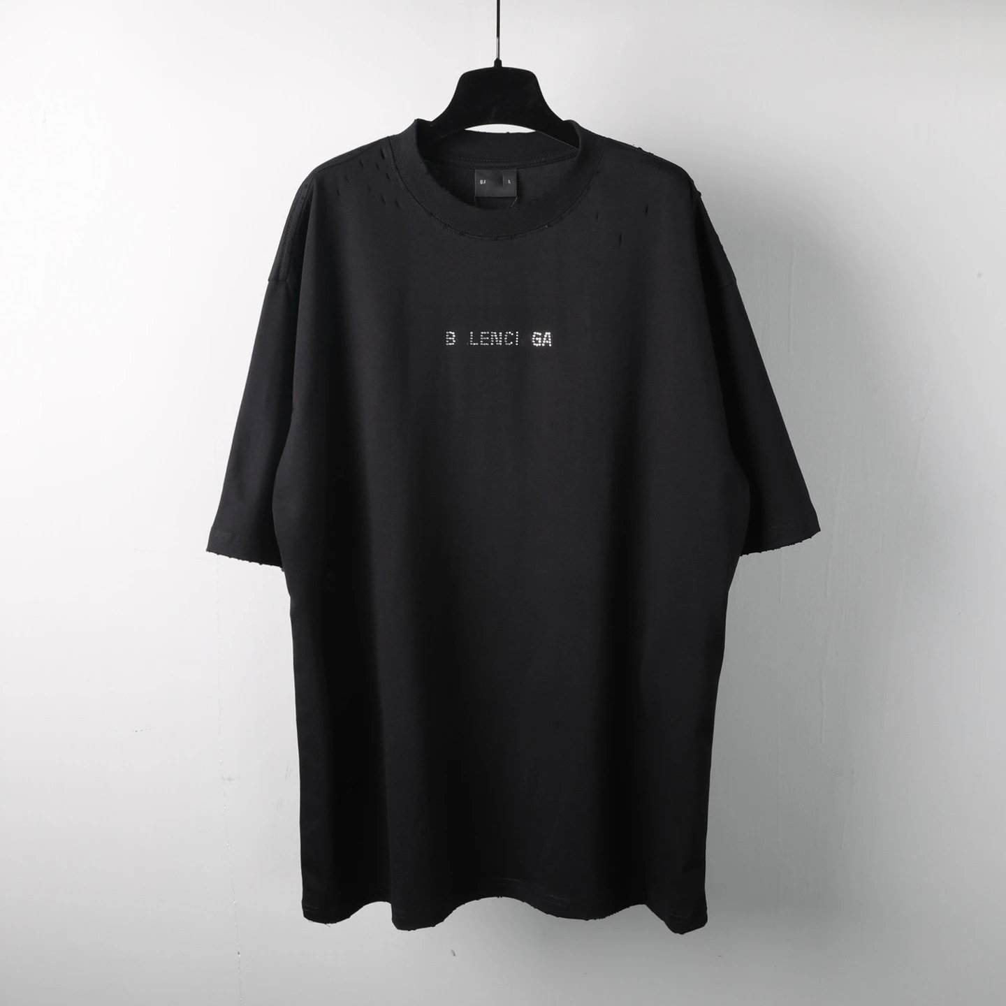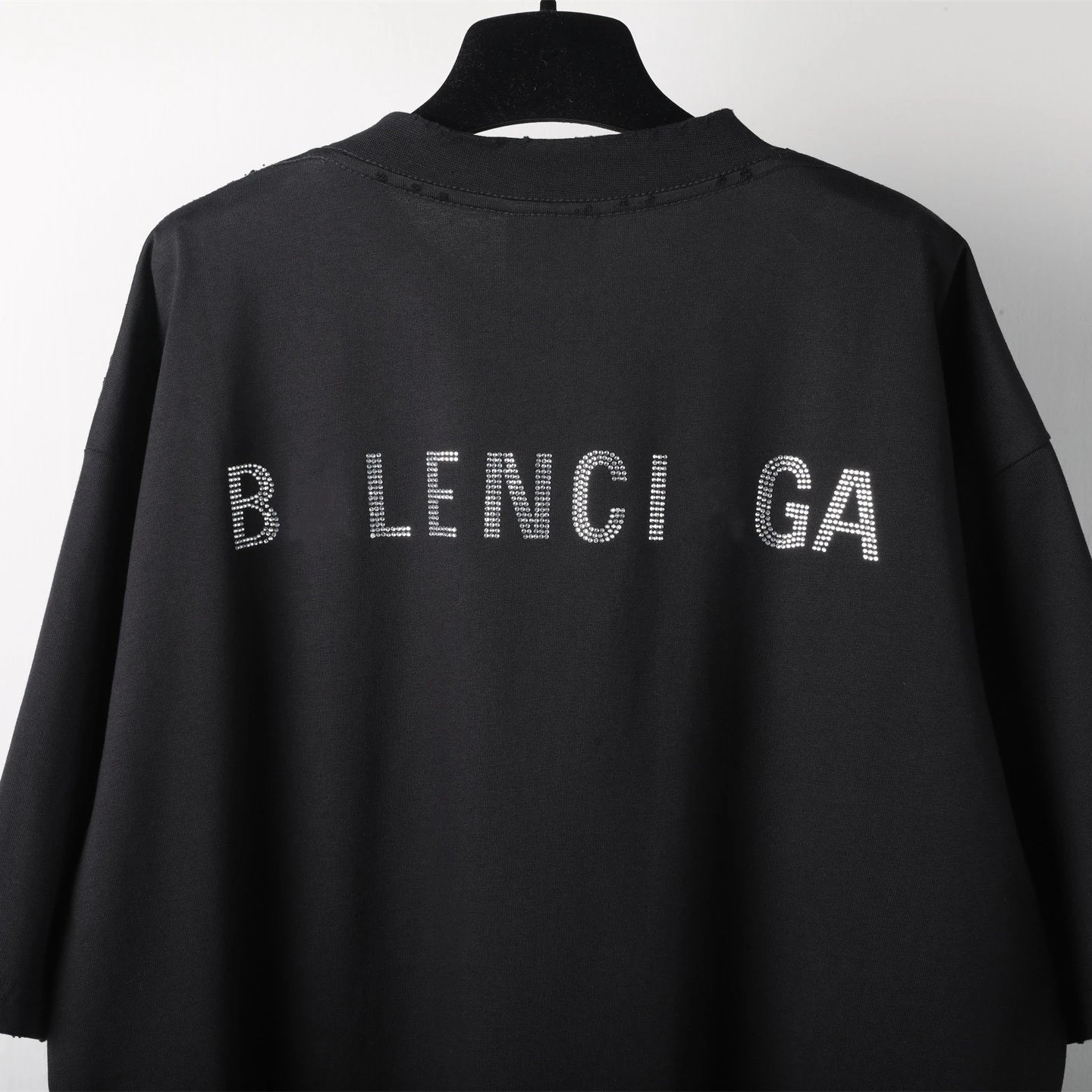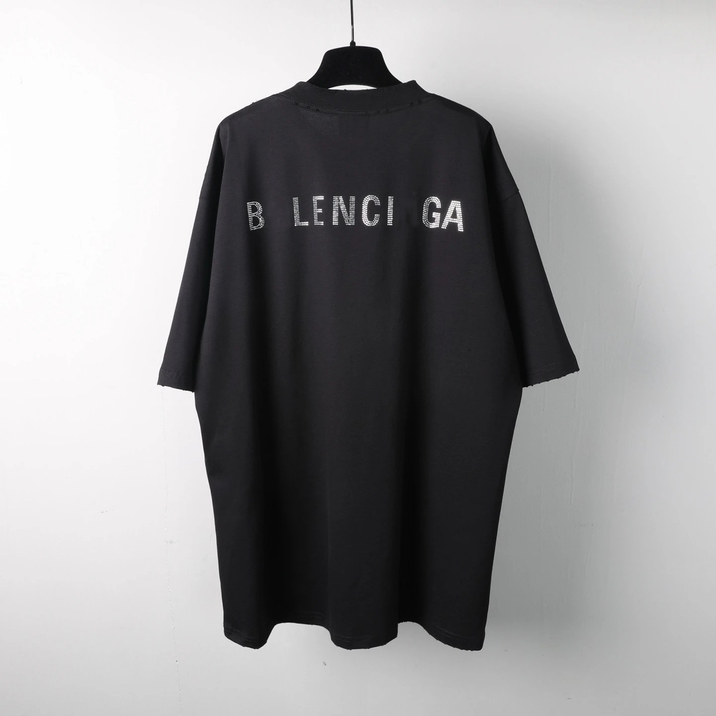 2025夏季新品巴黎B家前后字母烫钻小领口男女短袖T恤