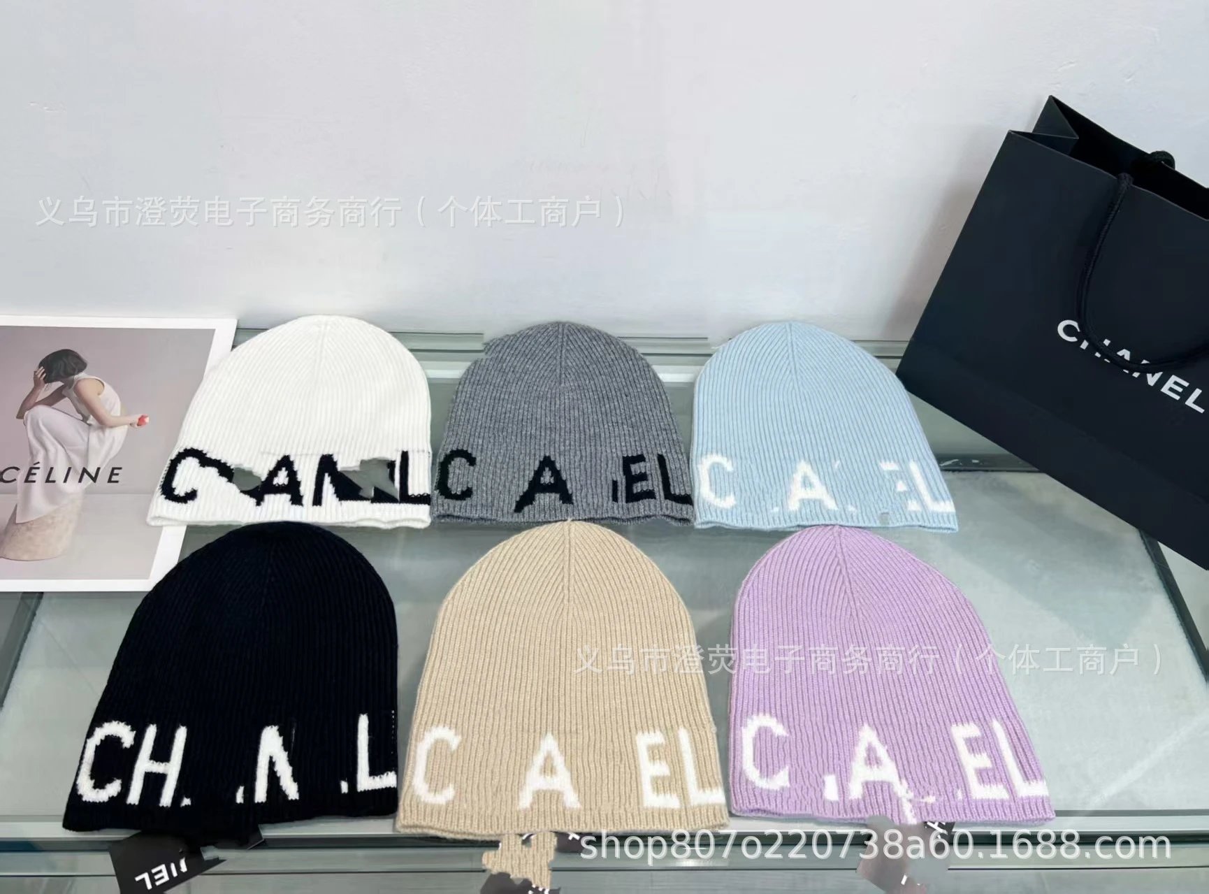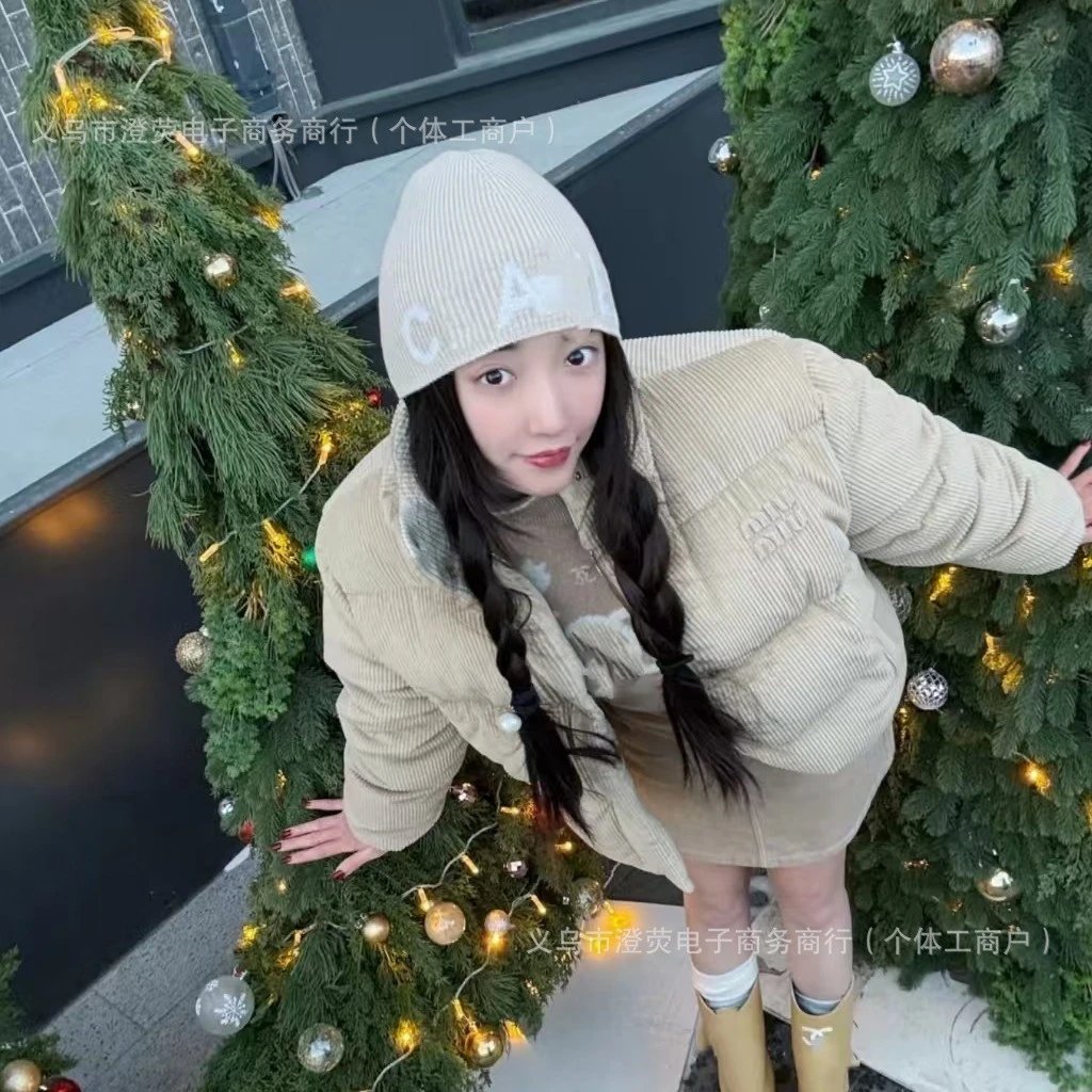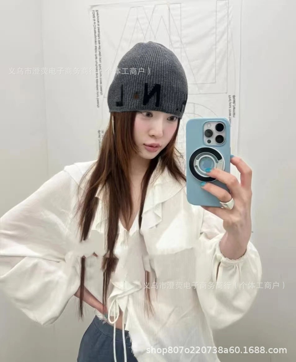 2025新款时尚针织帽秋冬季双C字母刺绣男女同款毛线帽保暖帽