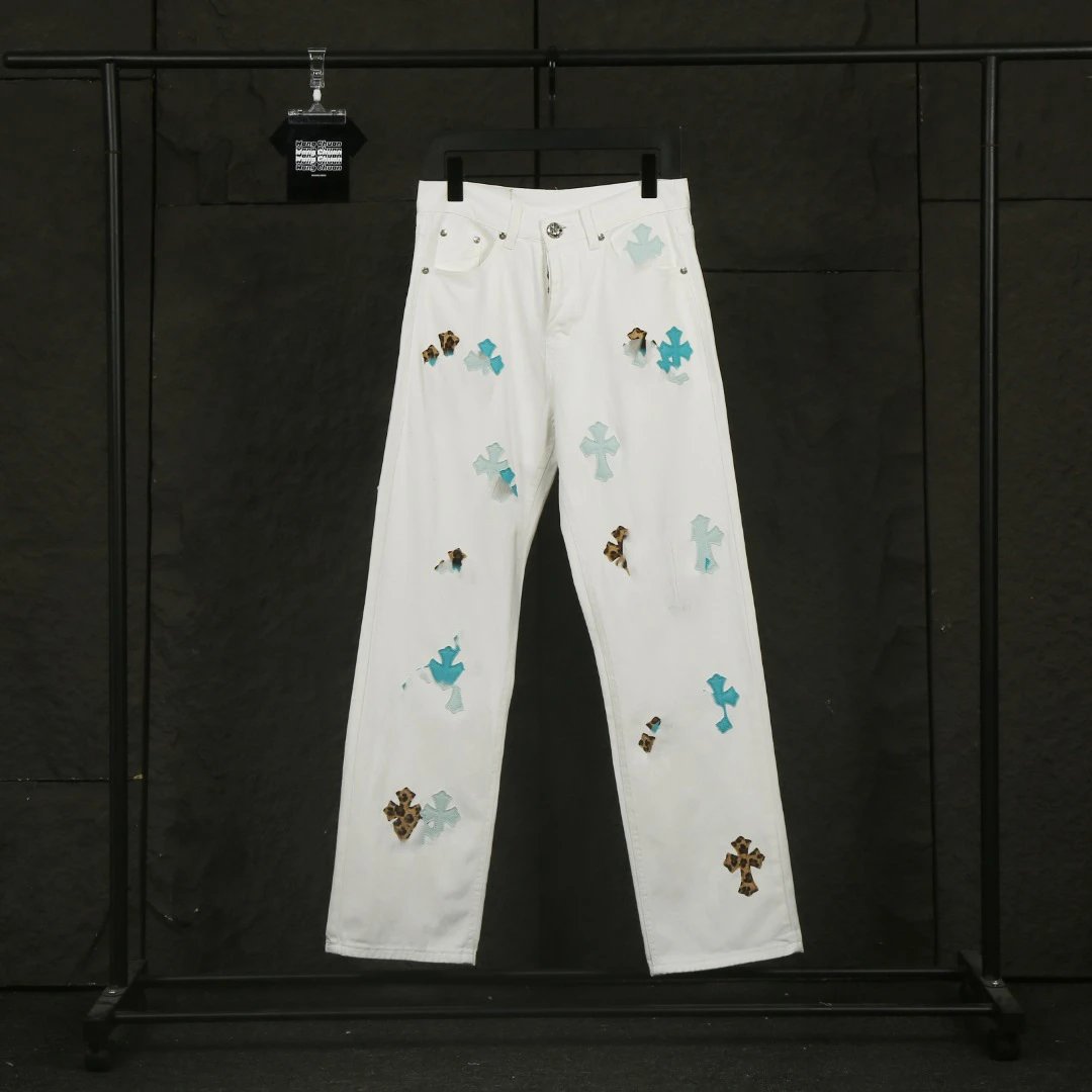 Trendy Broken Planet Embroidered Cross Straight Leg Jeans for Spring/Summer Street Fashion