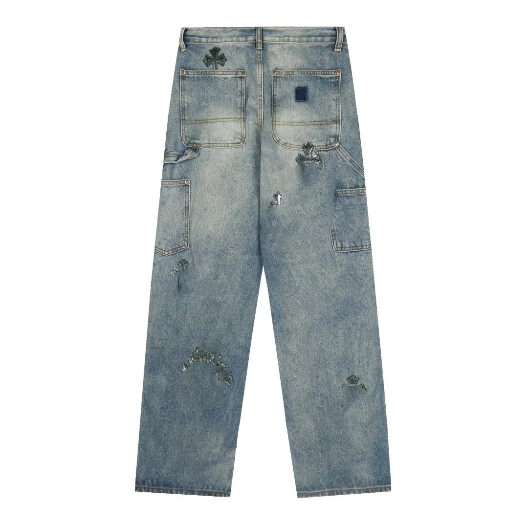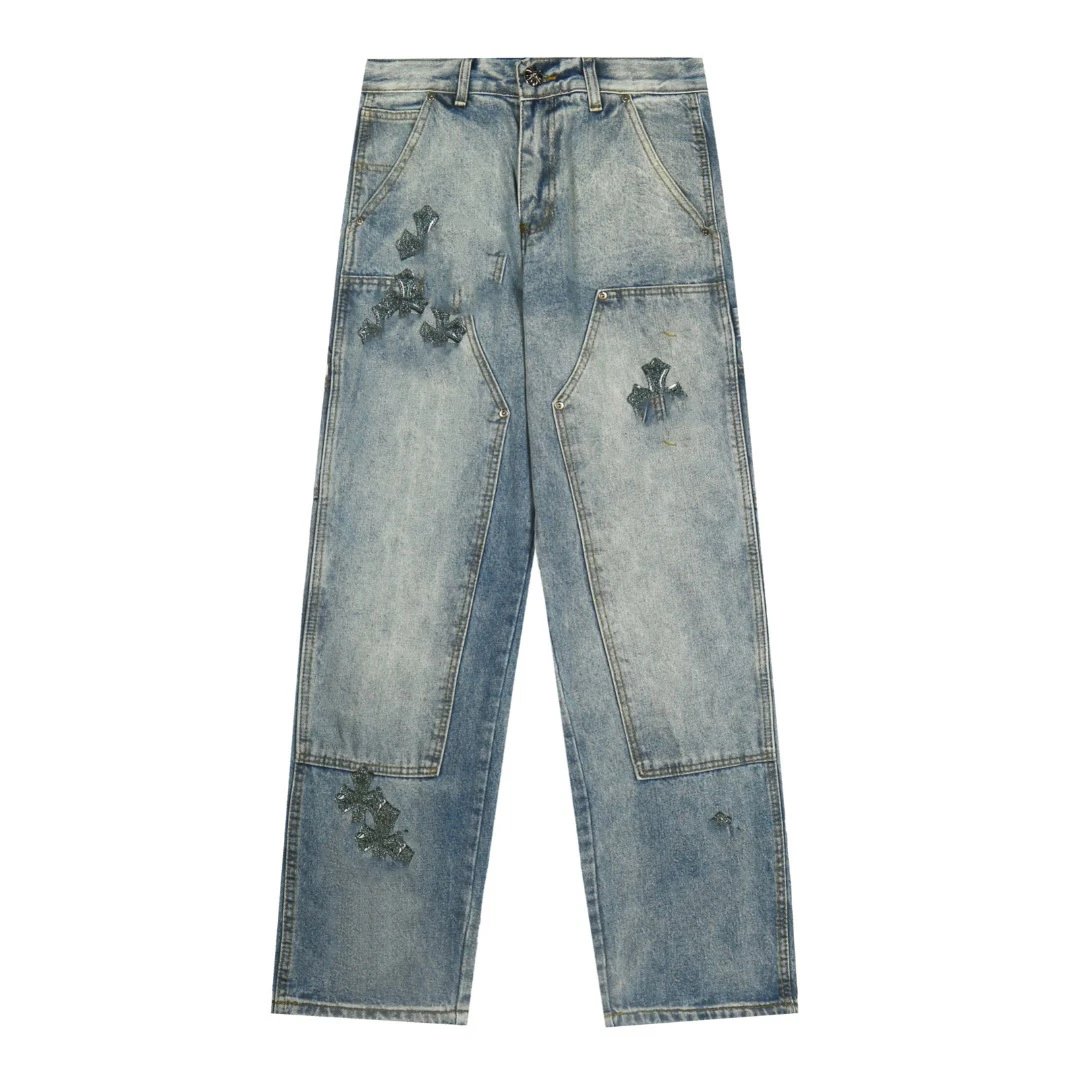 Trendy Broken Planet Embroidered Cross Straight Leg Jeans for Spring/Summer Street Fashion