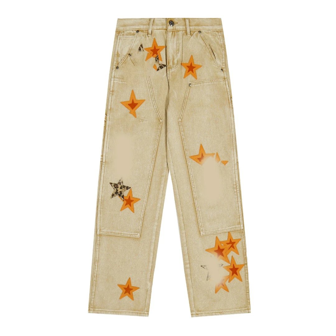 Trendy Broken Planet Embroidered Cross Straight Leg Jeans for Spring/Summer Street Fashion