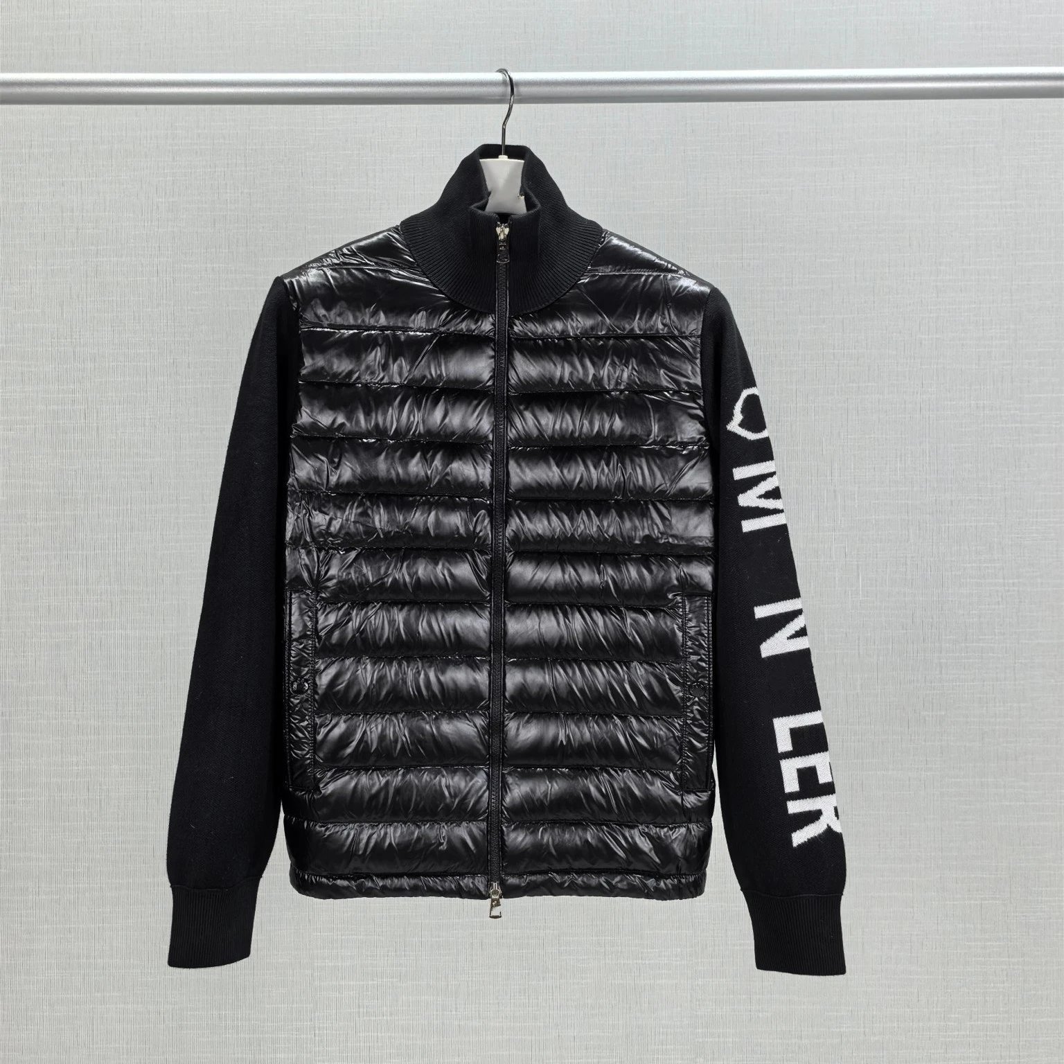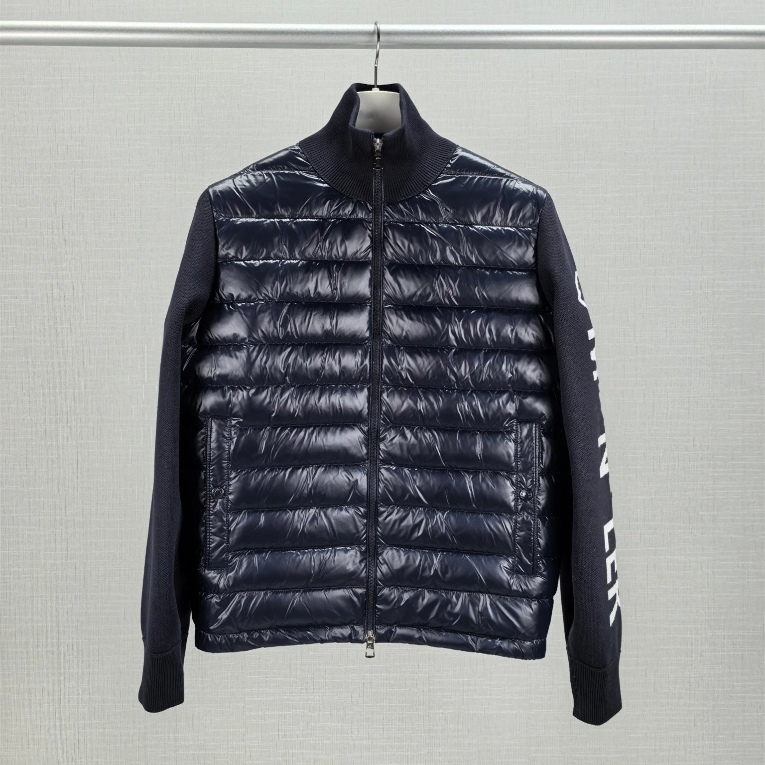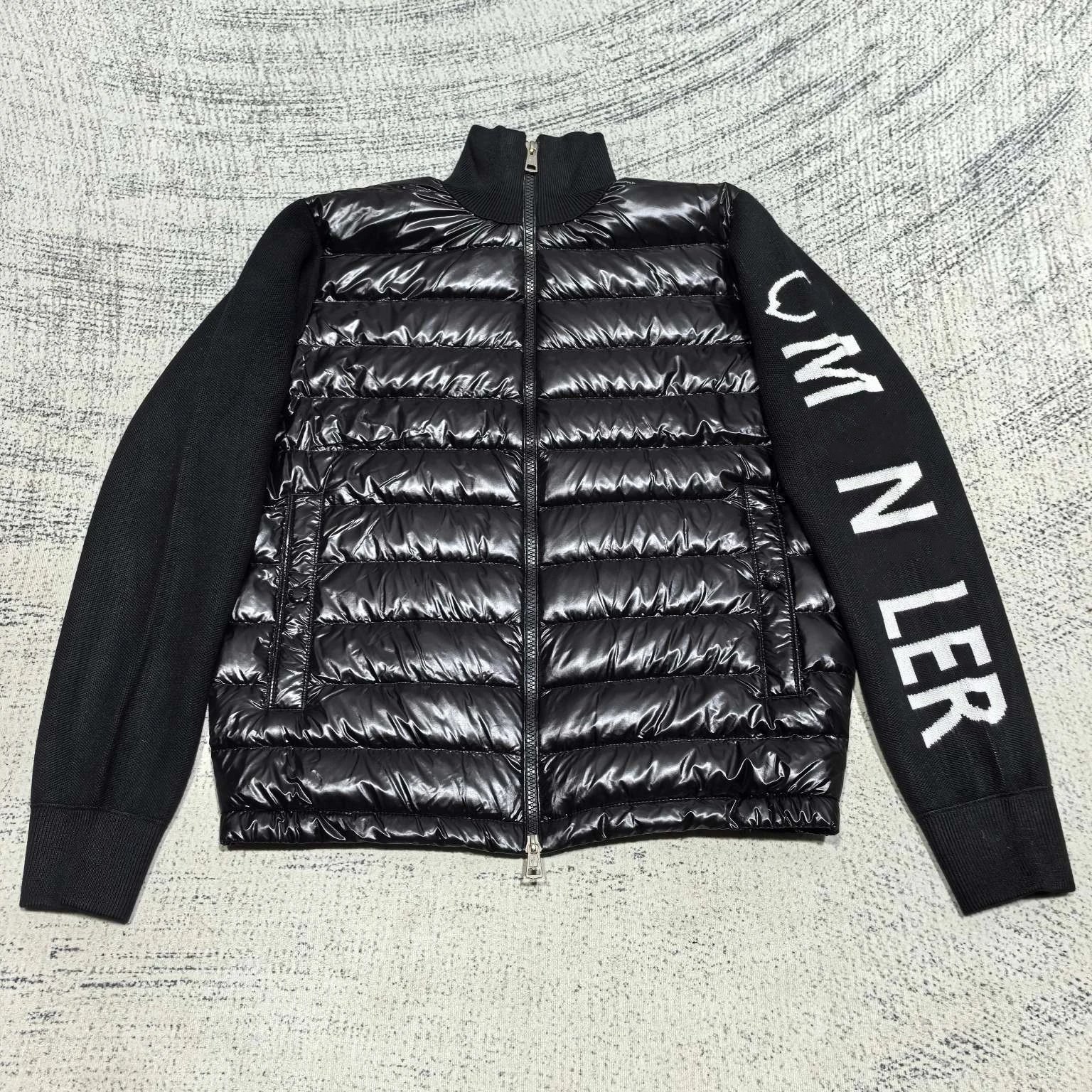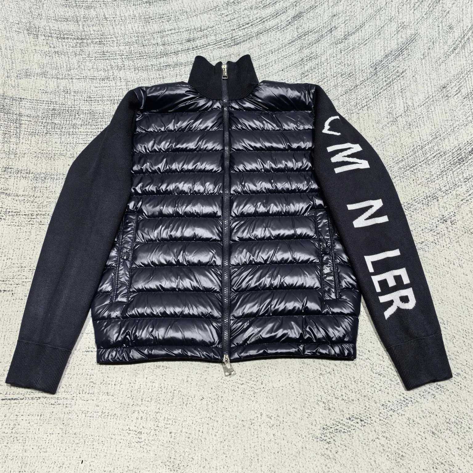 2025秋冬新款蒙家飞行员领针织拼接LOGO色织羽绒服外套男女