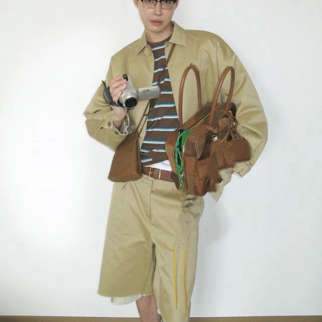 2025夏季新款MIU家百慕大及膝卡其色短裤男女五分裤