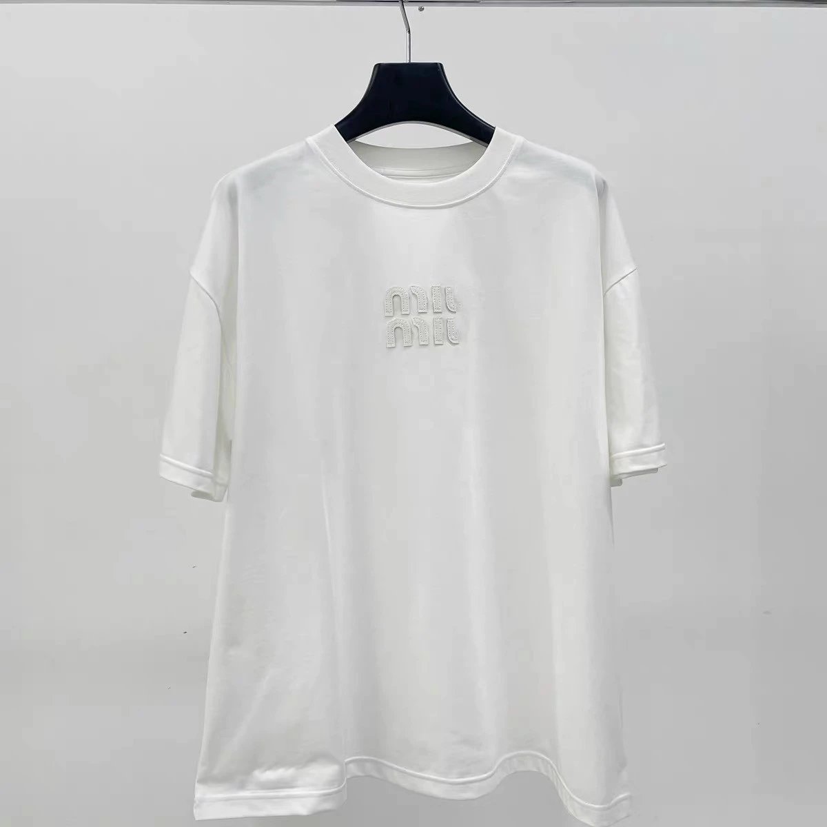 2025夏季新款MIU缪家网红新品贴布绣LOGO字母短袖T恤男女