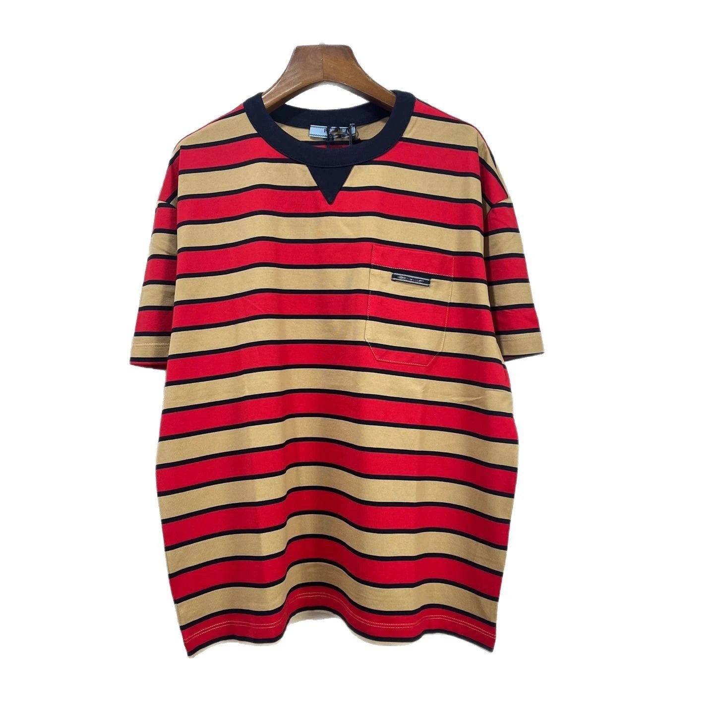 2025春季新款P家 徽标LOGO宽松版条纹T恤短袖上衣男女