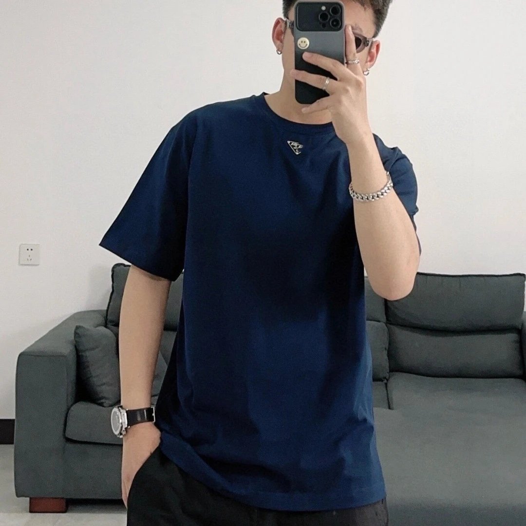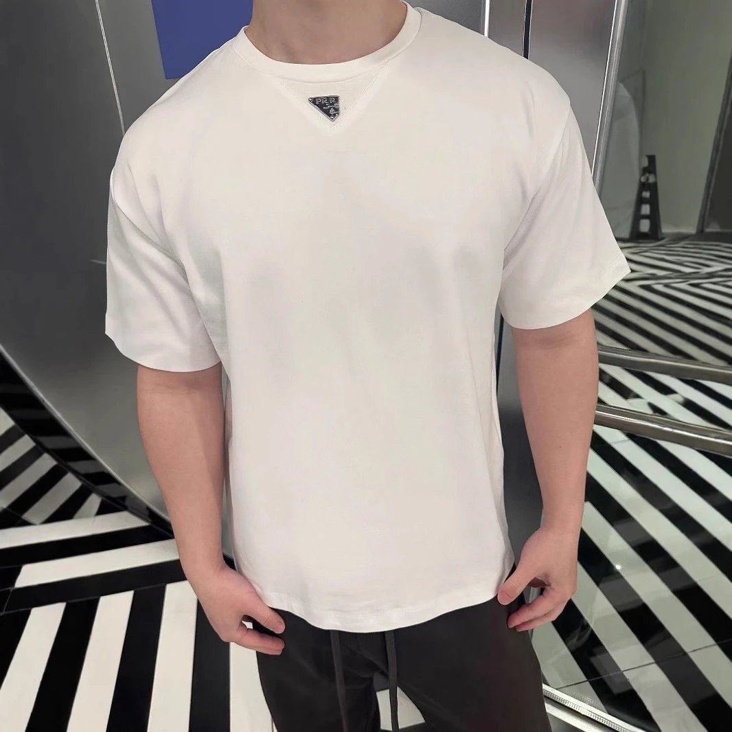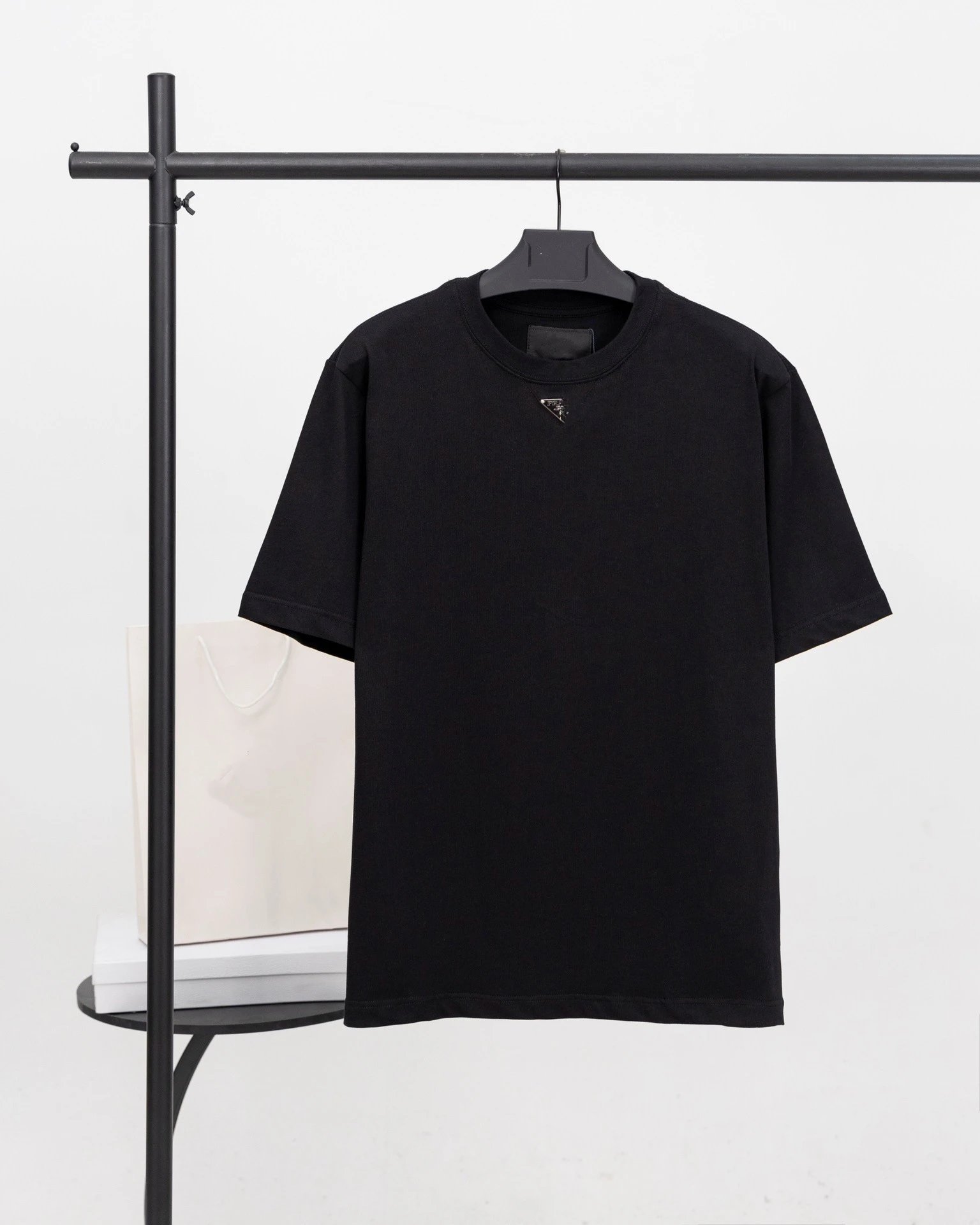 2025夏季新品P家金属三角铁标纯色短袖T恤打底衫