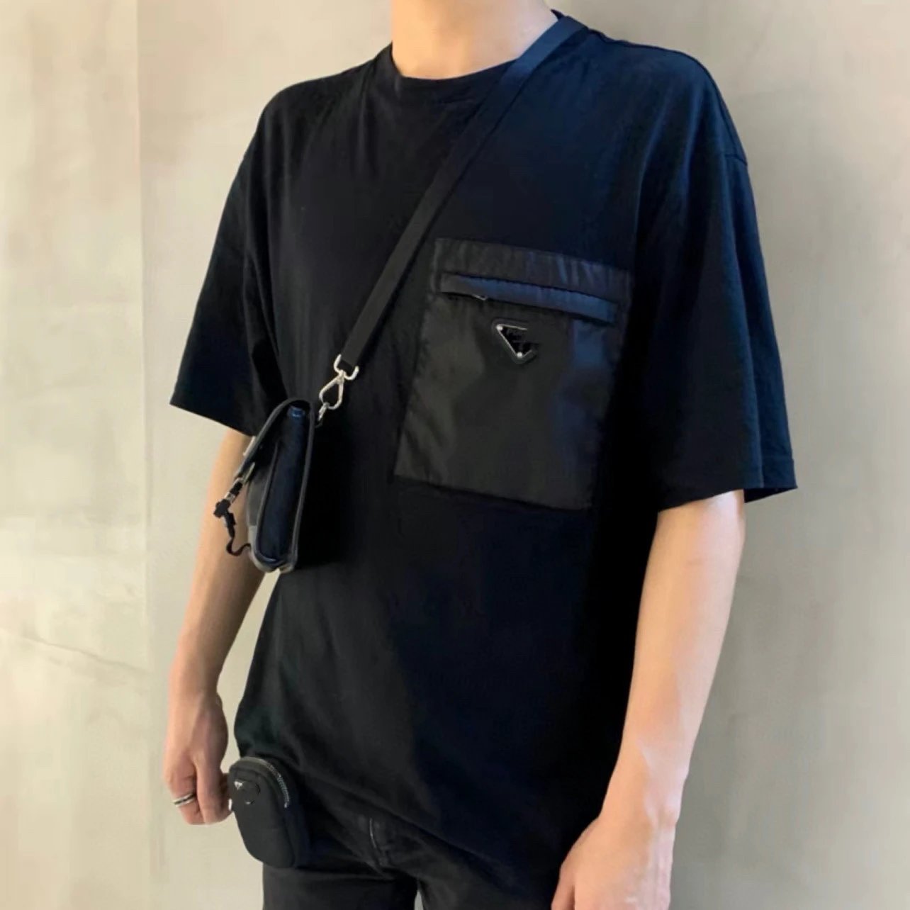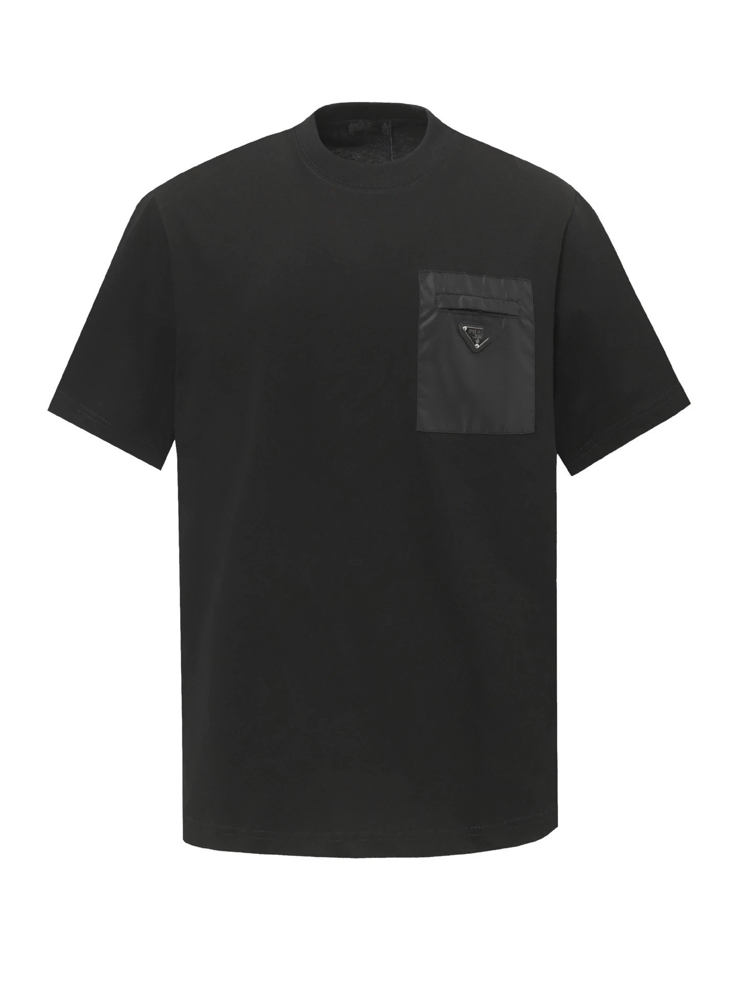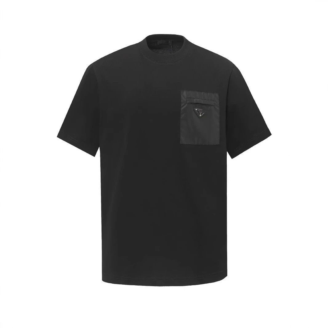 2025夏季新款P家胸前三角钢标口袋圆领短袖T恤男女