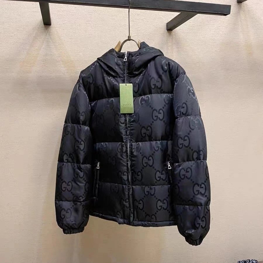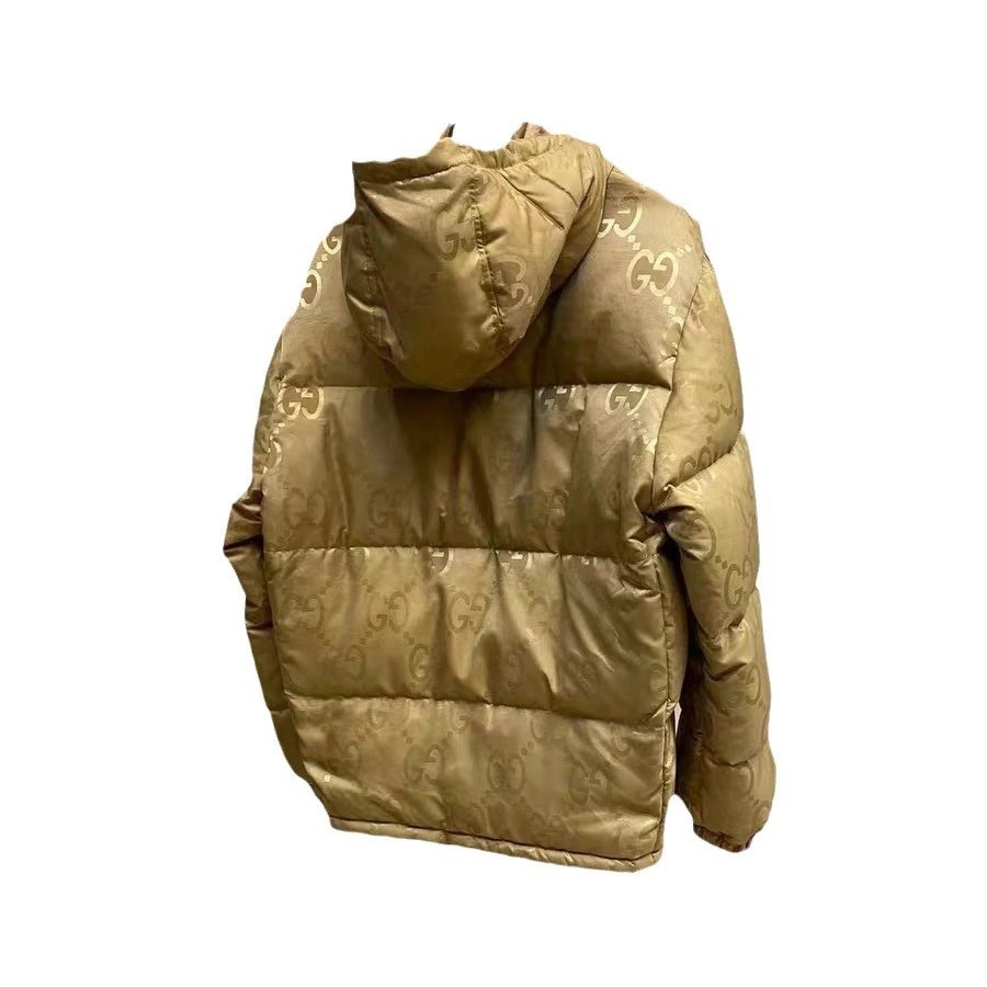 北美冬季23款潮牌满身暗纹提花连帽男棉服同款个性百搭保暖女棉袄