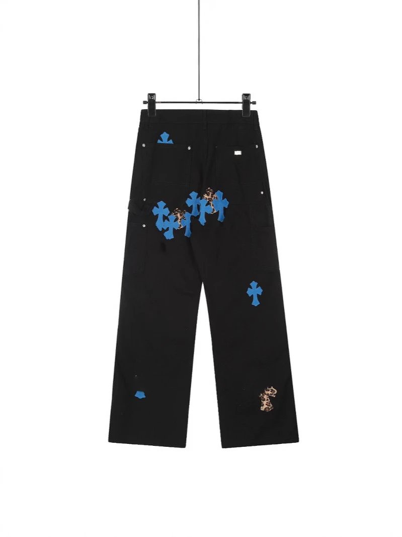 24SS高街潮牌CH亲友限定牛王大十字架卡哈特底板伐木裤牛仔阔腿裤