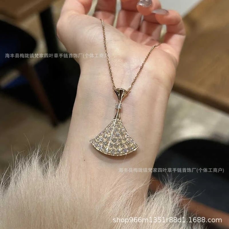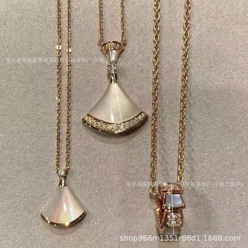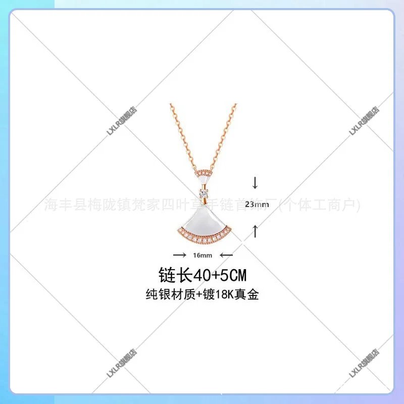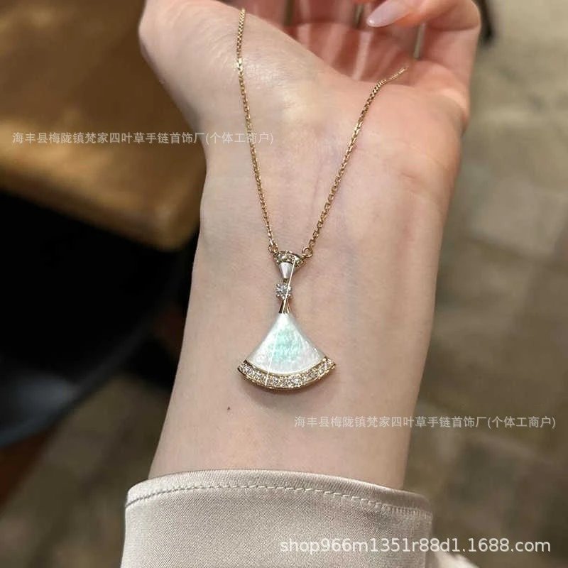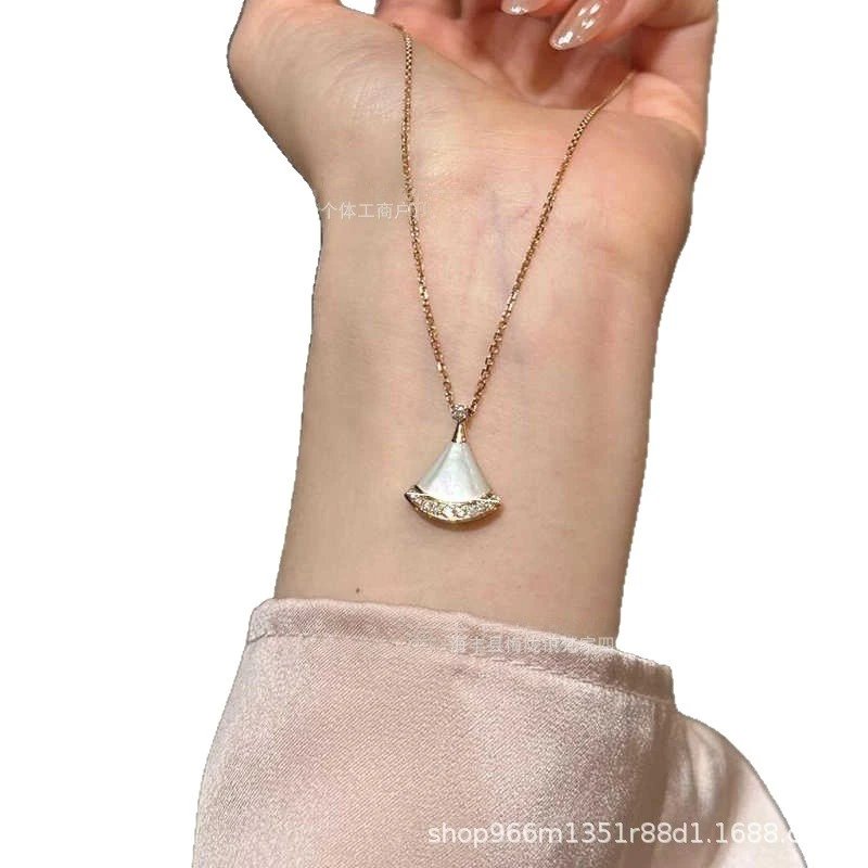 宝家25新款白贝母小裙子项链女镀18k金镶钻扇形锁骨链生日礼物ins
