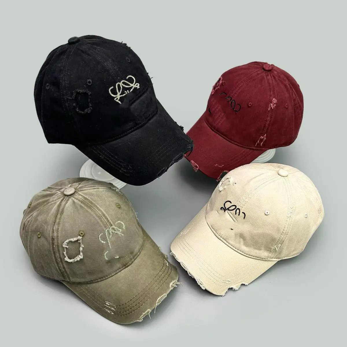 25新款罗家缺口帽檐破洞棒球帽子春夏新款韩国休闲运动鸭舌帽