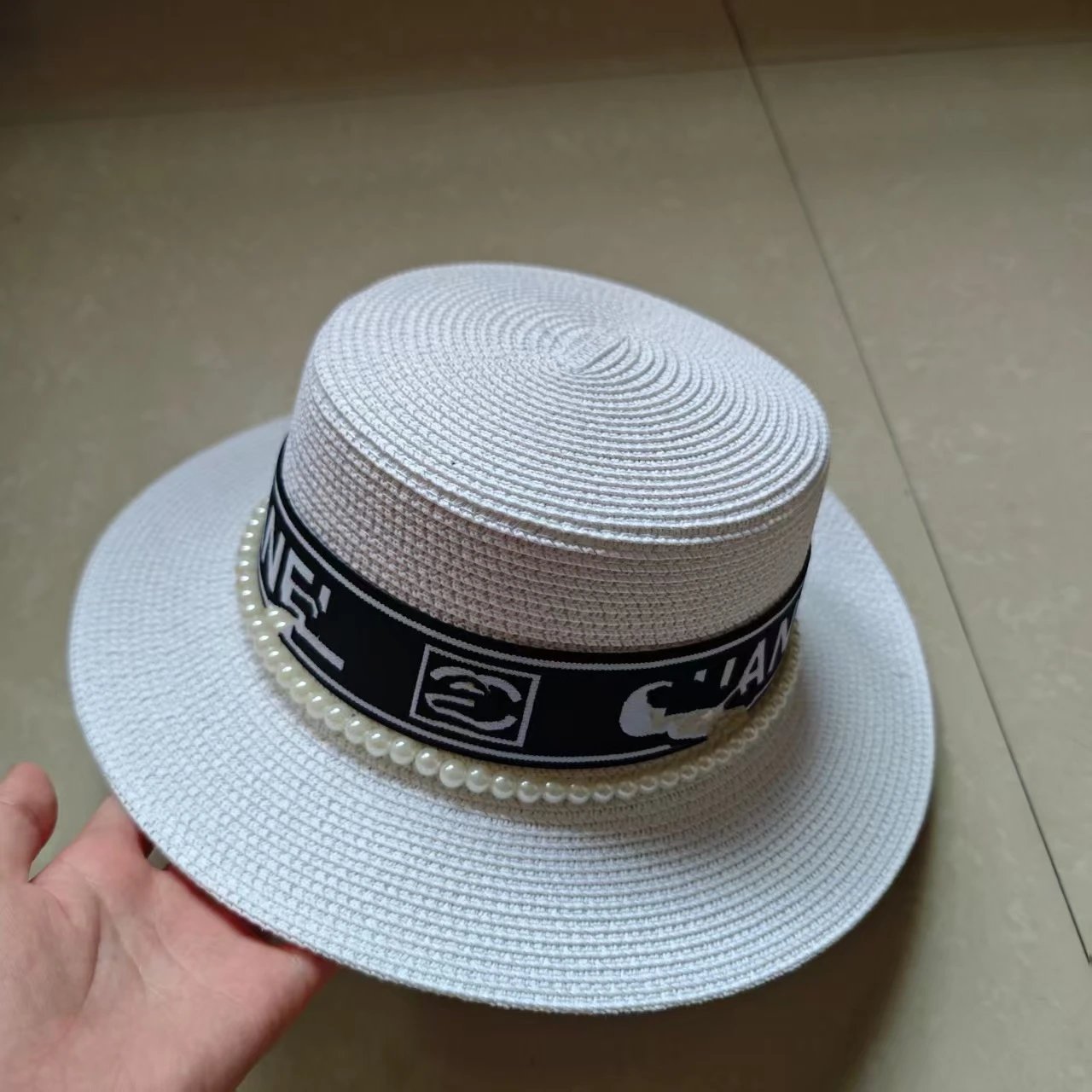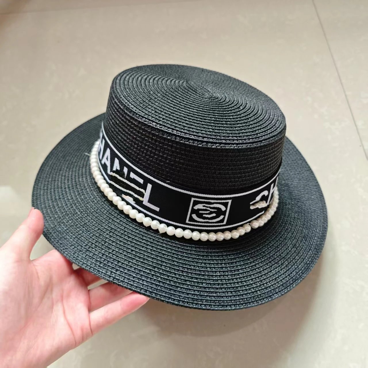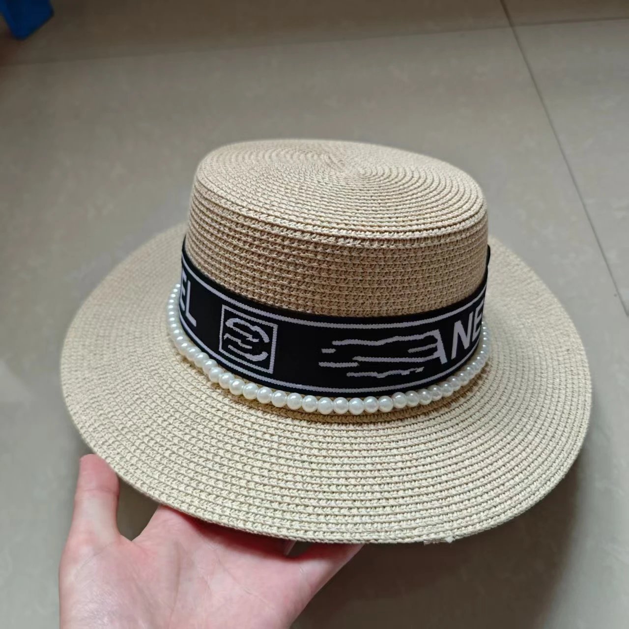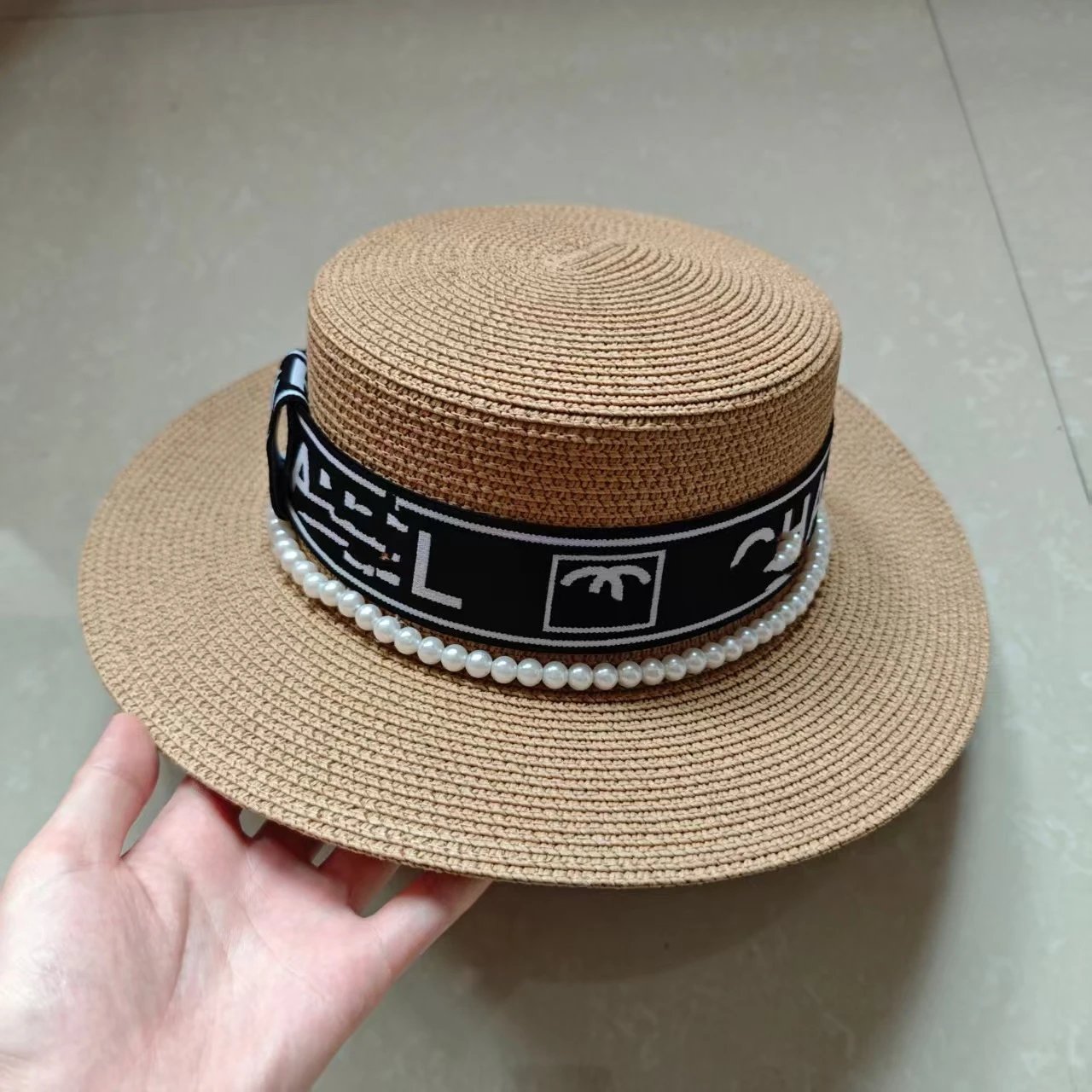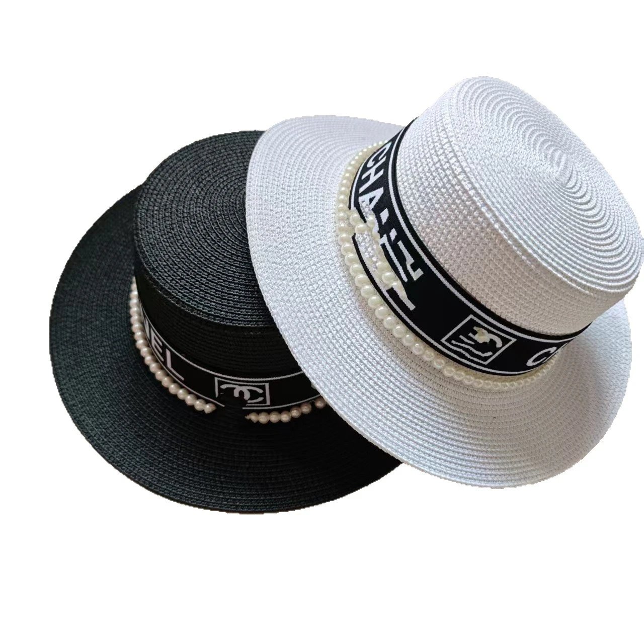 25新款正确字母C家草帽女太阳帽字母草编时尚盆帽夏季遮阳防晒帽