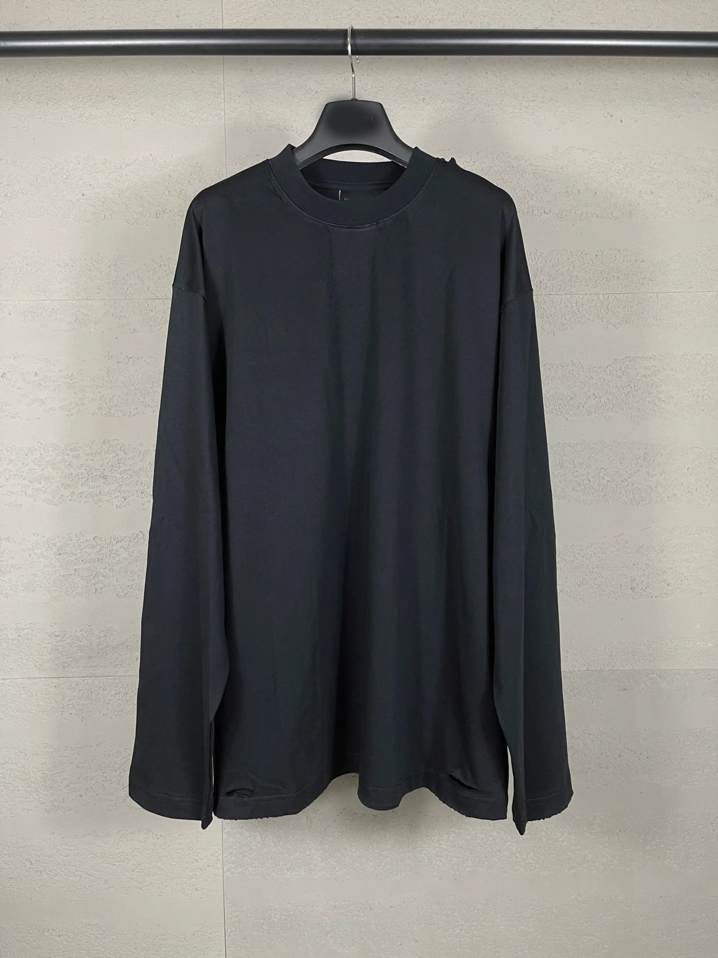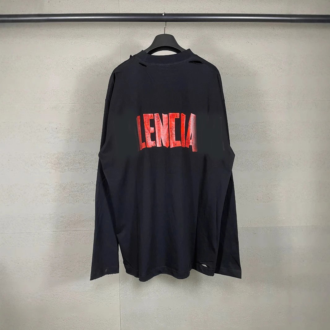 25SS巴黎美纹纸胶带拉浆印花成衣水洗磨烂做旧长袖T恤男女款情侣