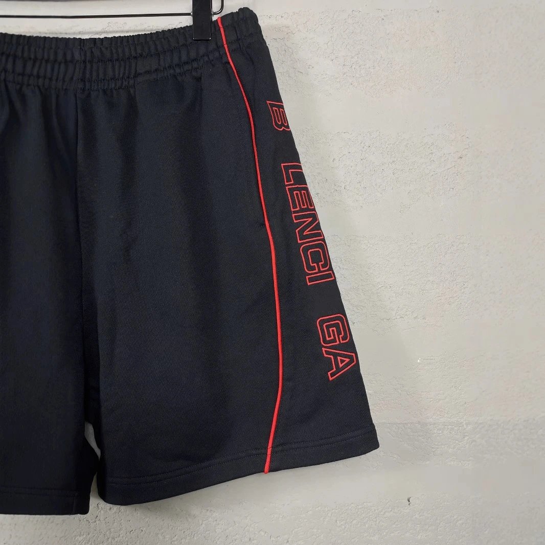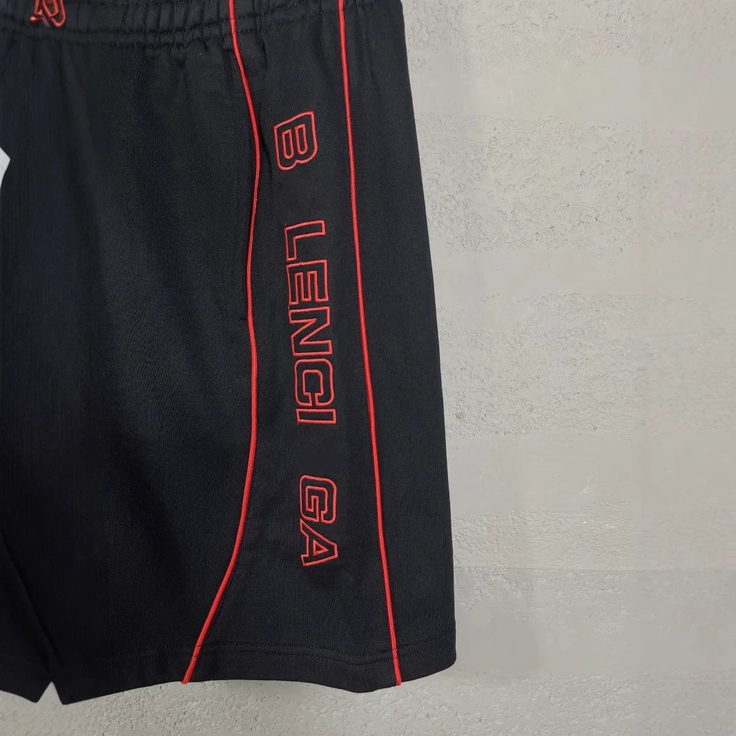 25ss夏季新款巴黎B家左右绣花侧骨拼接夹绳短裤卫裤男女