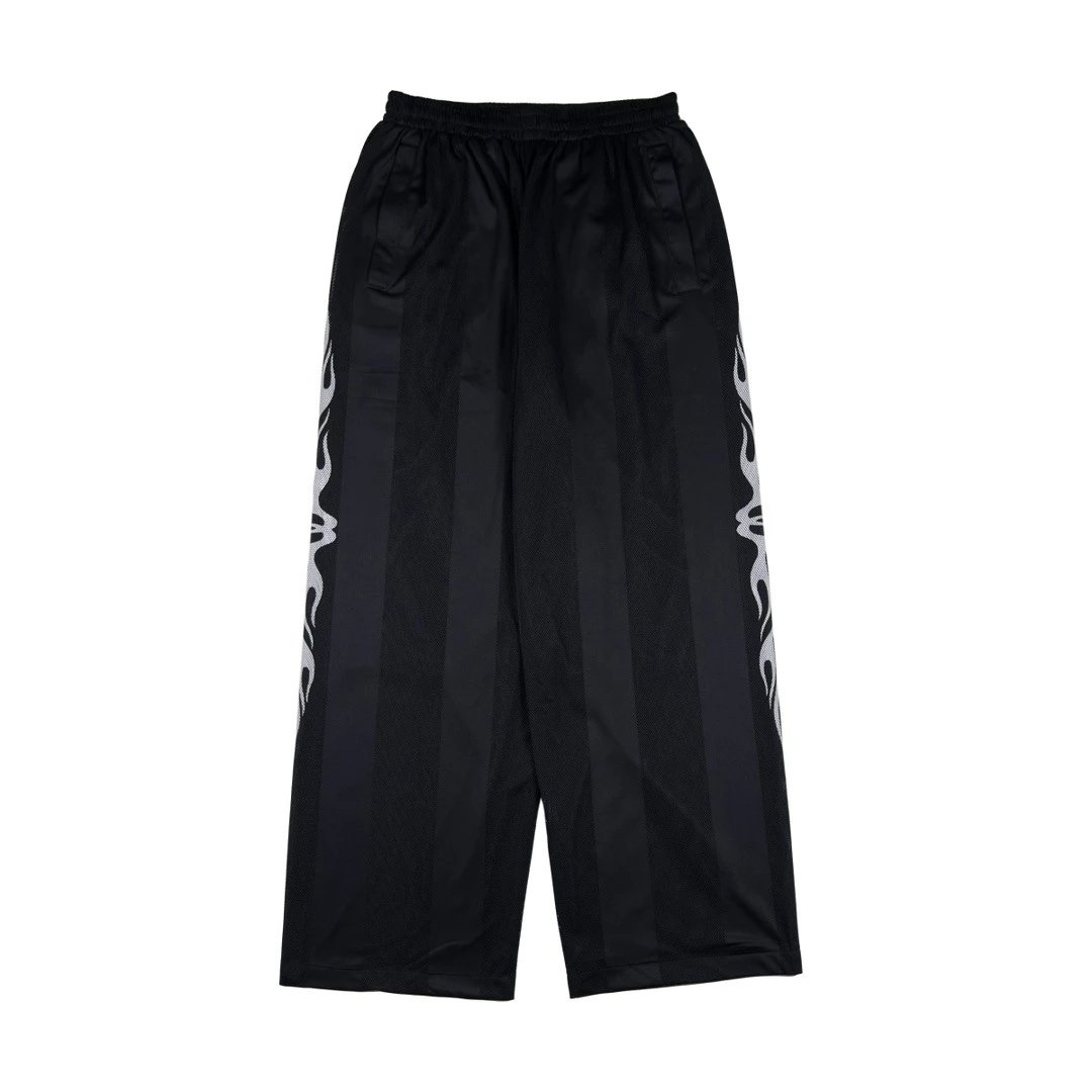 25ss夏季新款巴黎B家火焰印花黑色宽松长裤网眼球裤男女