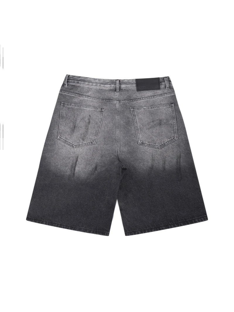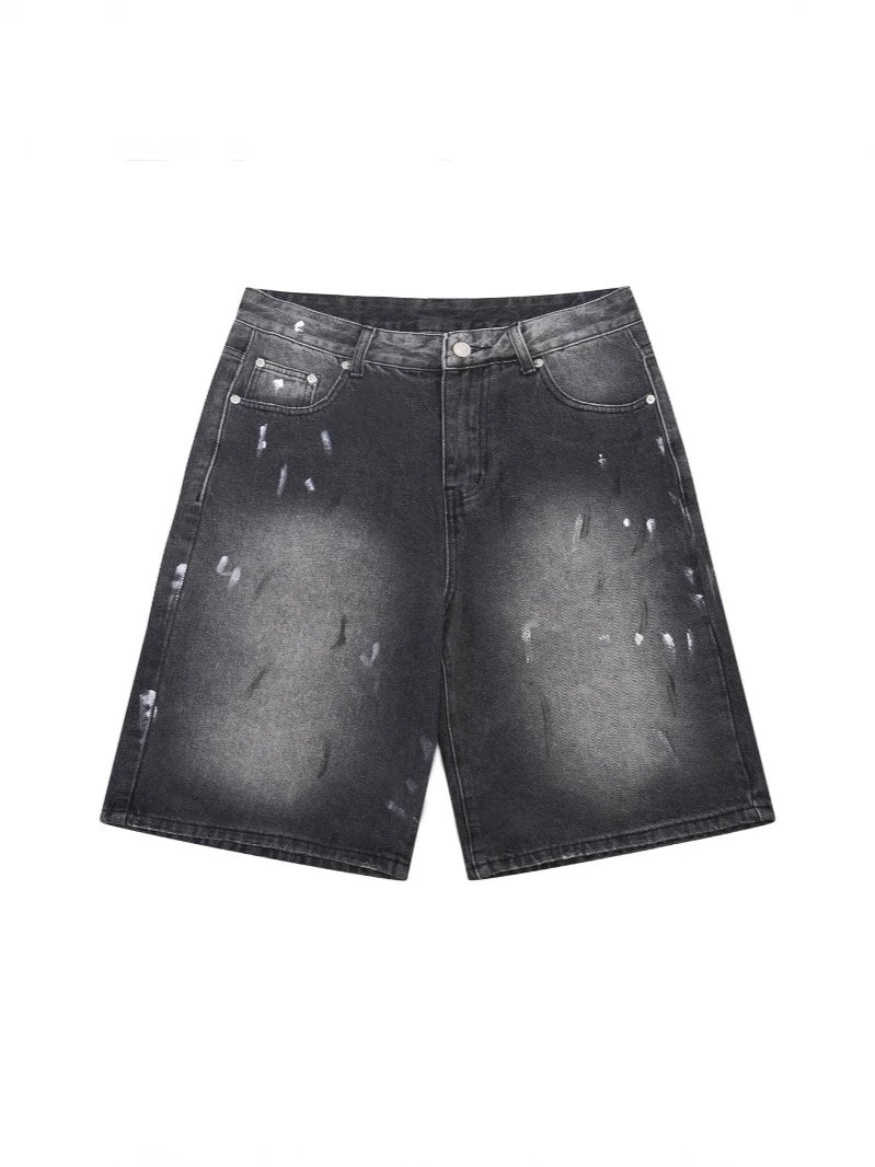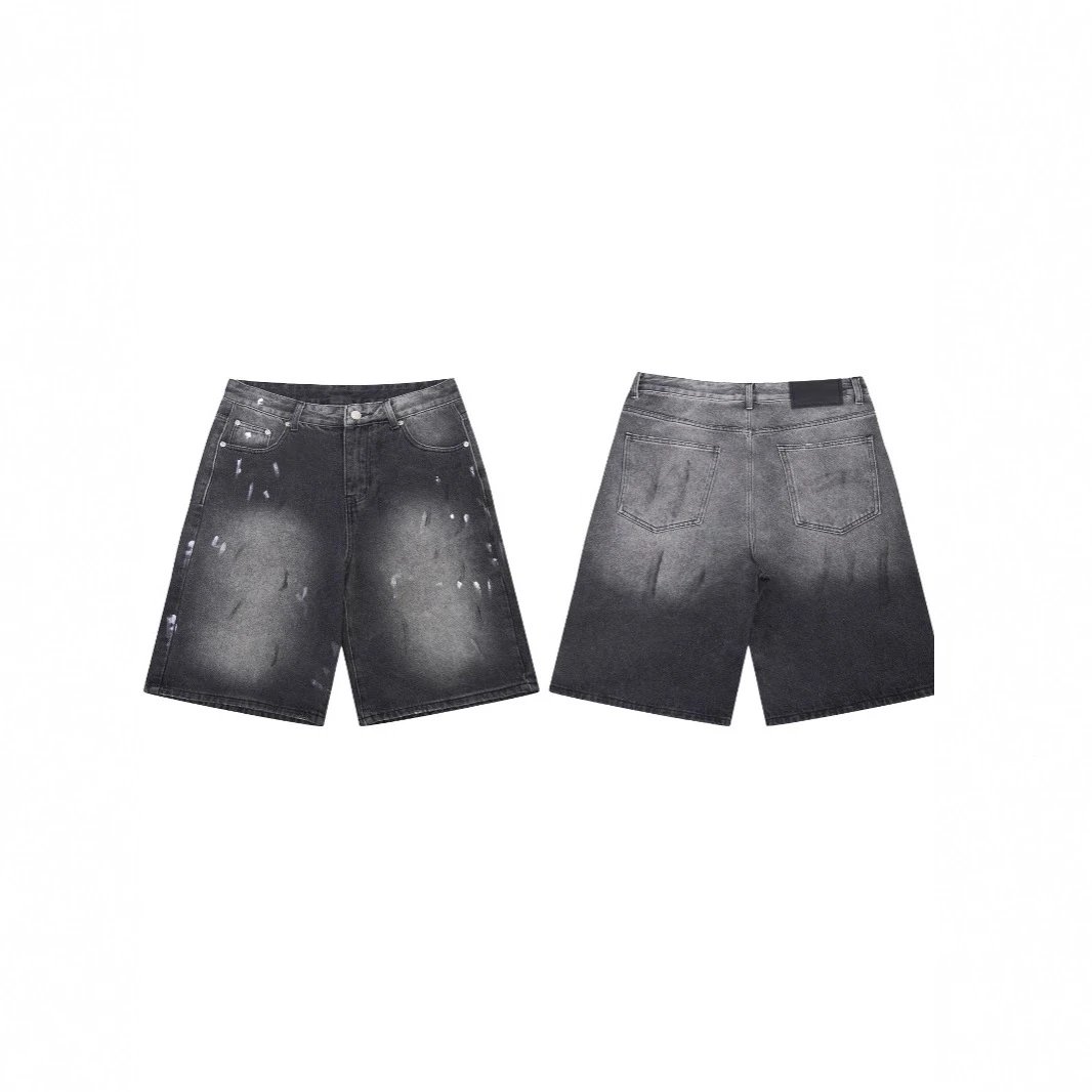 25ss脏脏风acne六分裤短裤手绘泼墨泼漆复古做旧牛仔裤美式休闲宽