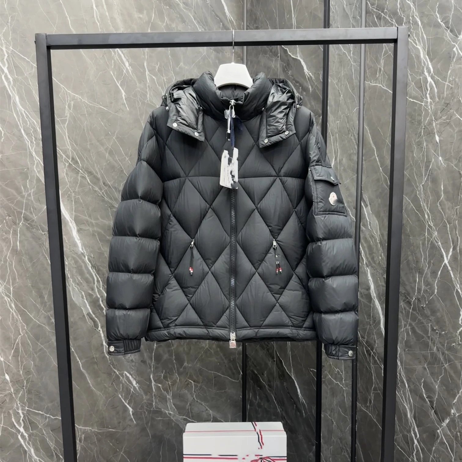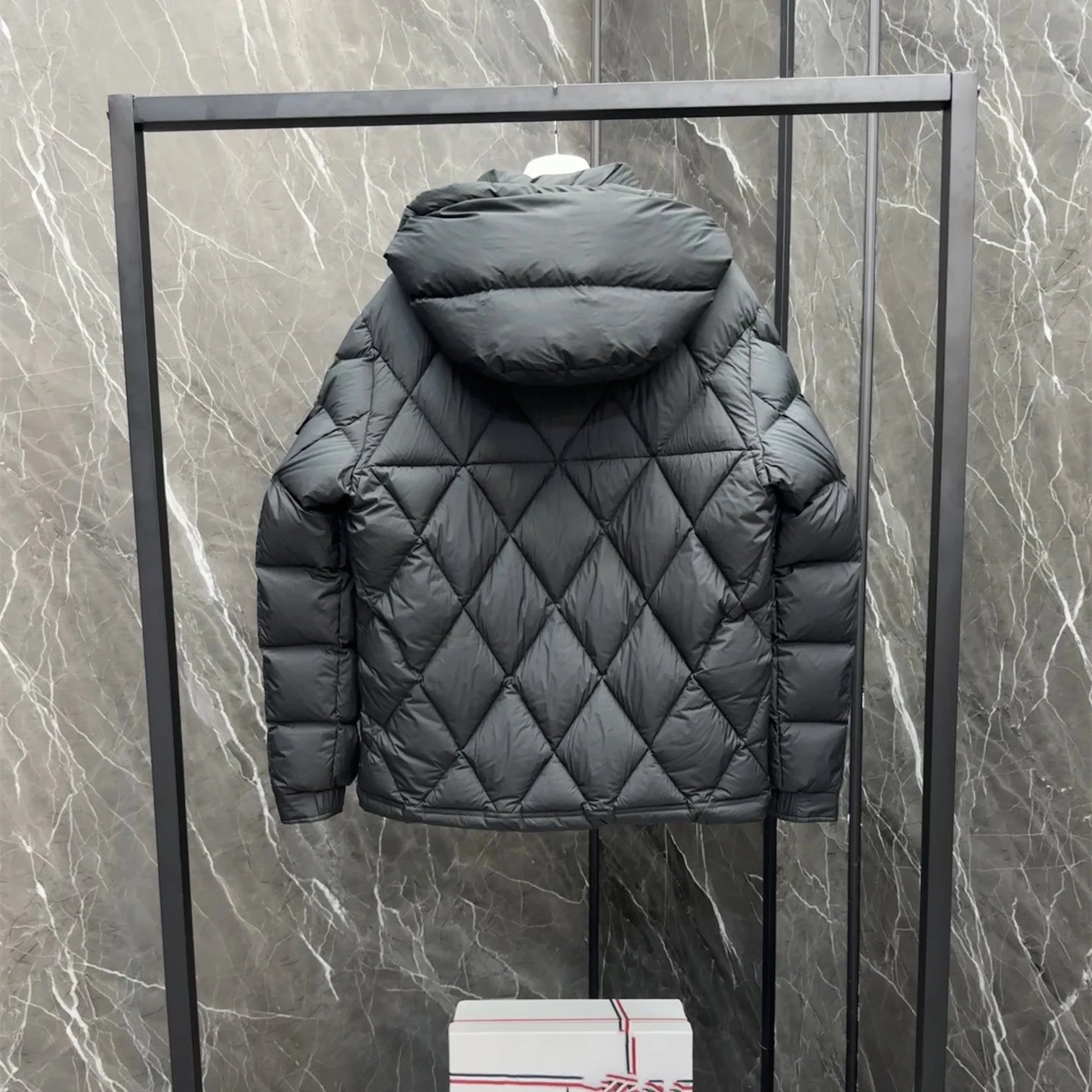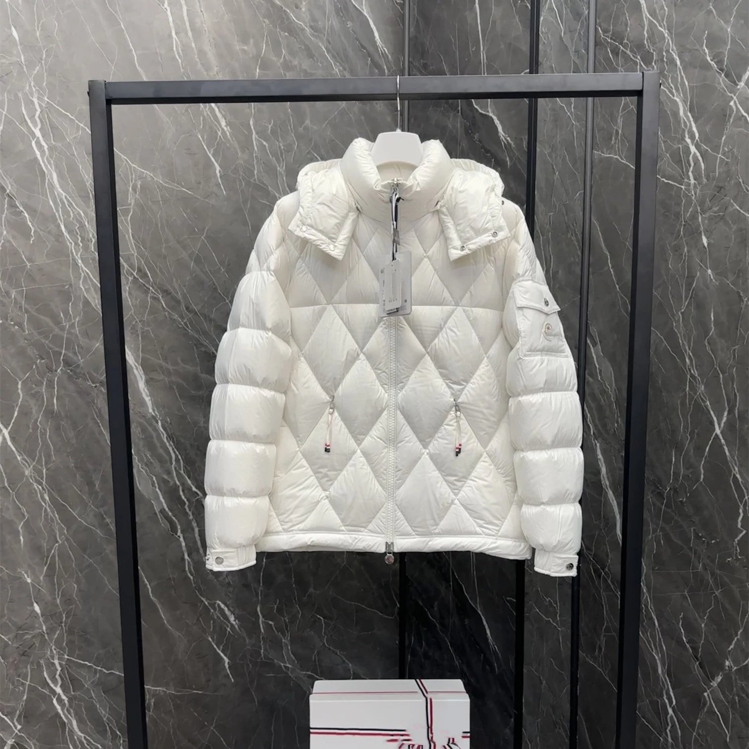 蒙家短款男士菱形格90白鸭绒羽绒服夹克外套男女