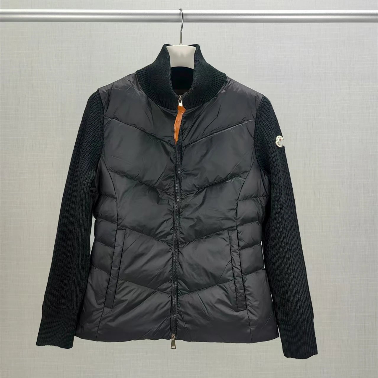 蒙家收腰针织前后拼女士开衫夹克90白鸭绒羽绒服外套女装