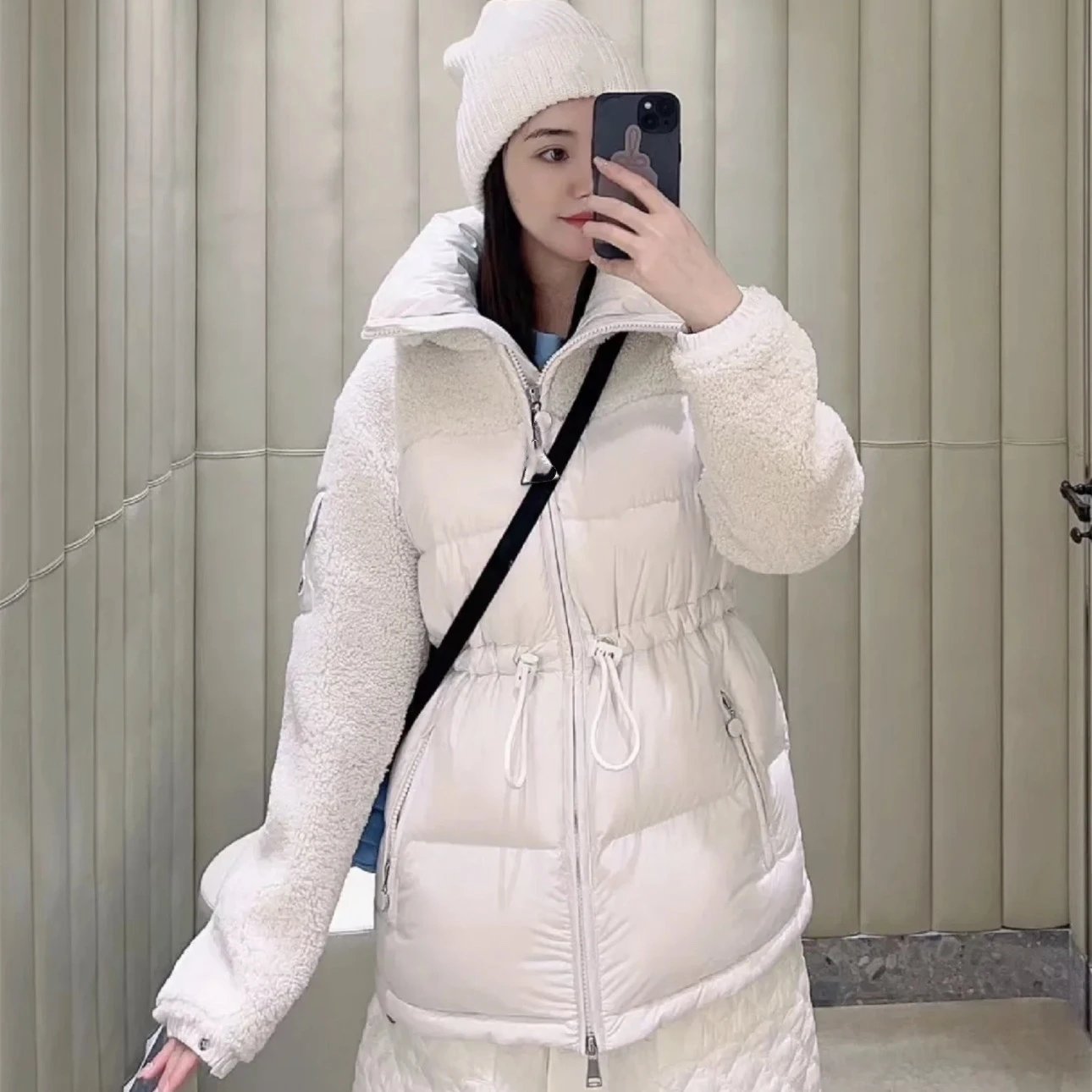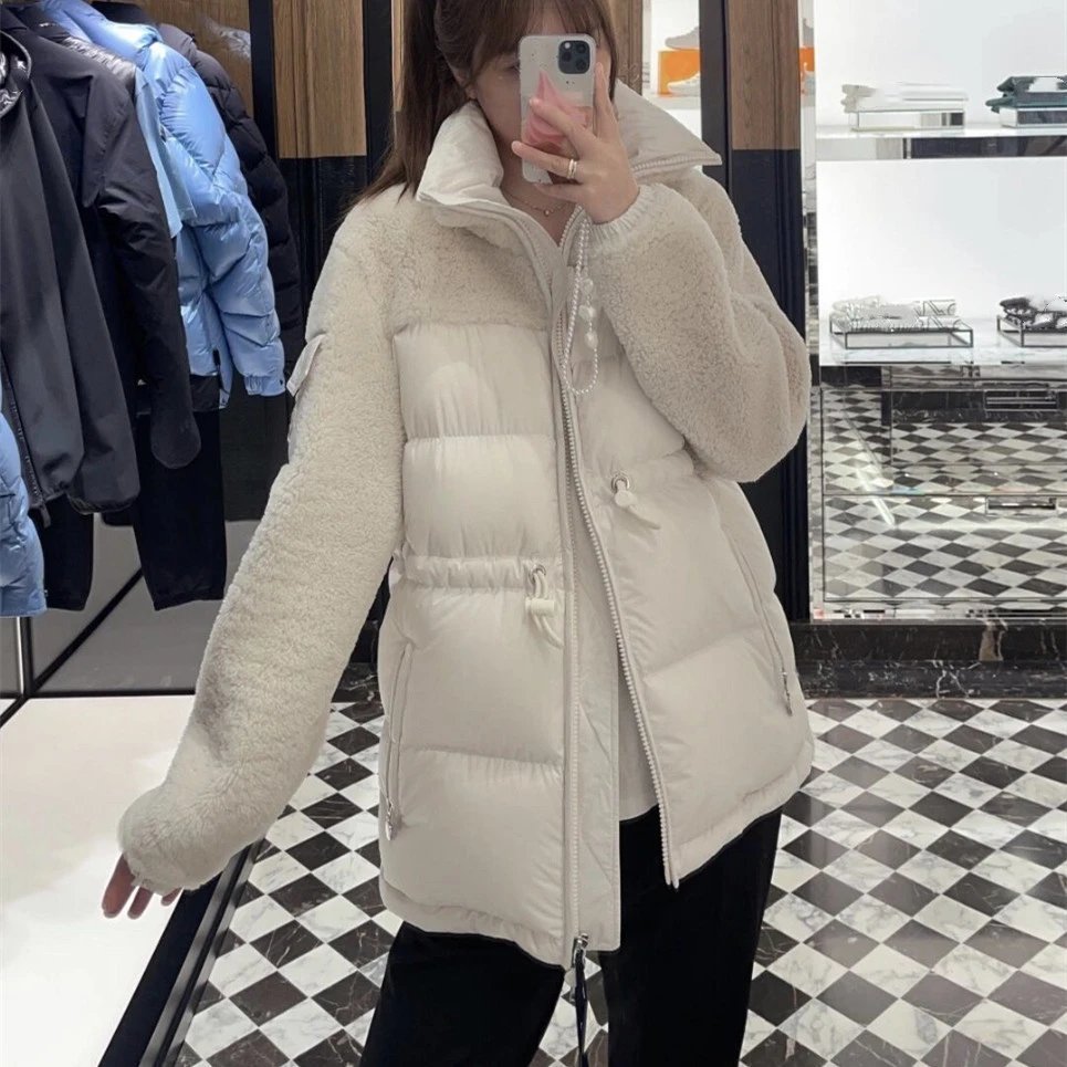 秋冬新款蒙家羊毛毛绒拼接收腰显瘦90白鸭绒羽绒服女