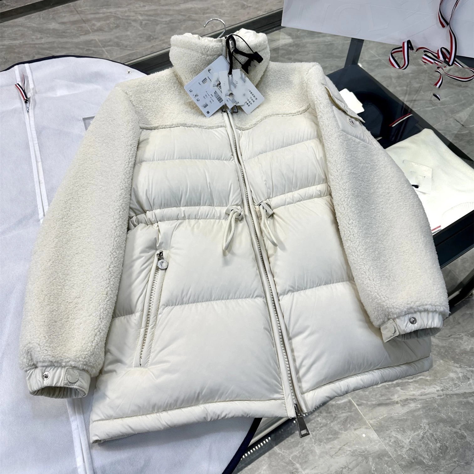25秋冬新款M家针织拼接轻薄白色羽绒服立领短款时尚夹克开衫外套