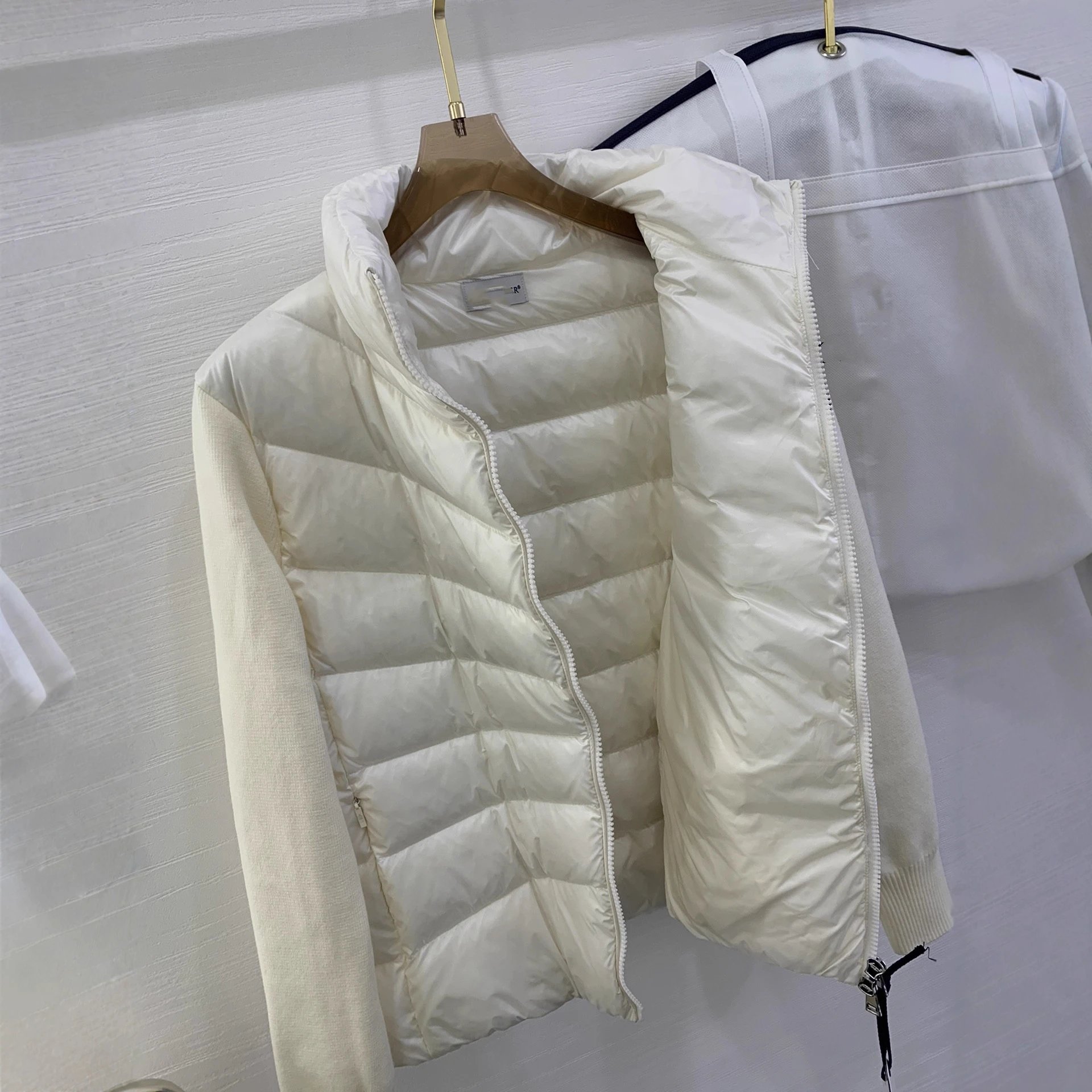 25秋冬新款M家针织拼接轻薄白色羽绒服立领短款时尚夹克开衫外套