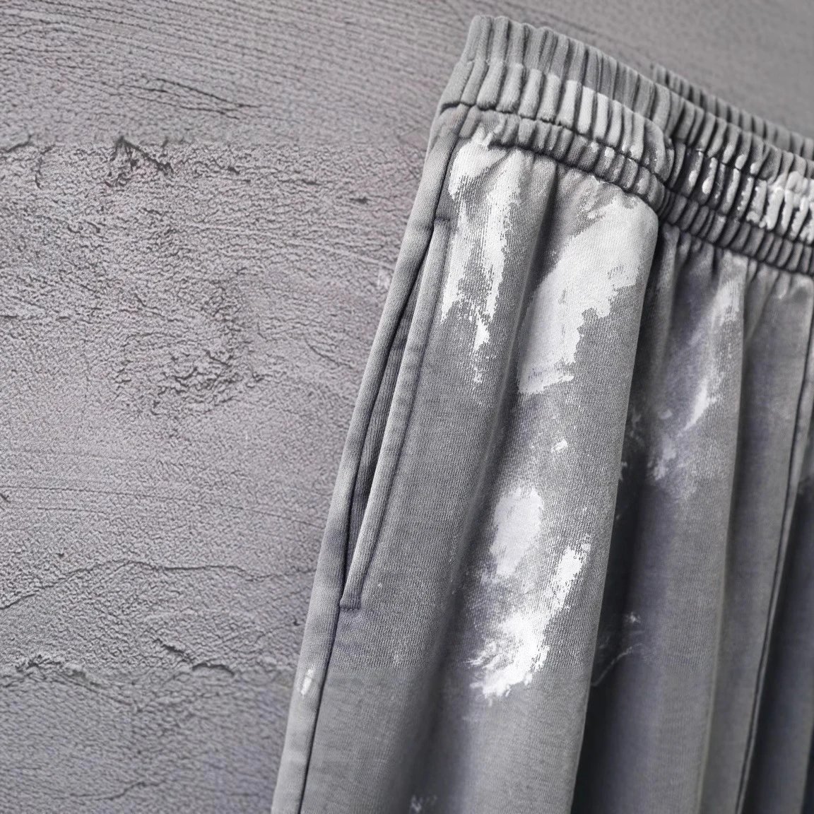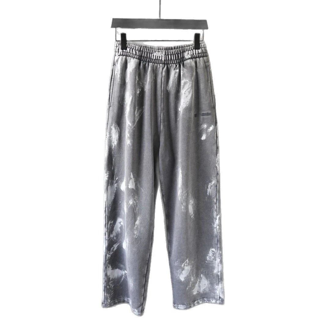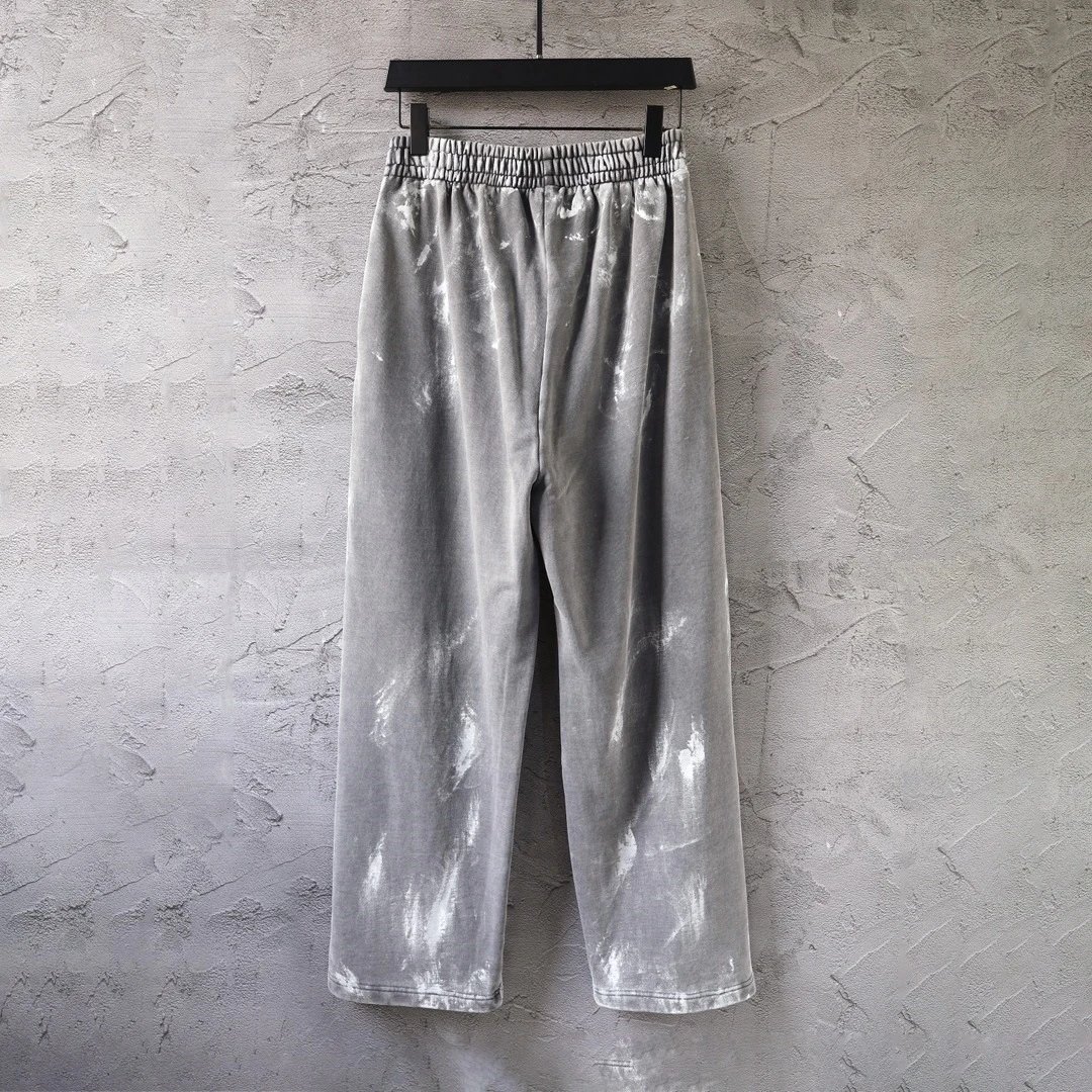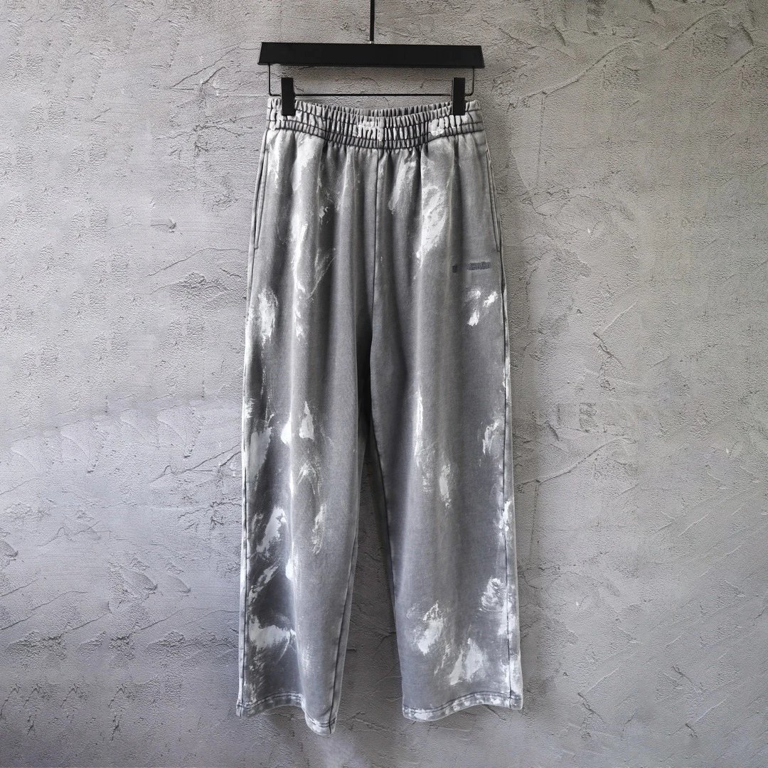 早春新款巴黎B家涂鸦泥染油漆做旧重工水洗 字母刺绣卫裤运动裤