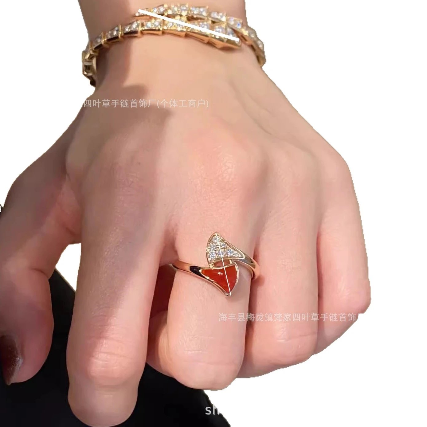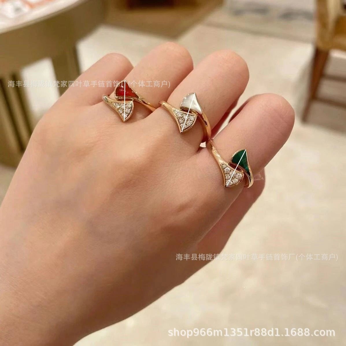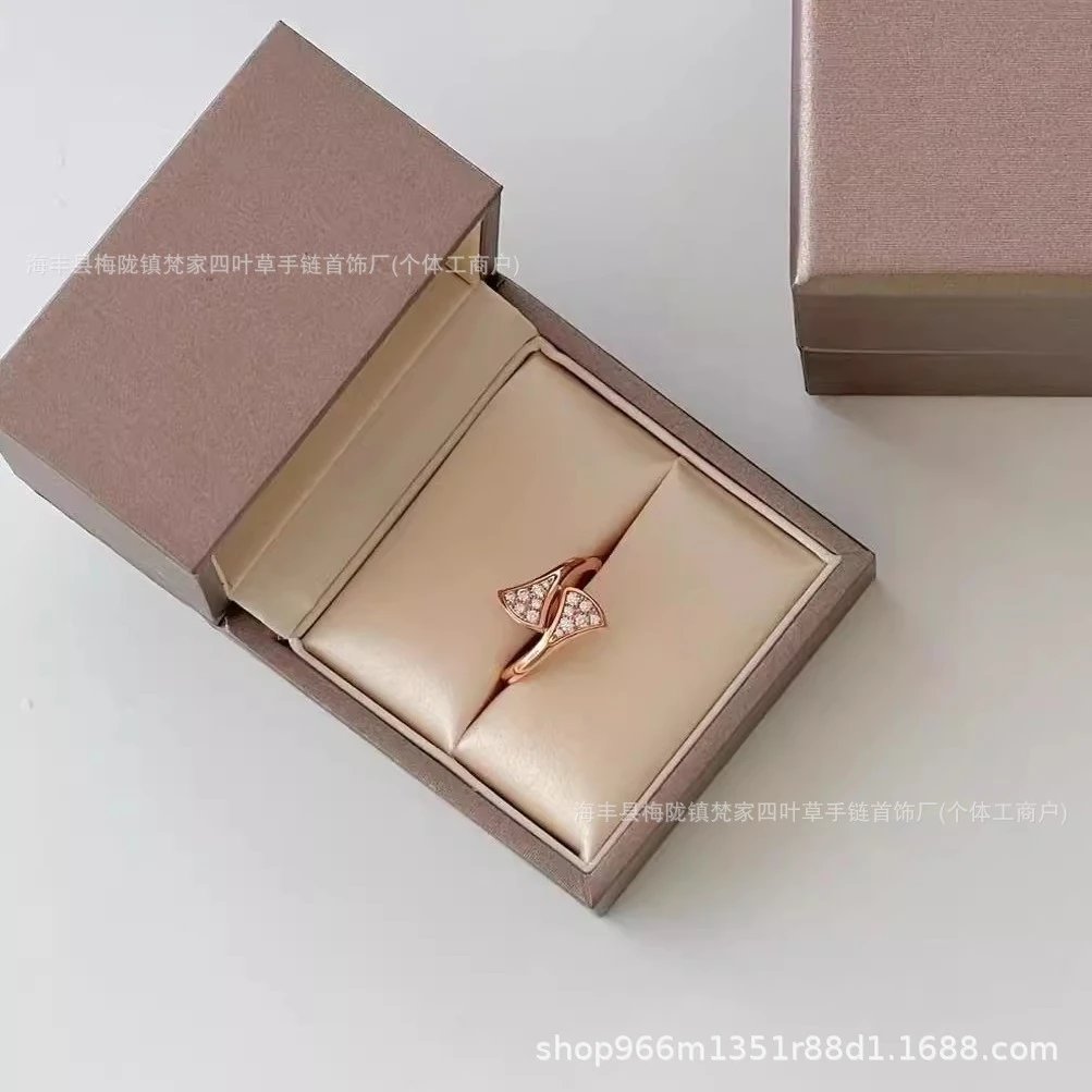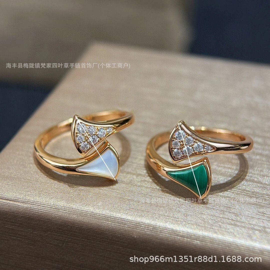 v金宝家蛇骨戒指女白贝母设计18K玫瑰金高级感镶钻轻奢