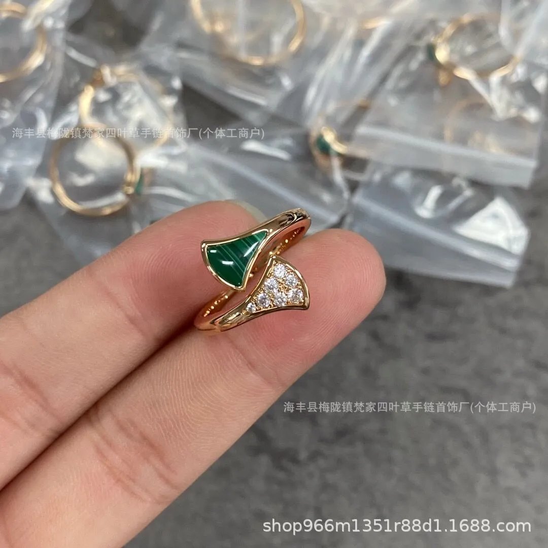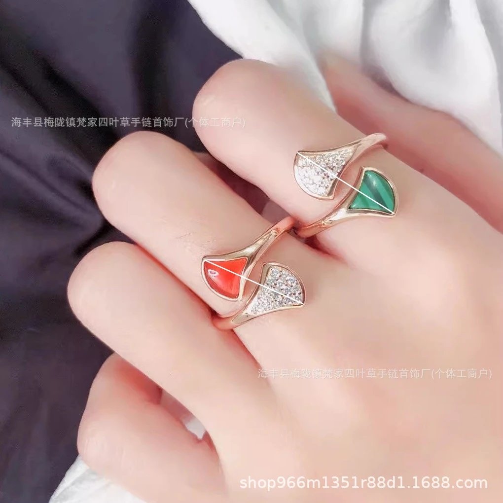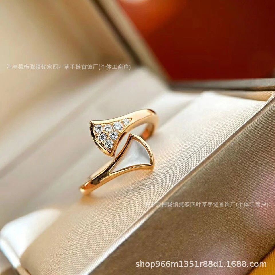 B家高版镀18k玫瑰金小扇子戒指白贝母指环小红裙扇形对戒轻奢高级