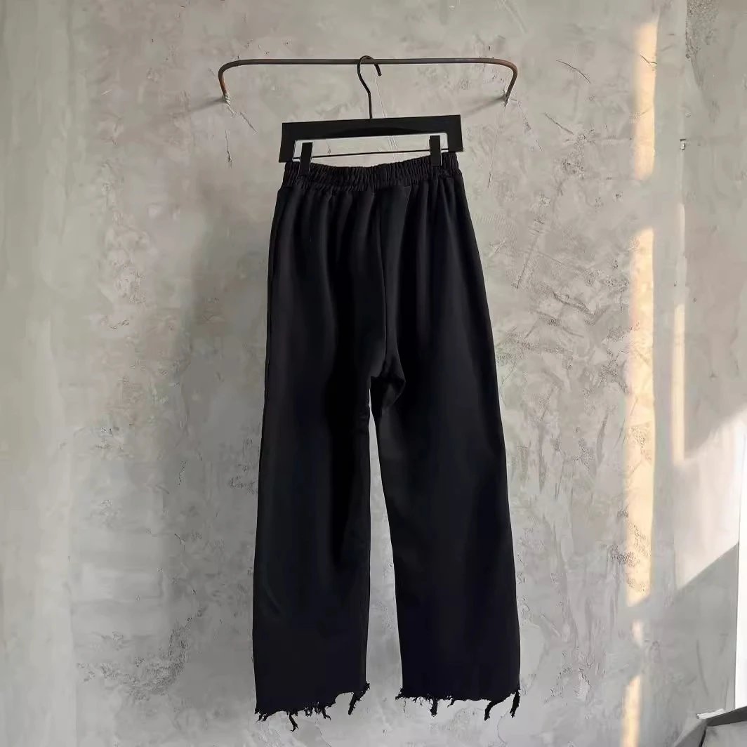 巴黎B家做旧磨破水洗做旧男女宽松直筒阔腿裤长裤