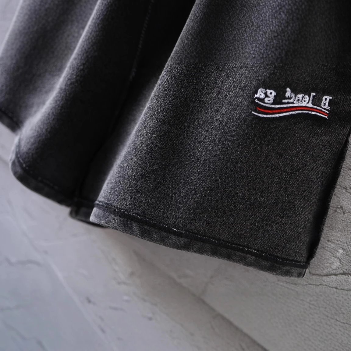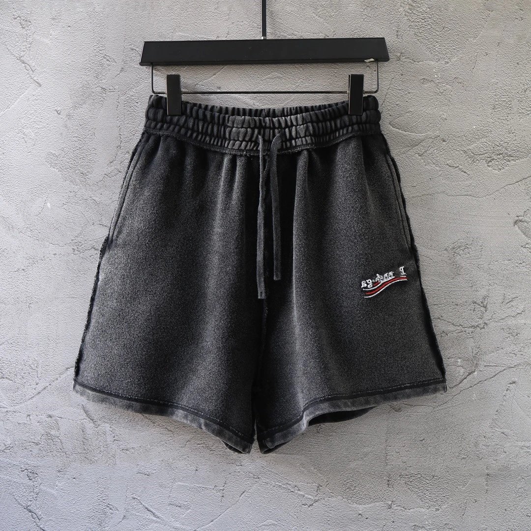 巴黎B家反车反面反穿经典可乐刺绣洗水做旧短裤卫裤运动裤
