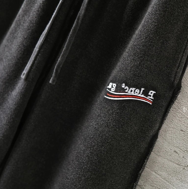巴黎B家反车反面反穿经典可乐刺绣洗水做旧长裤卫裤运动裤