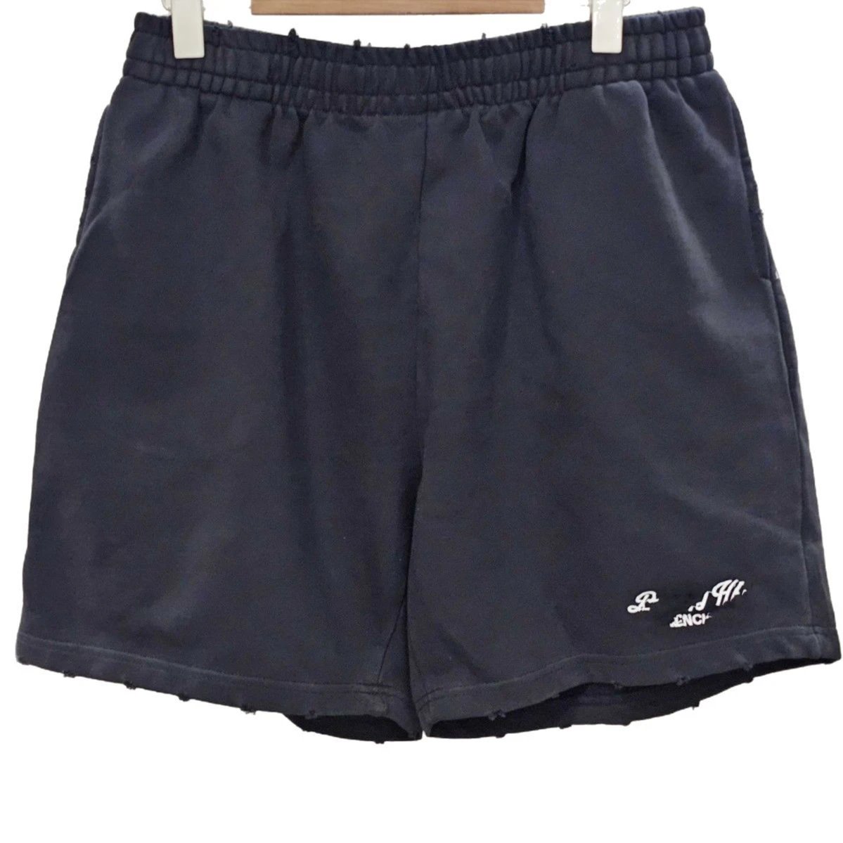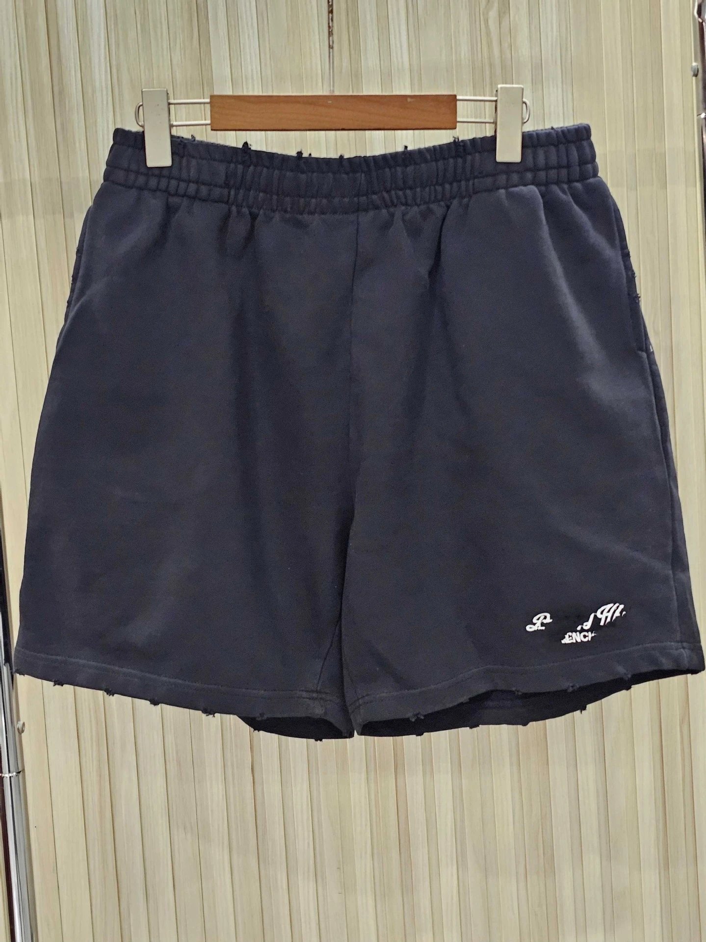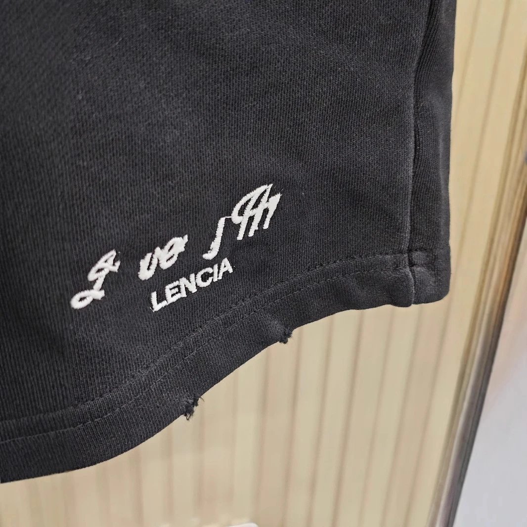 春夏新款巴黎B家重工洗水做旧炒盐效果小标刺绣运动短裤球裤卫裤