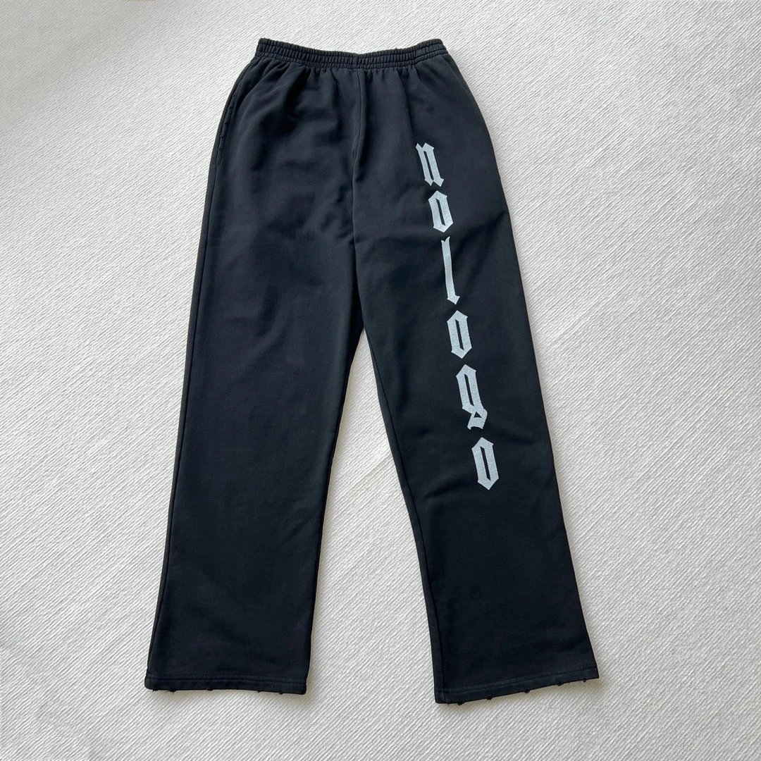 巴黎B家裂痕撕裂字母印花男女休闲运动束脚裤卫裤
