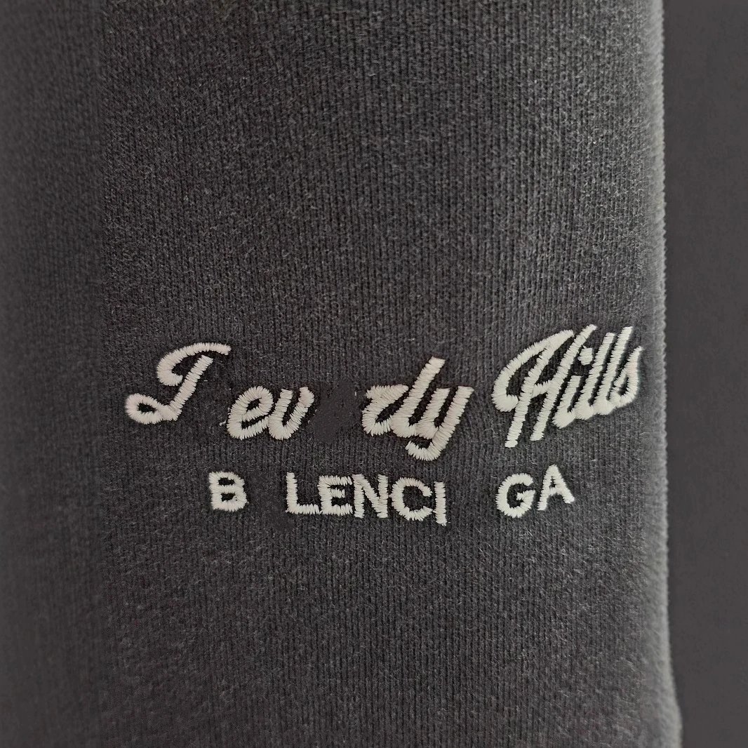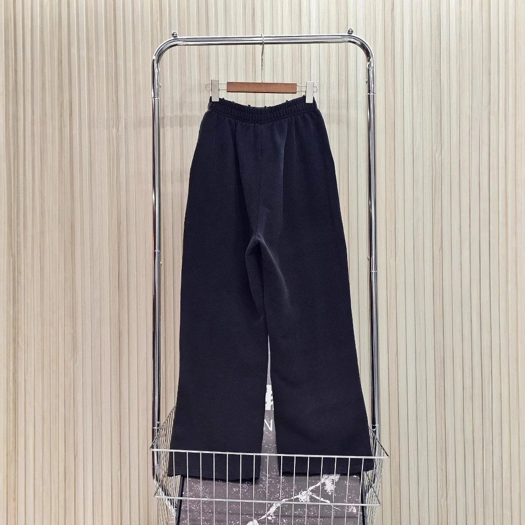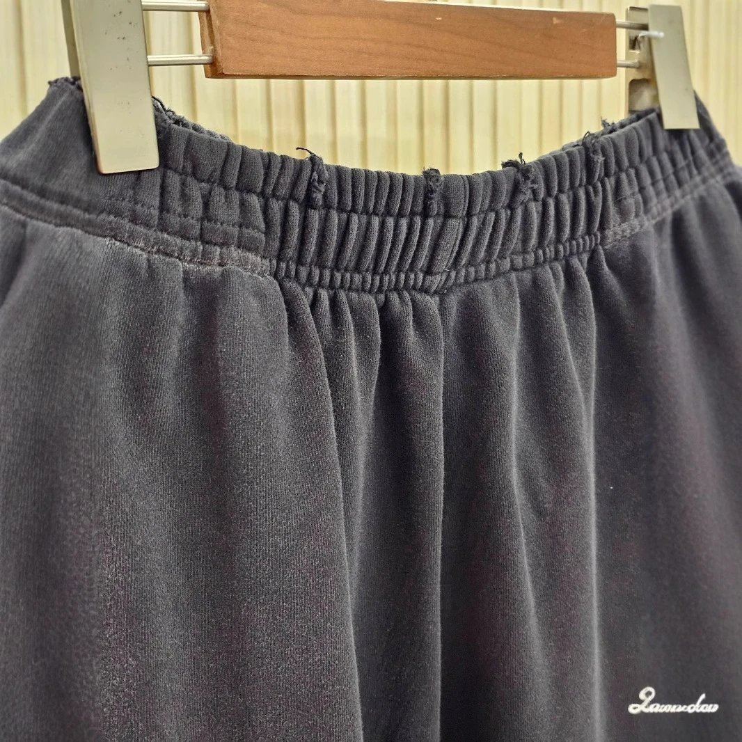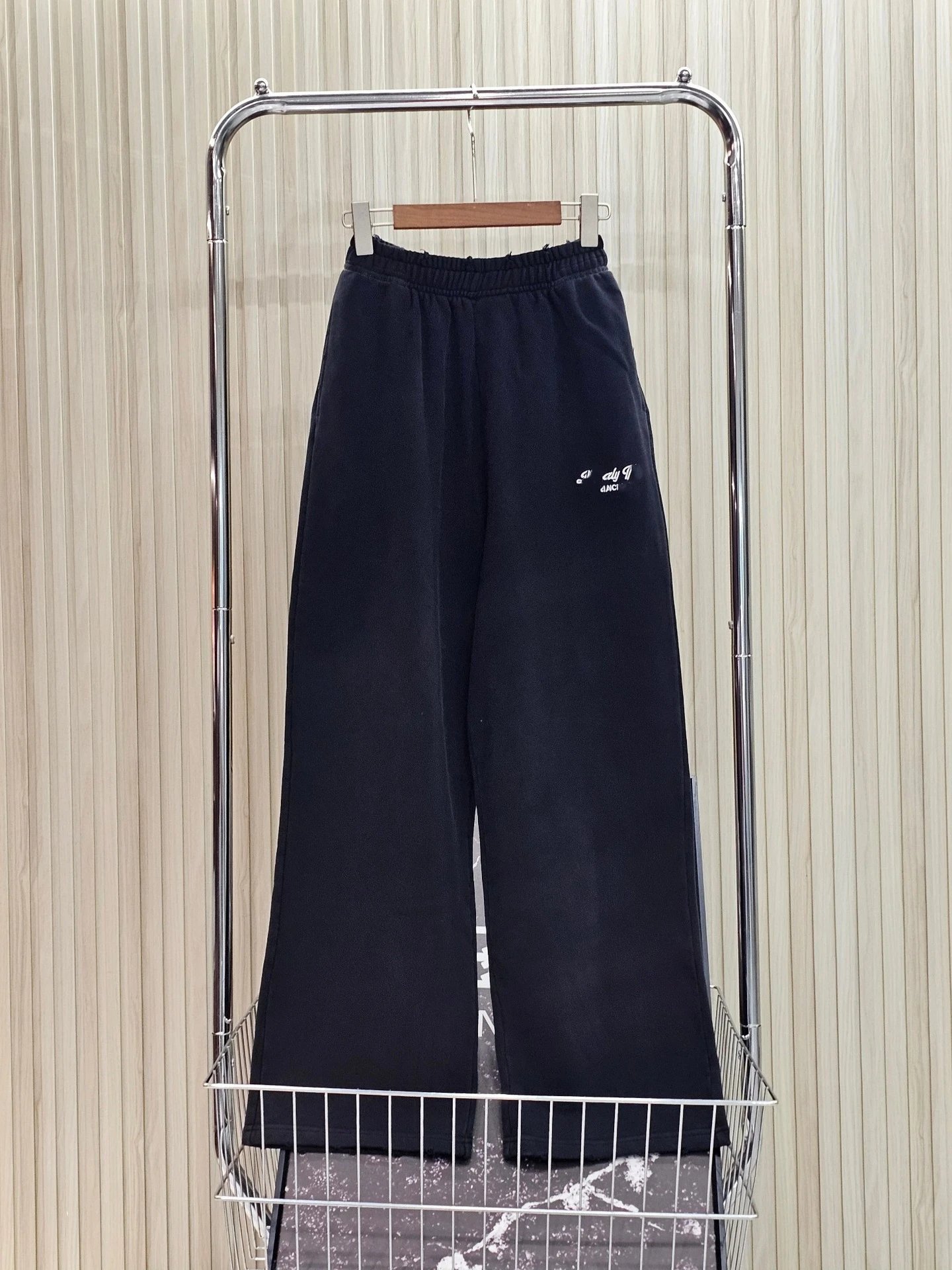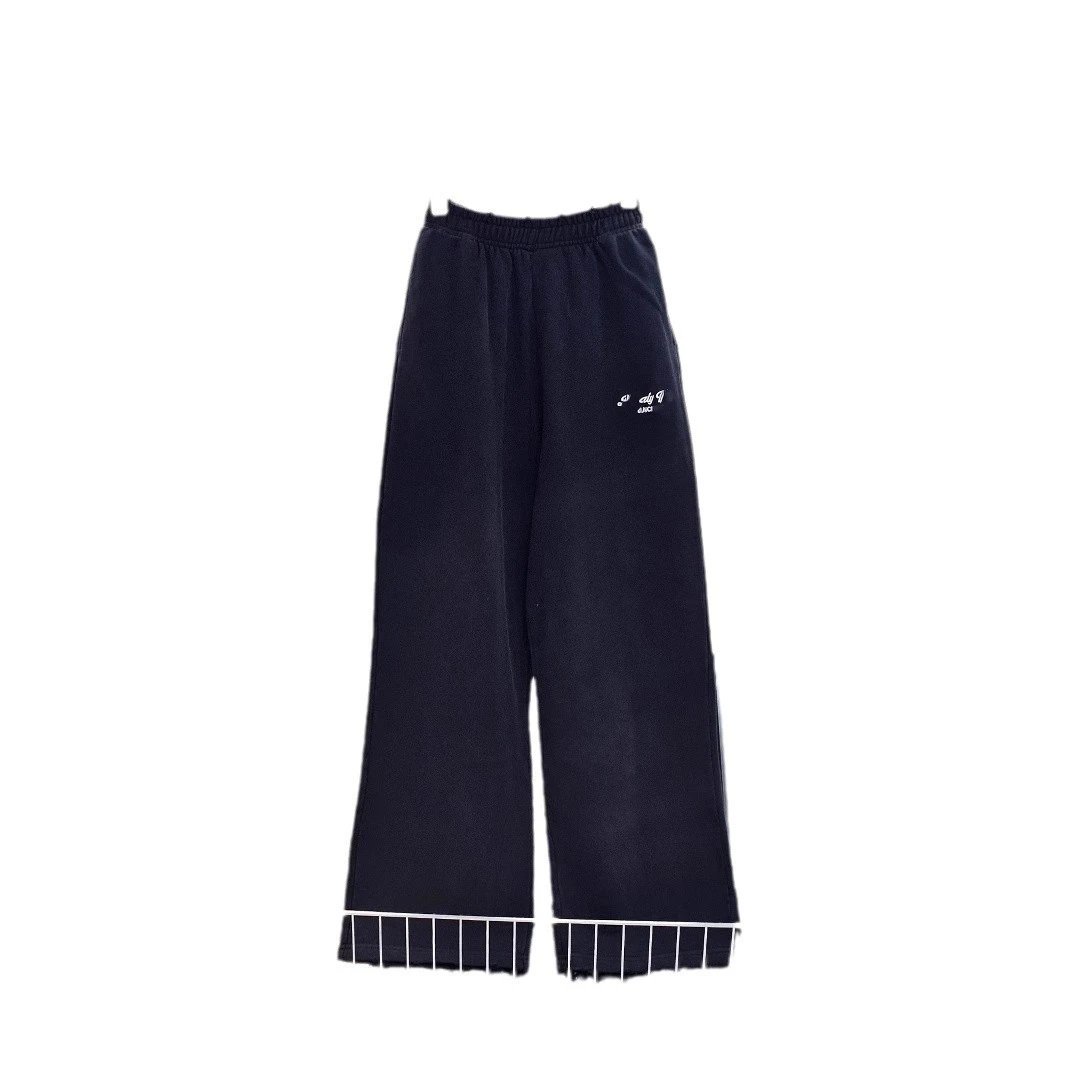巴黎B家签名刺绣字母洗水做旧磨破直筒宽松长裤休闲裤