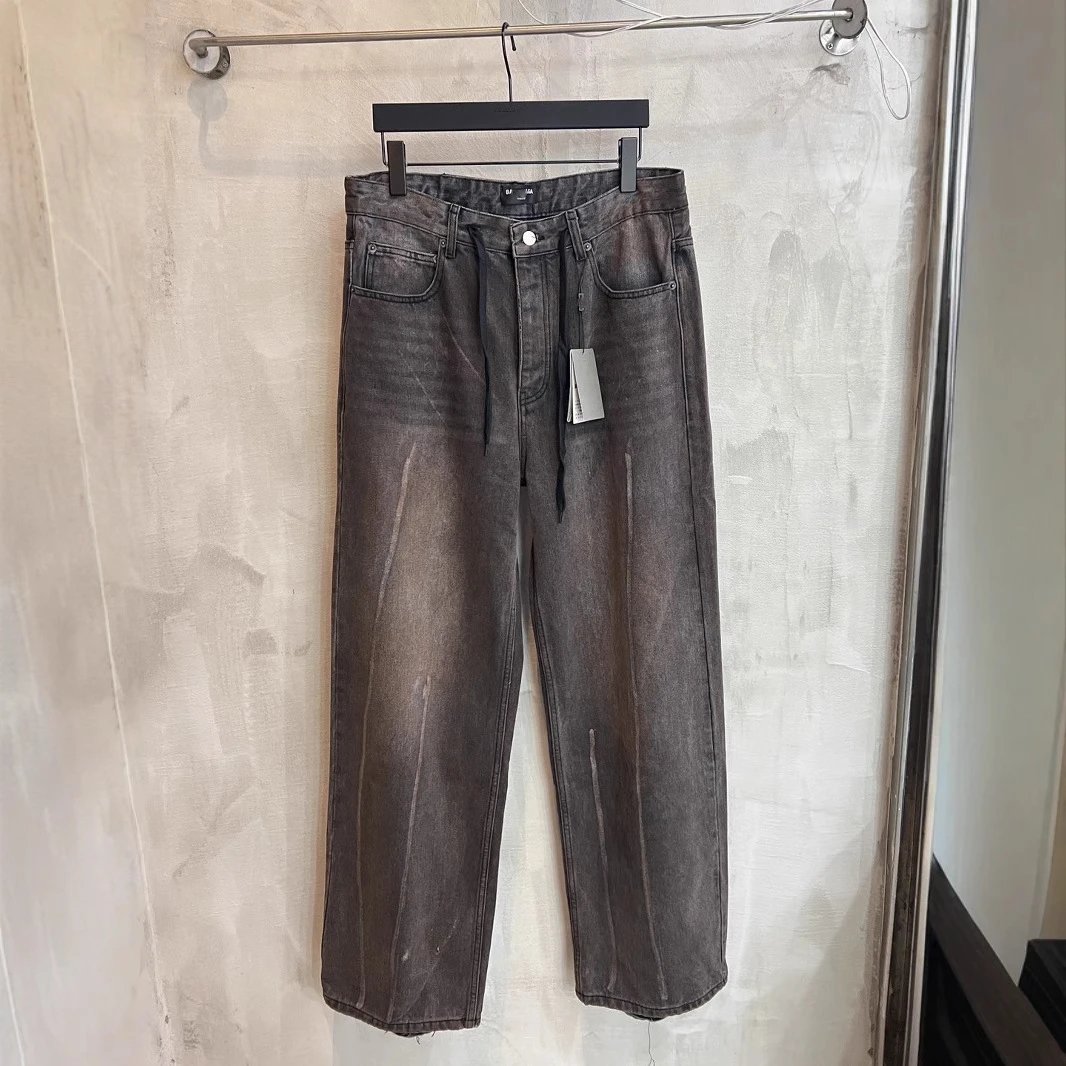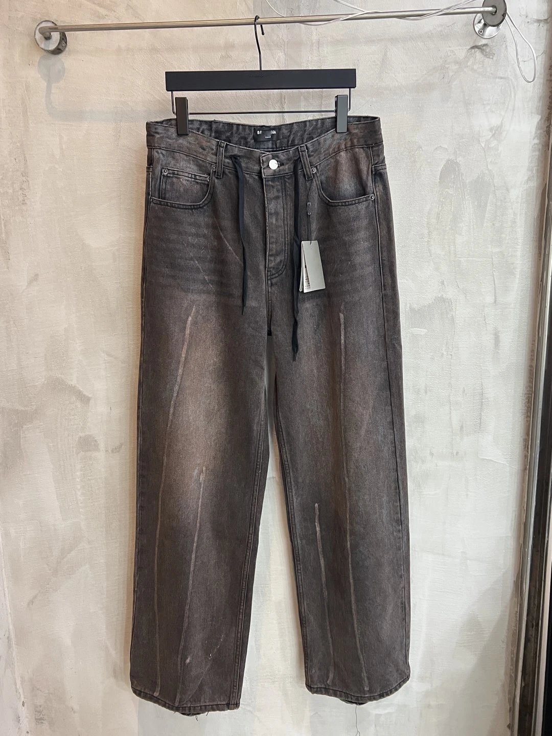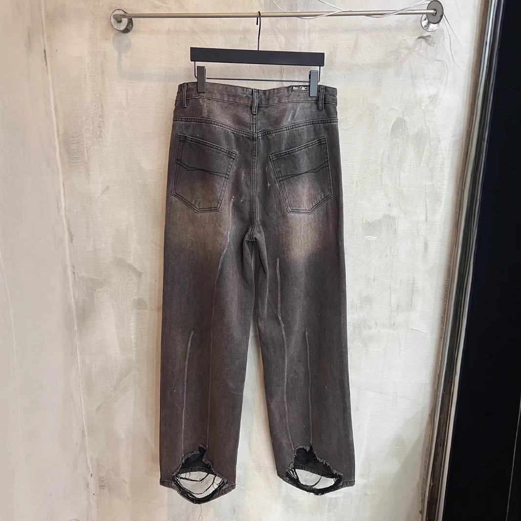 巴黎B家水洗做旧重工泥染铁锈色割破工艺宽松版型牛仔裤长裤